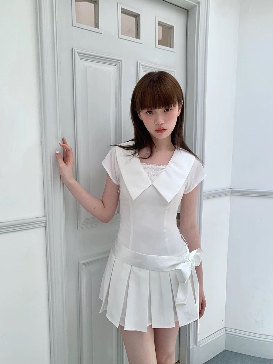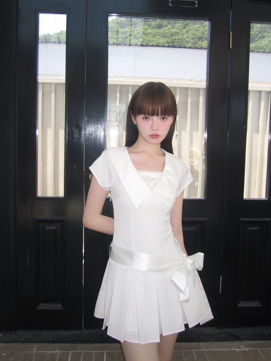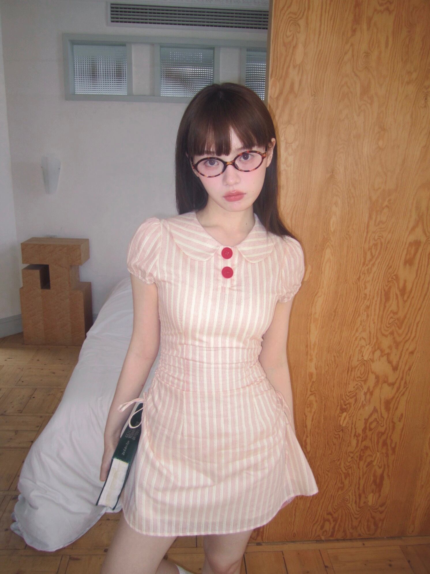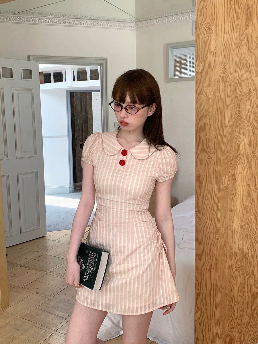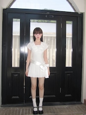白 ガーリー 赤 チェック リボン 丸襟 ガーリー ベージュ ワンピース ブラウス