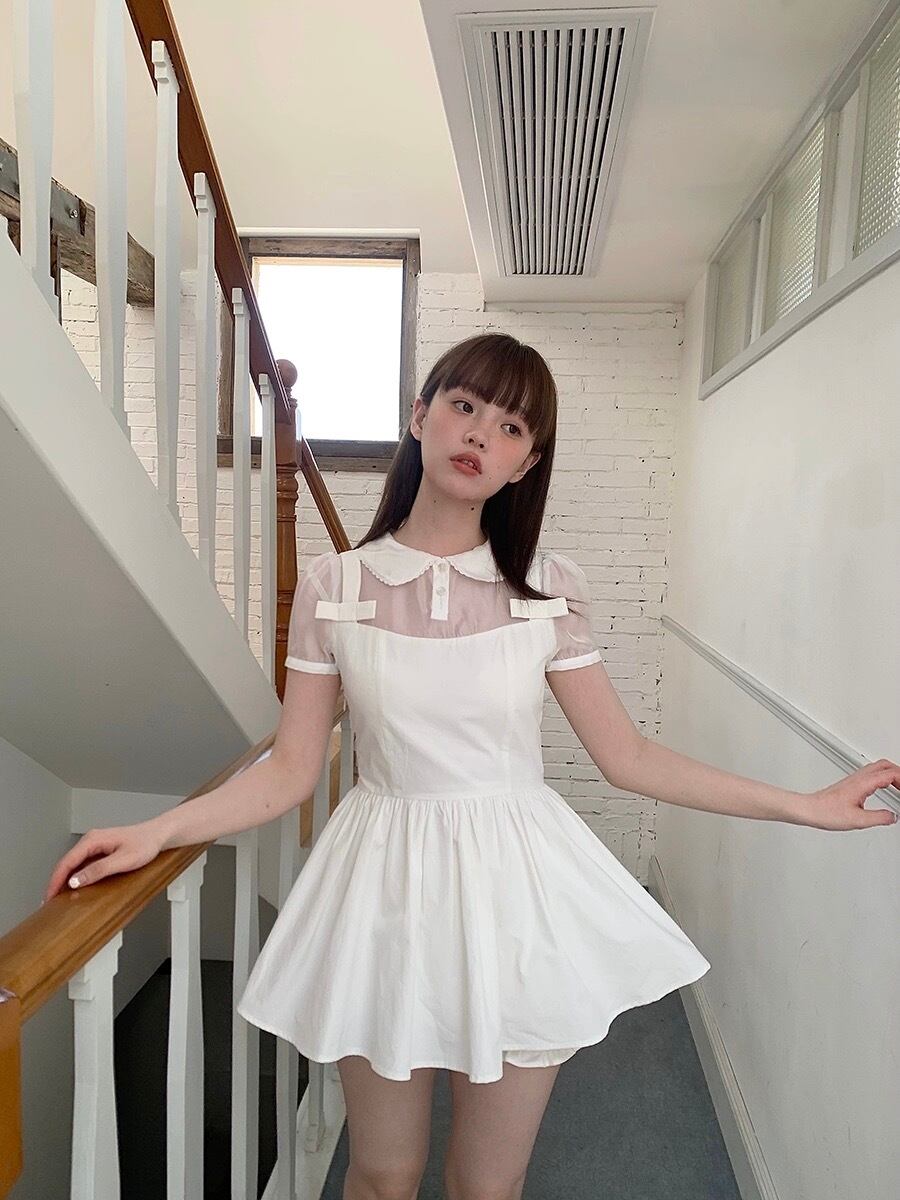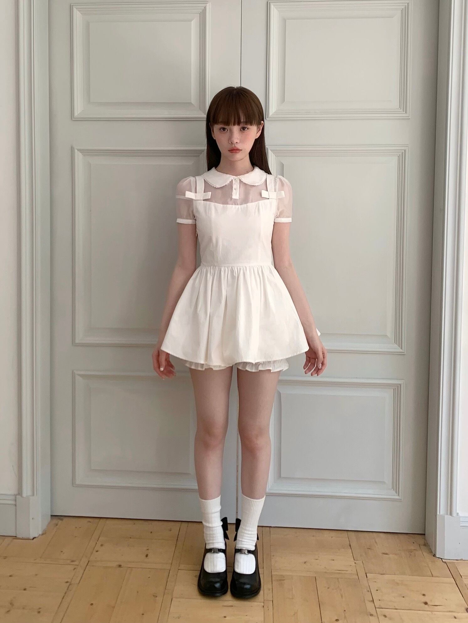 白 ガーリー ブラウス チュニック ワンピース カーリー 可愛い