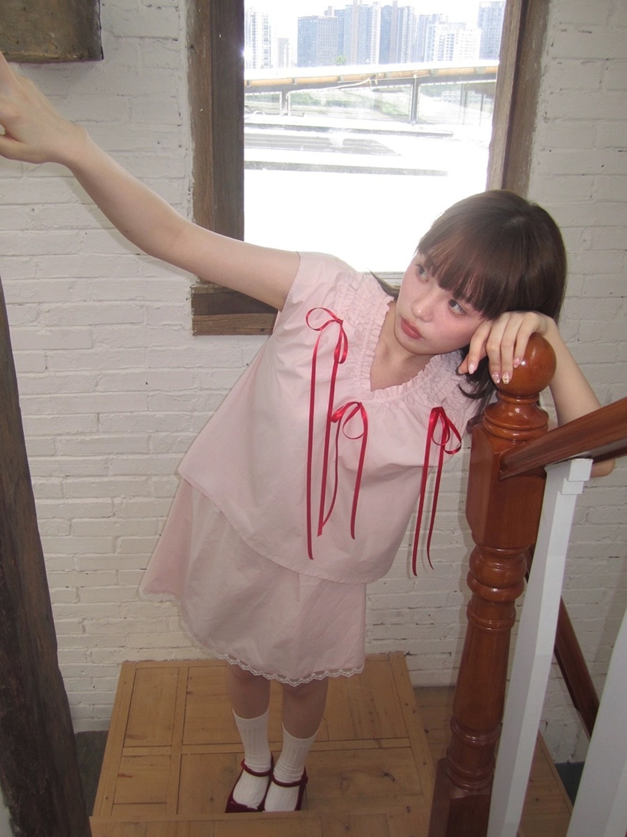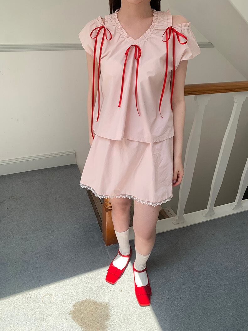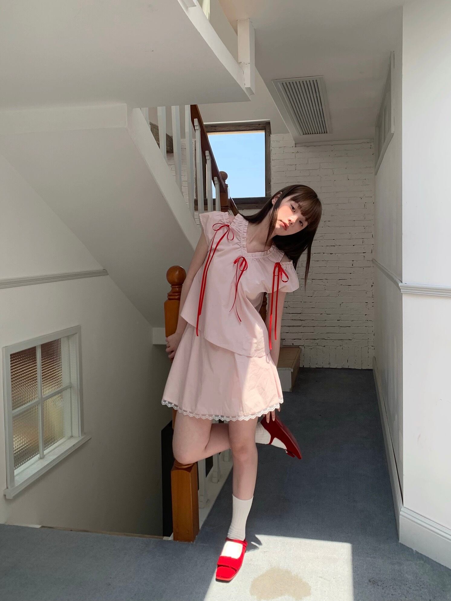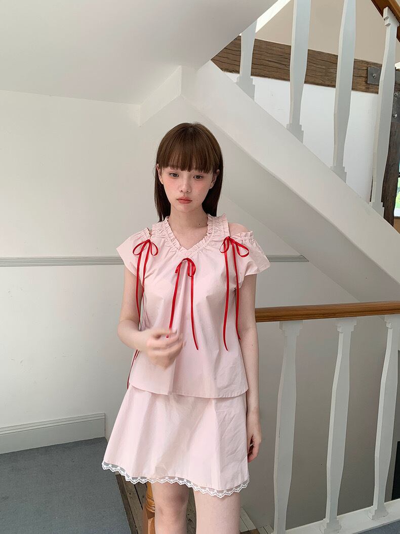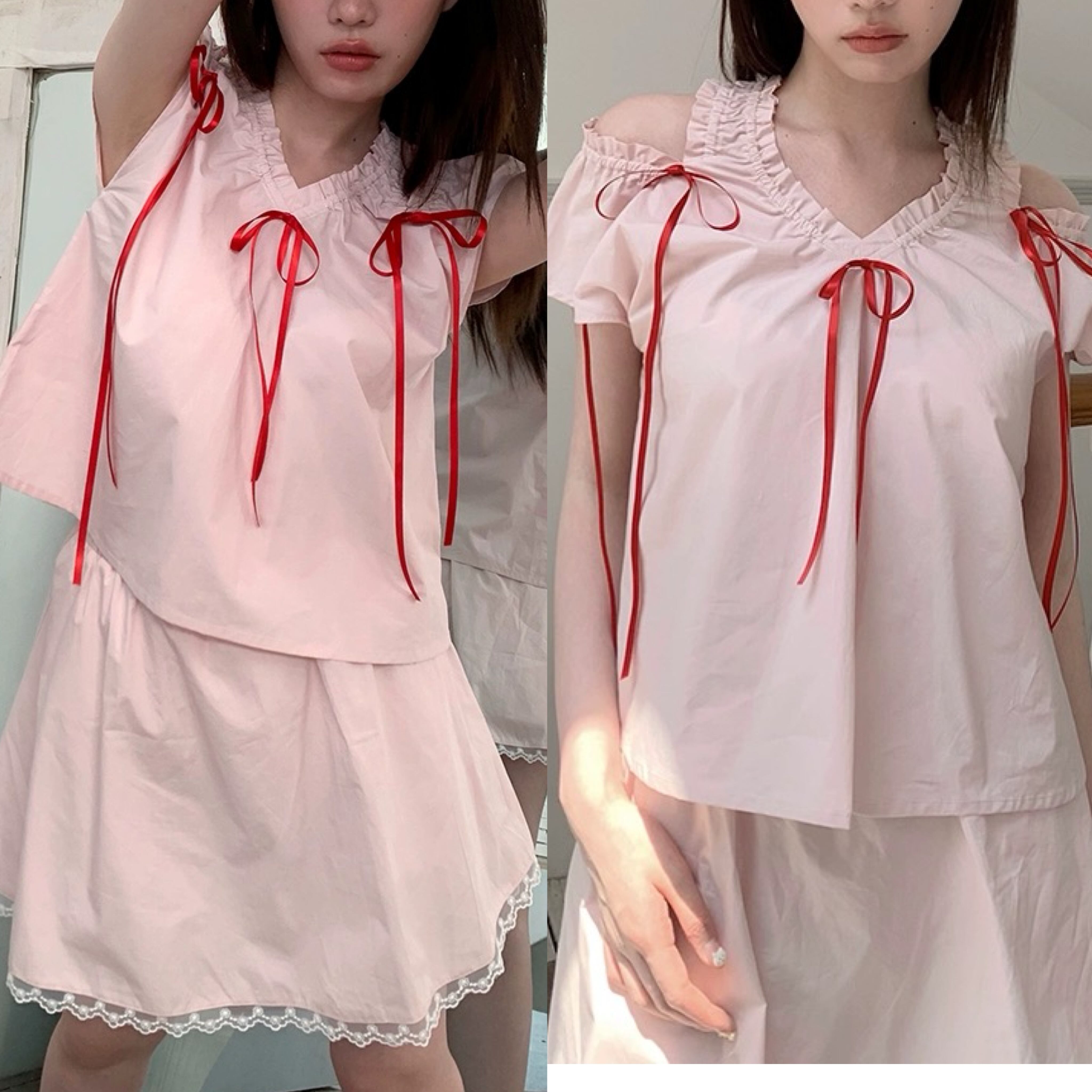ブラウス ピンク リボン 赤 可愛い シャツ トップス ガーリー