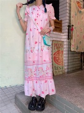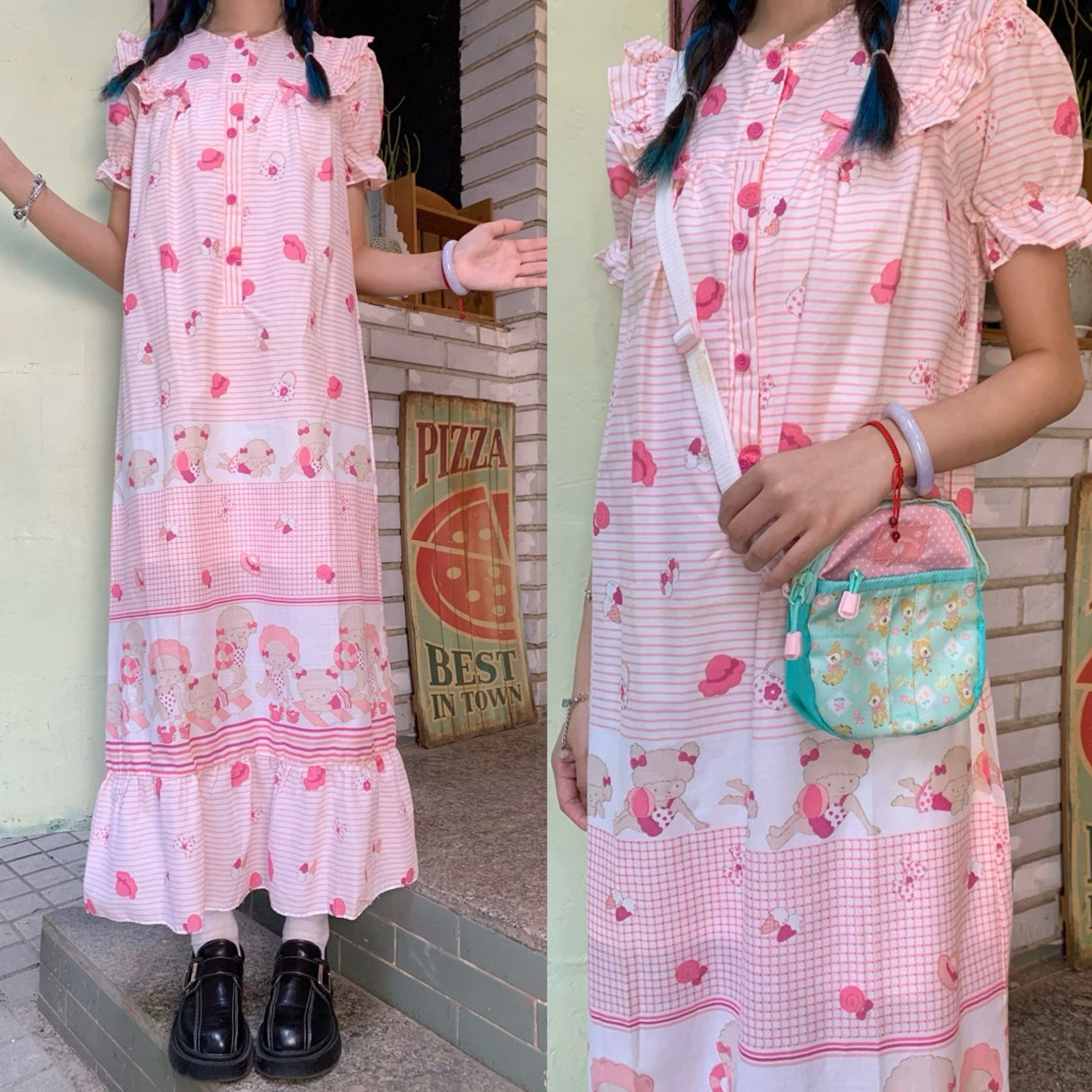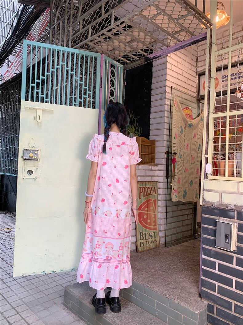 ピンク チェック ワンピース 丸襟 ガーリー ブラウス 可愛い
