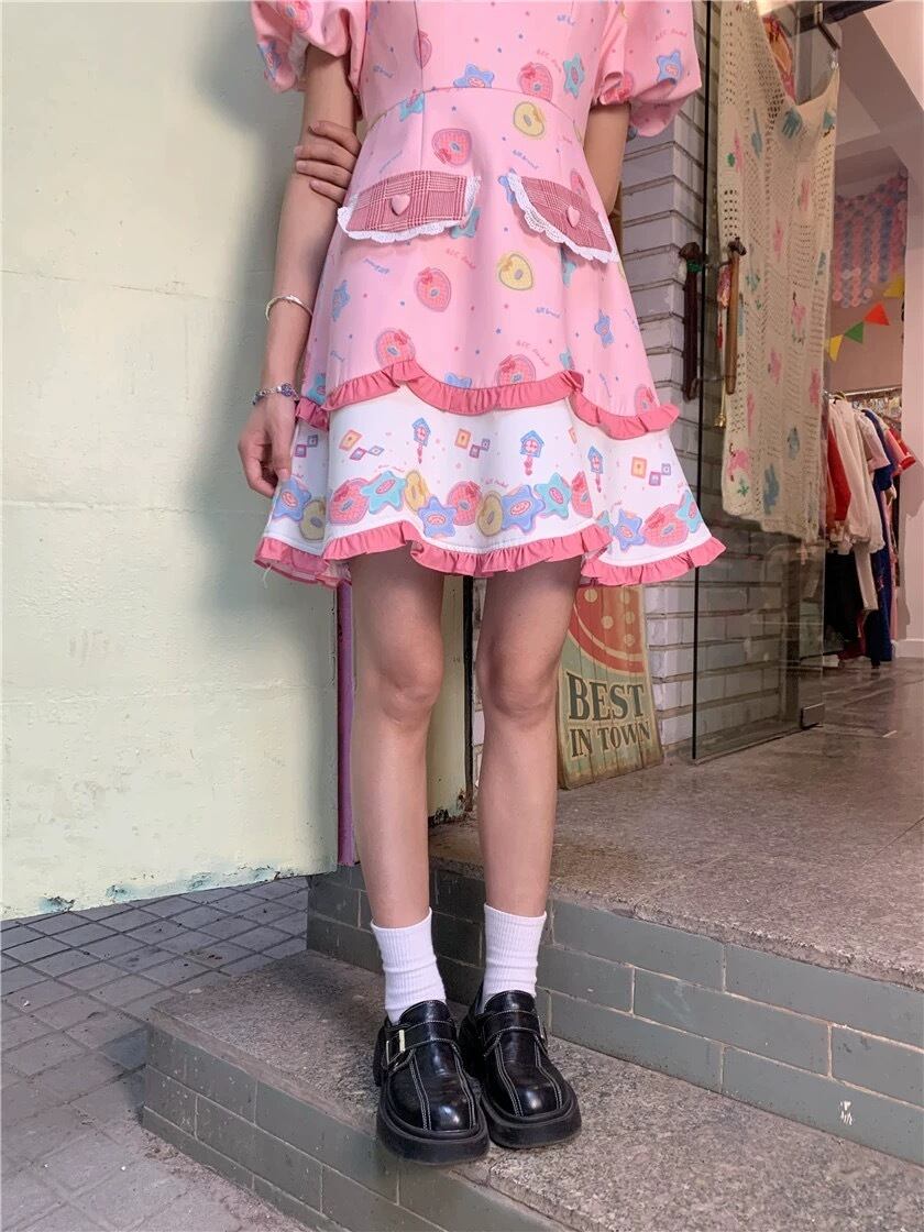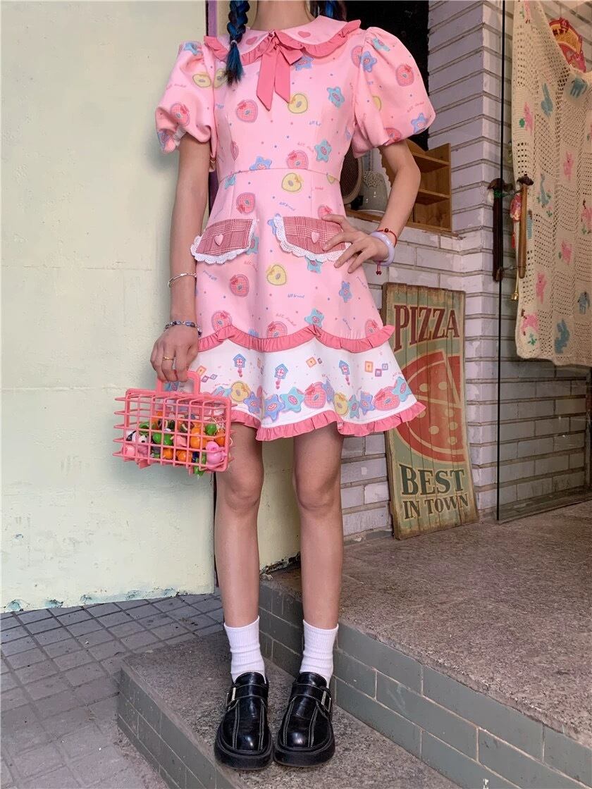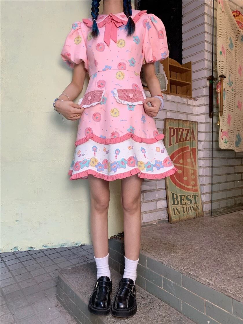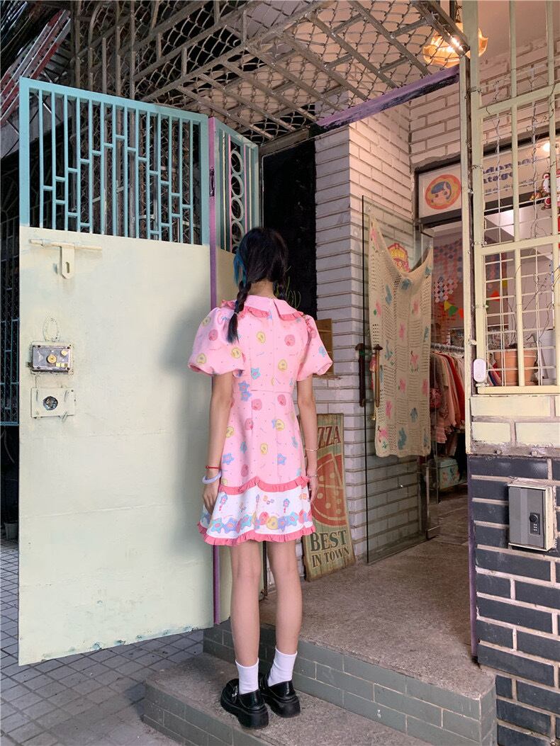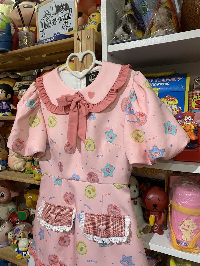 ピンク 丸襟 ワンピース ガーリー ブラウス カラフル レア 原宿 姫