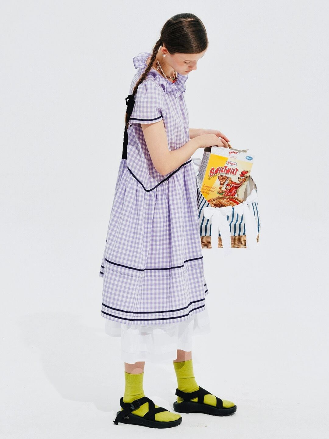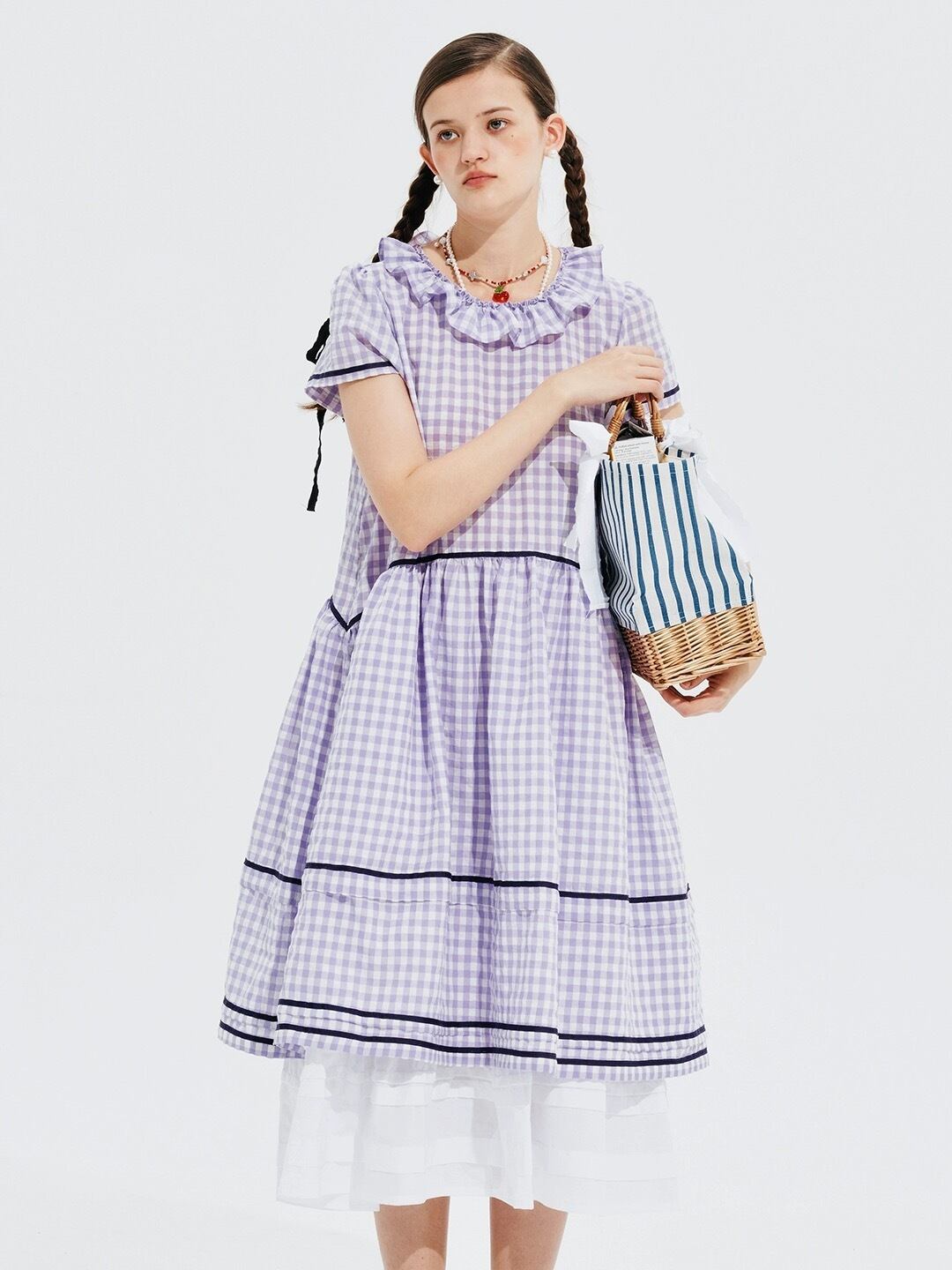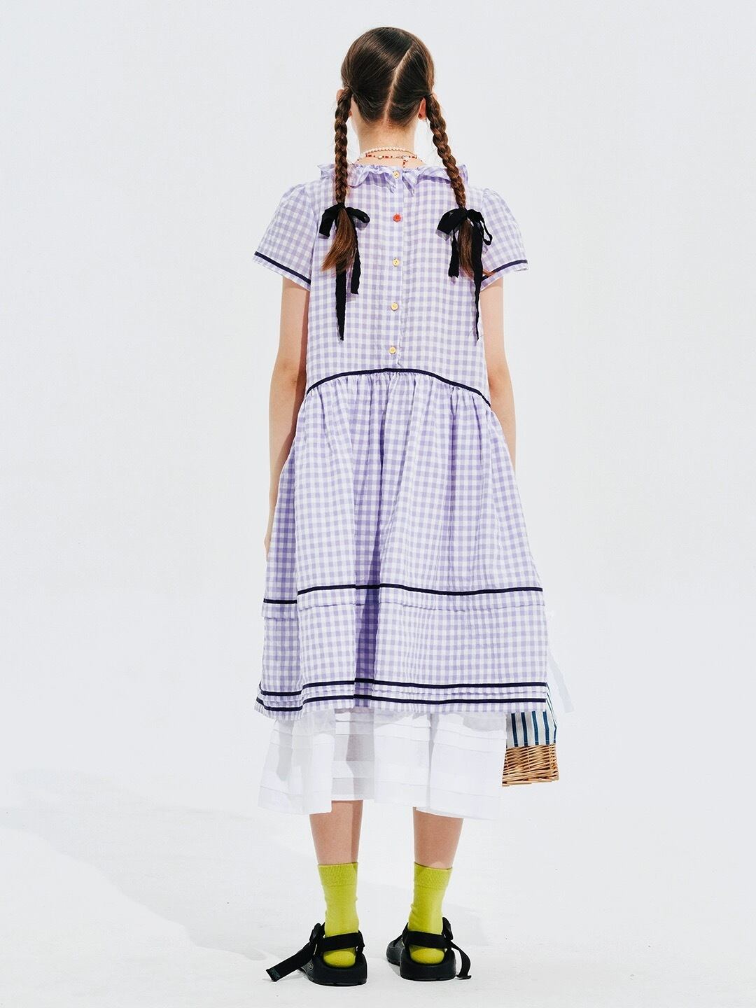 ブラウス 紫 チェック ガーリー ワンピース ゆったり