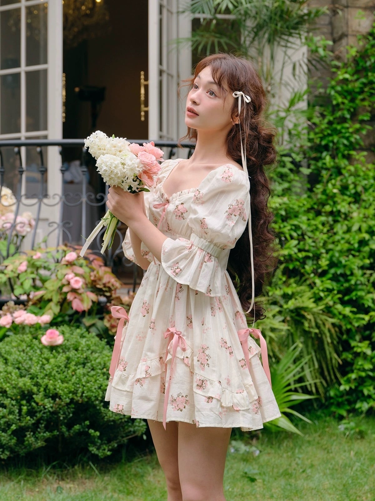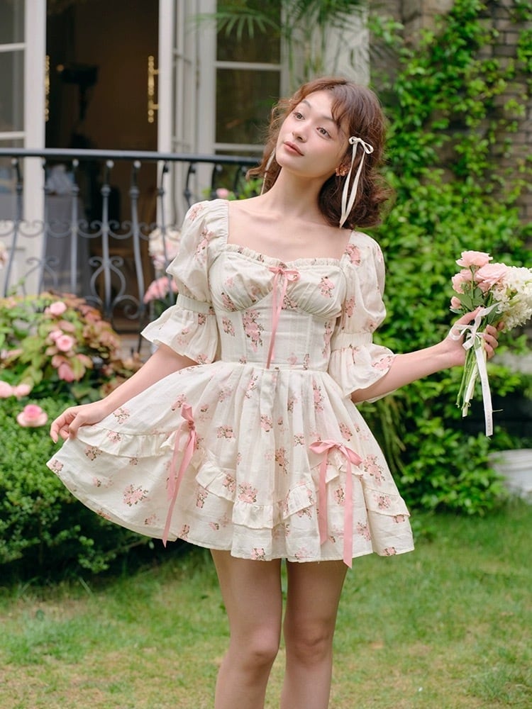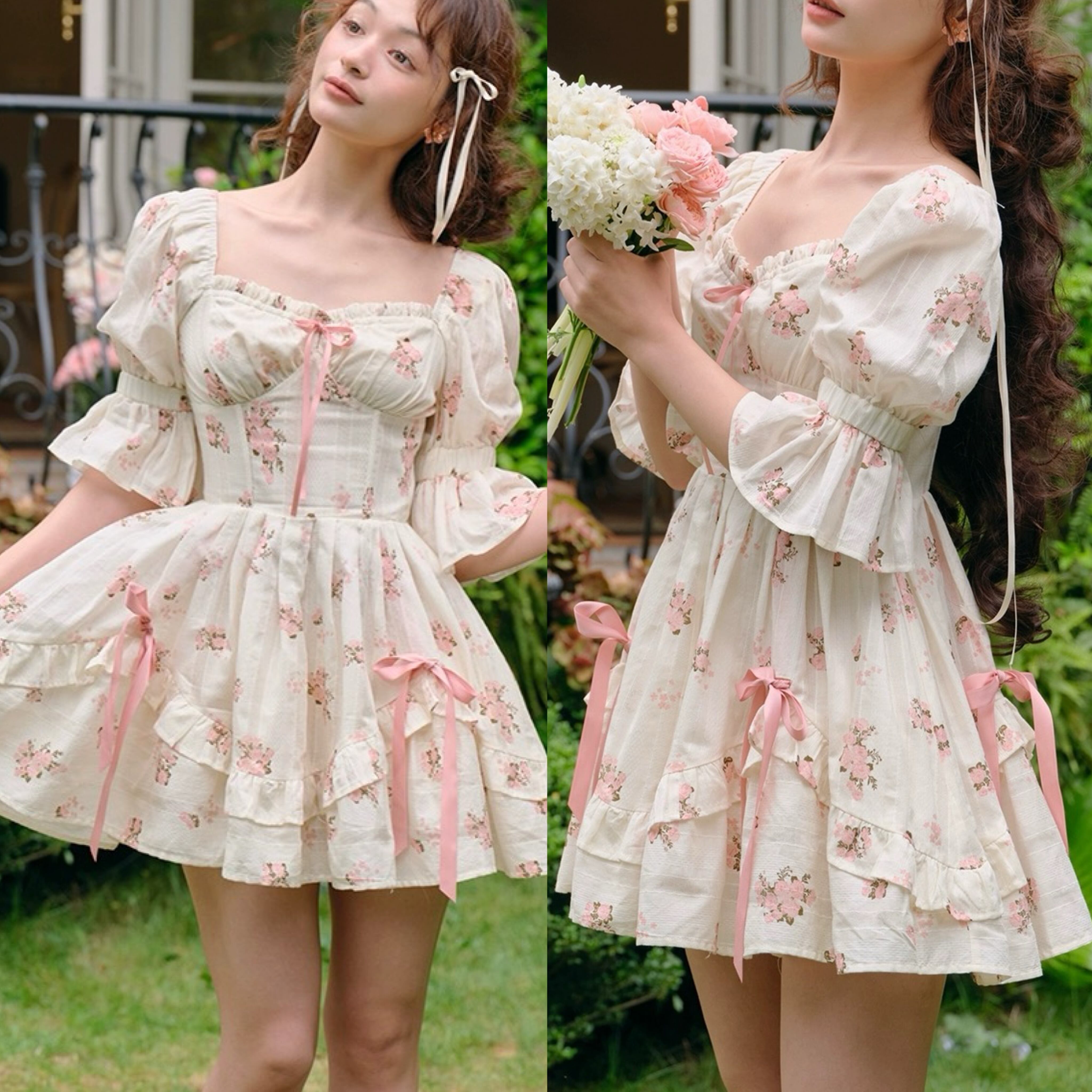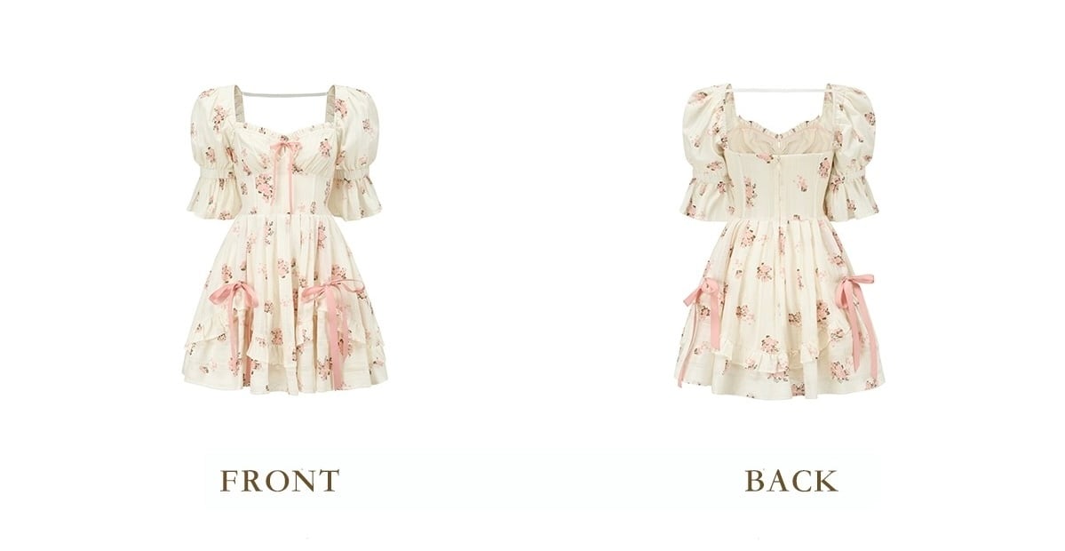 リボン 花柄 フラワー ワンピース ガーリー ピンク