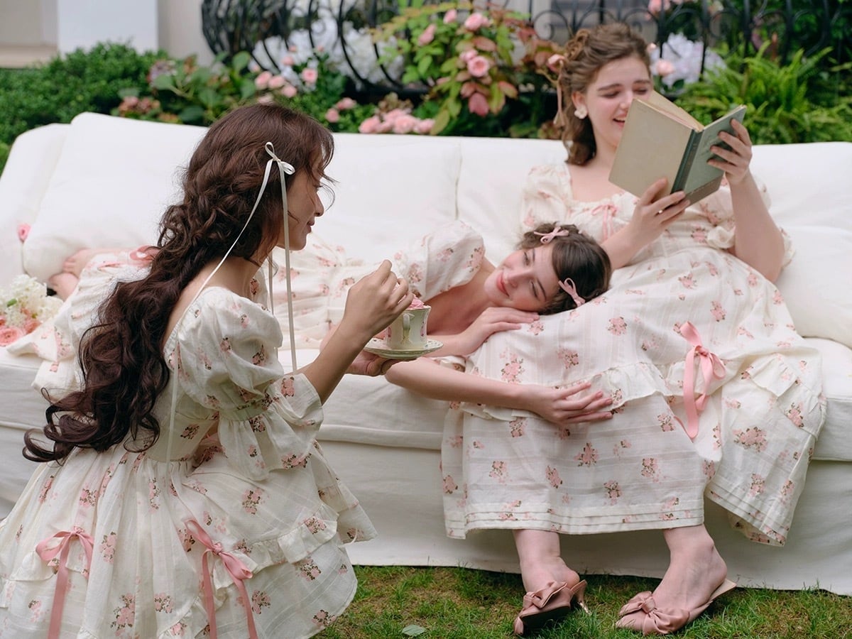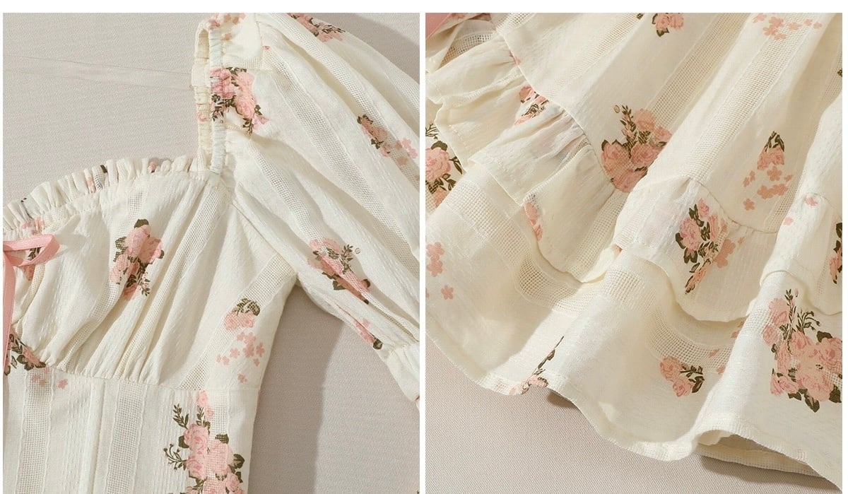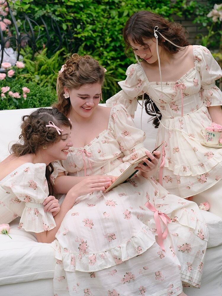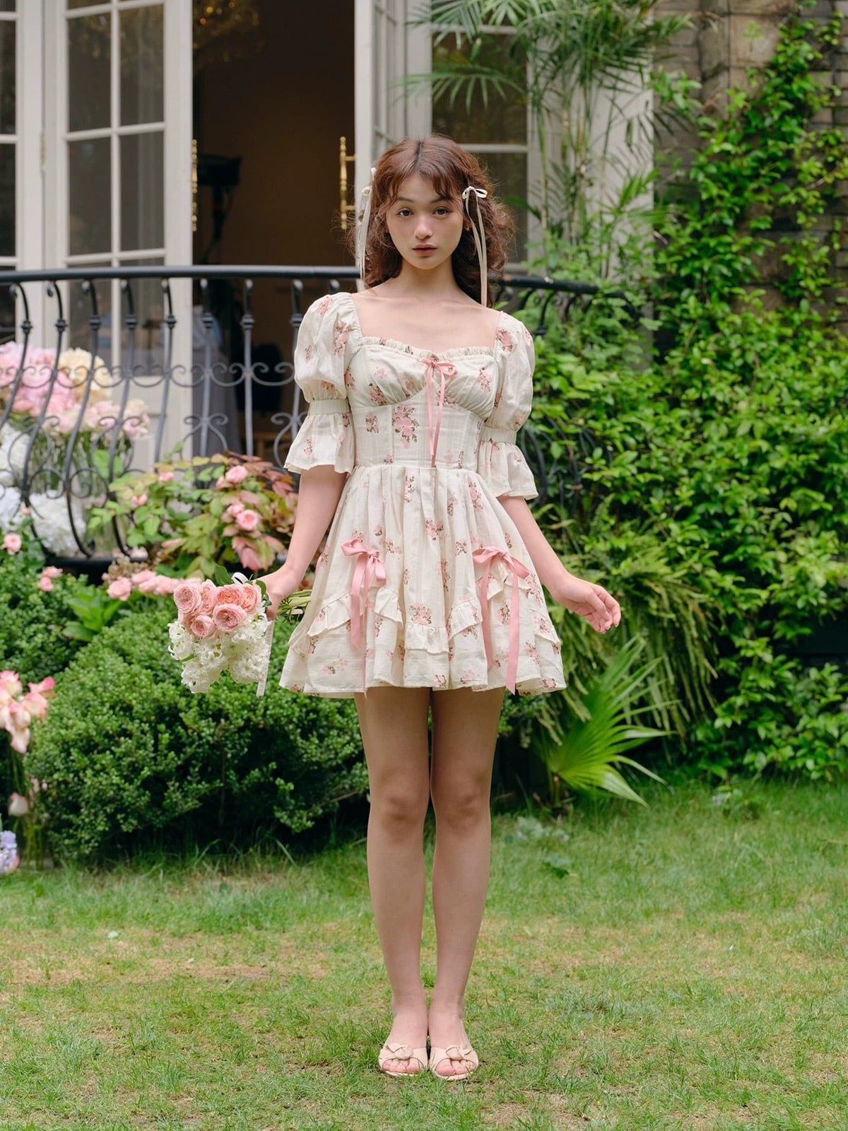 リボン 花柄 フラワー ワンピース ガーリー ピンク