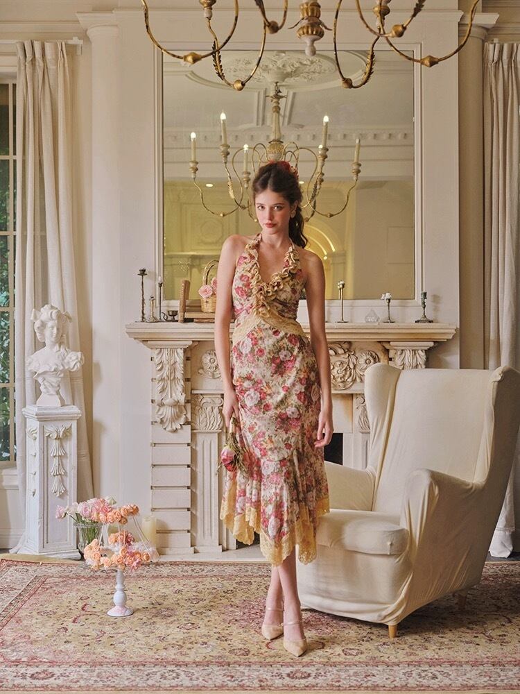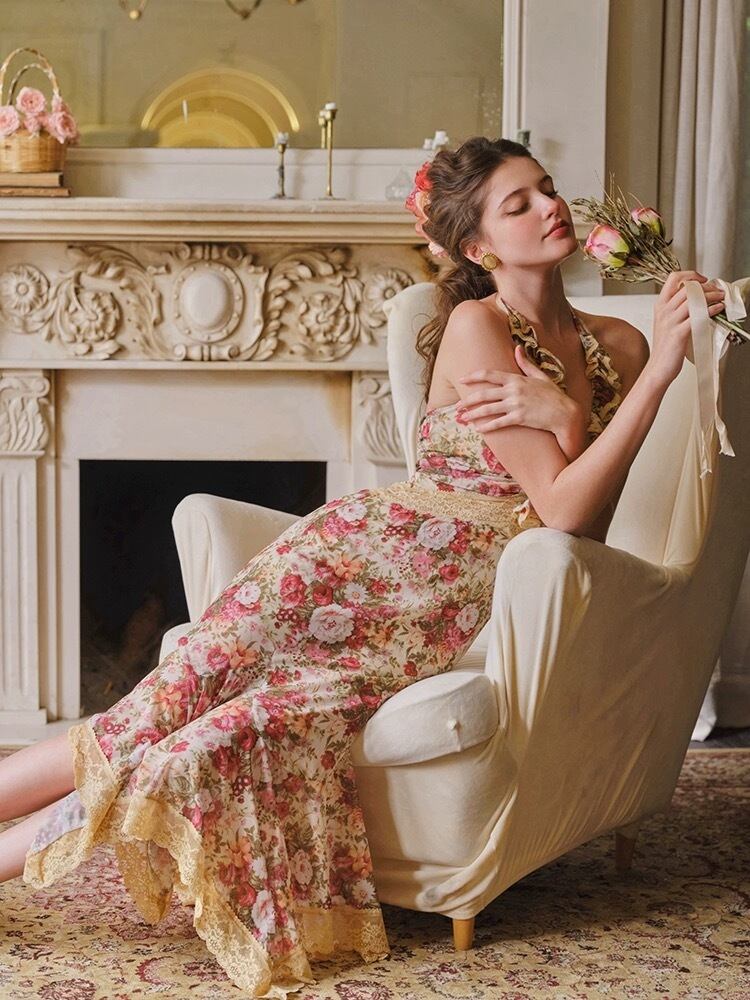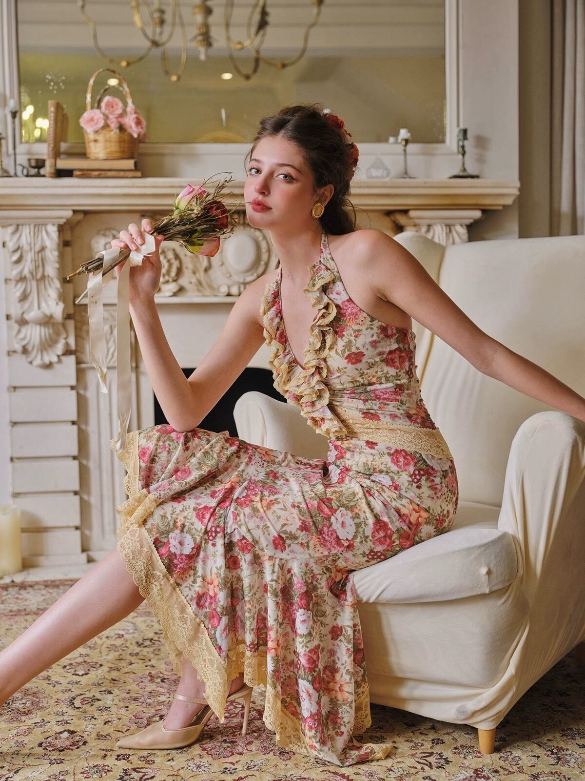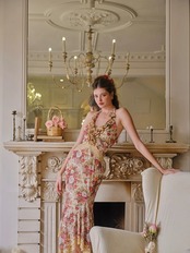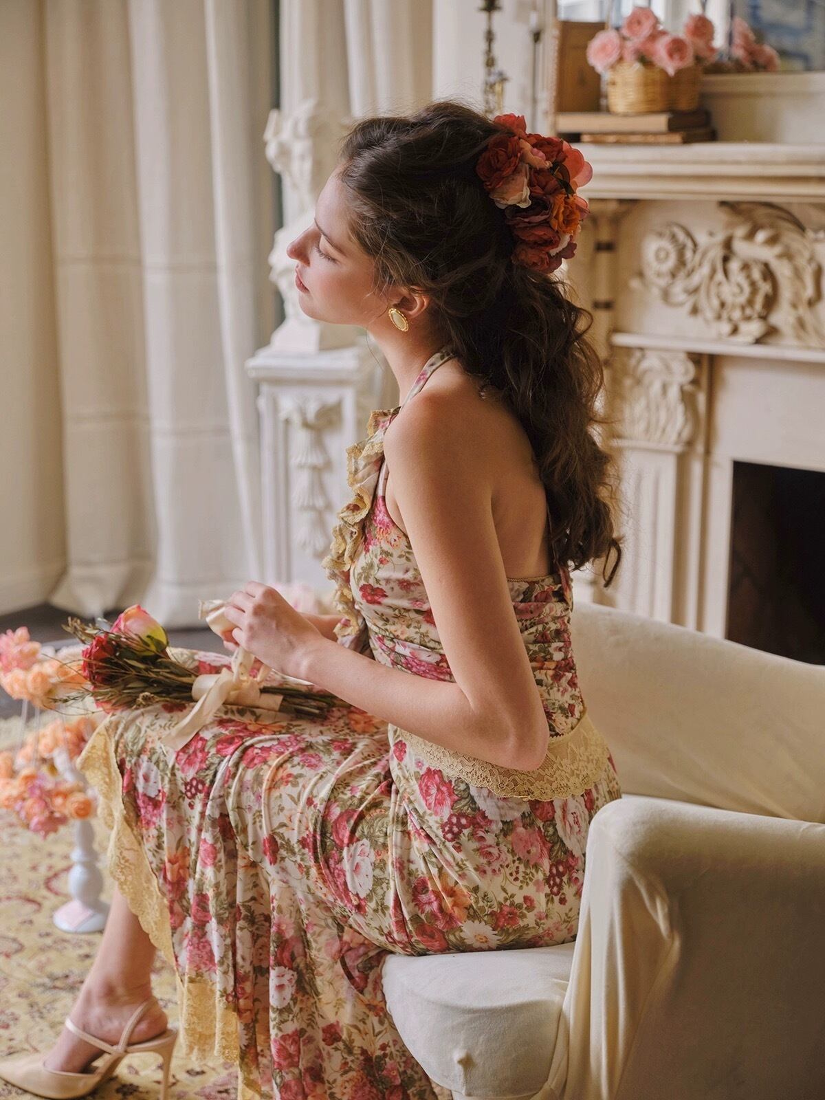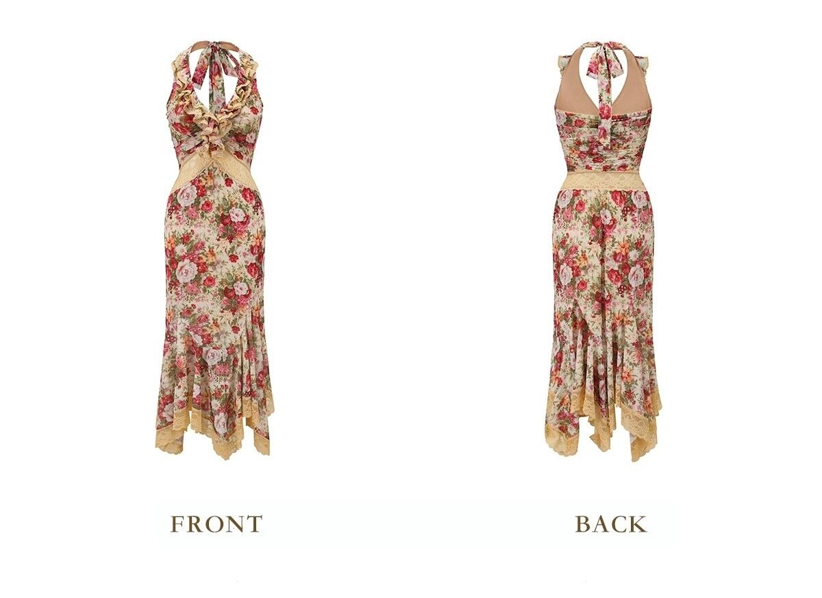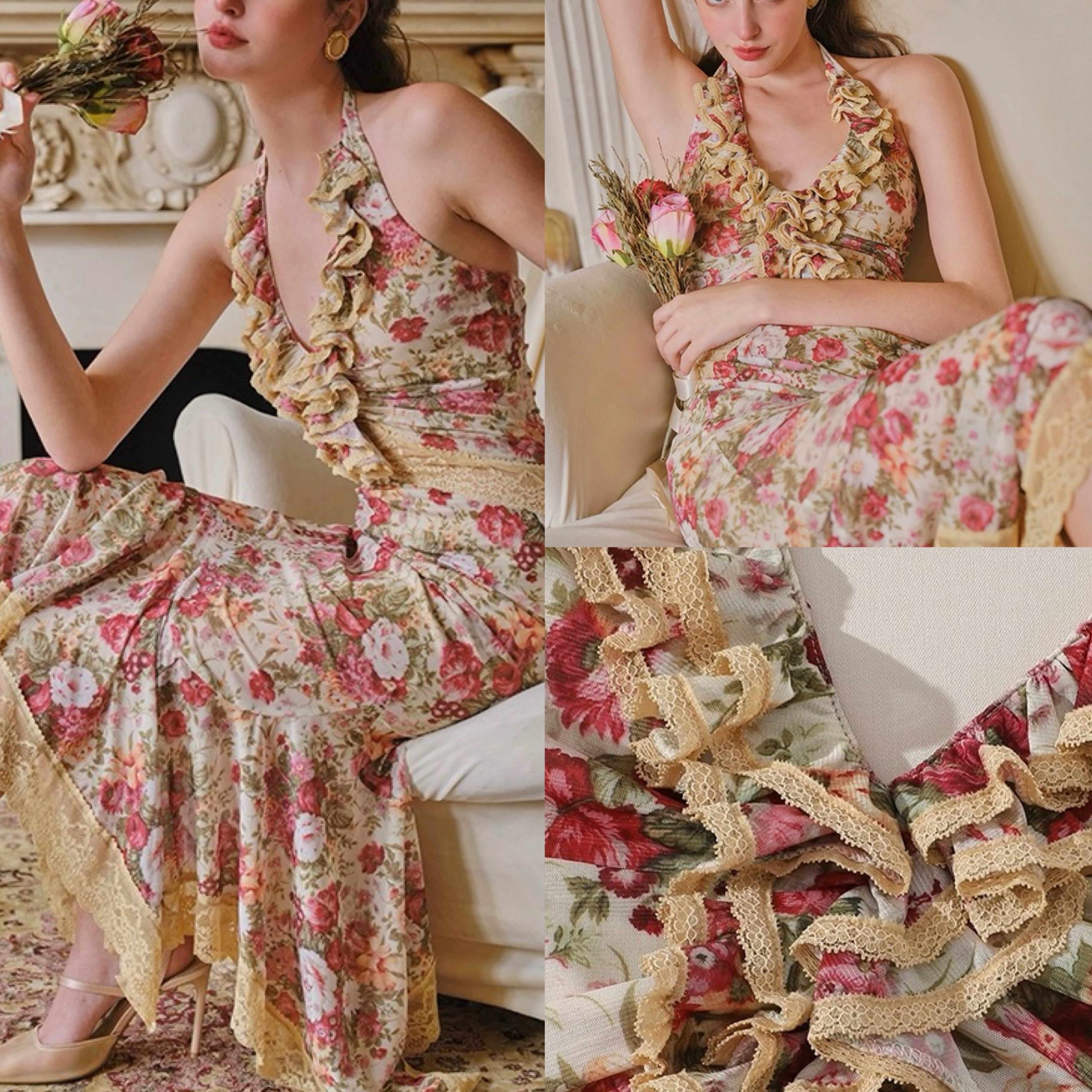 フラワー 花柄 ワンピース ドレス エレガント 赤 ベージュ XL