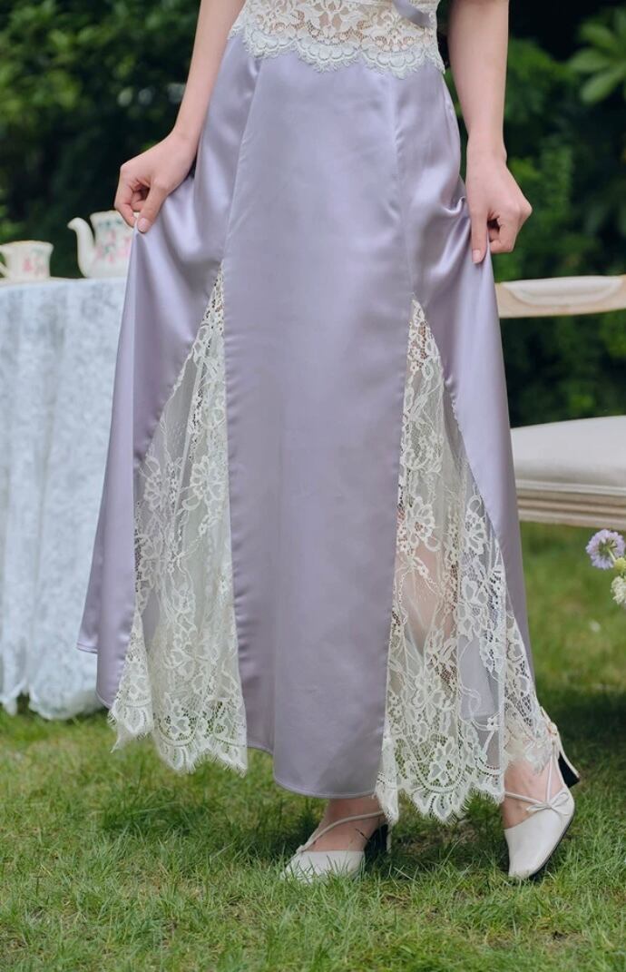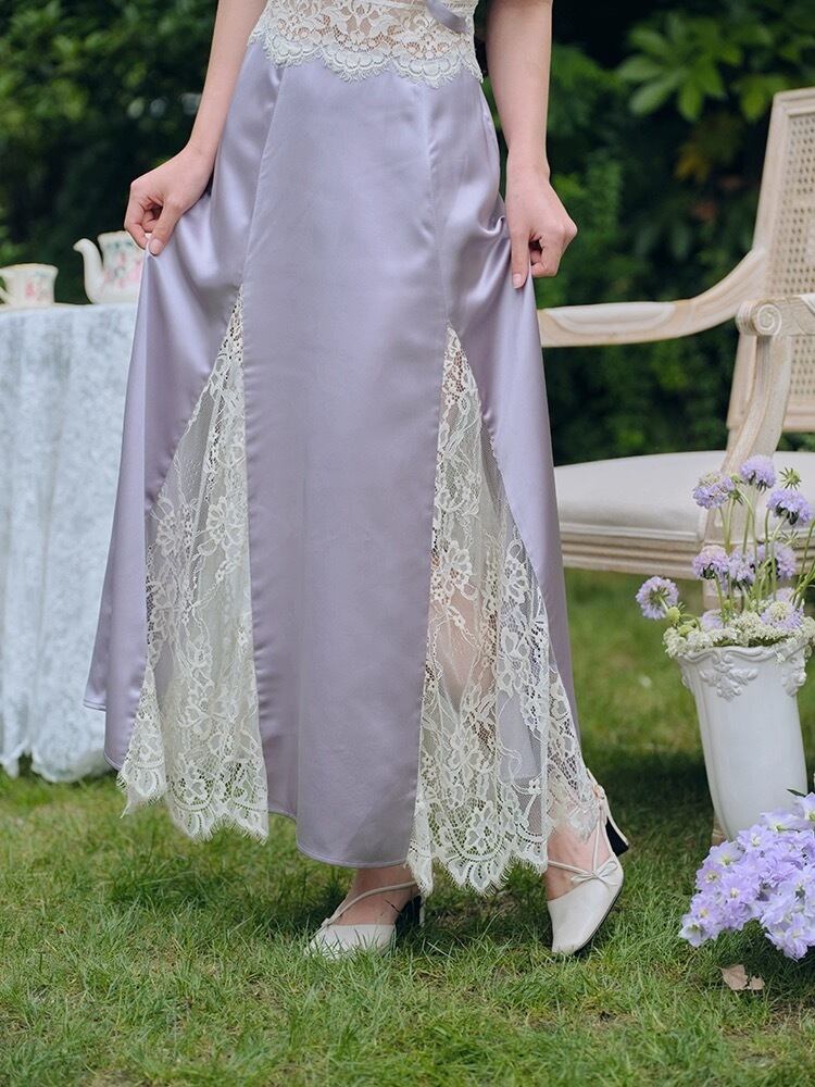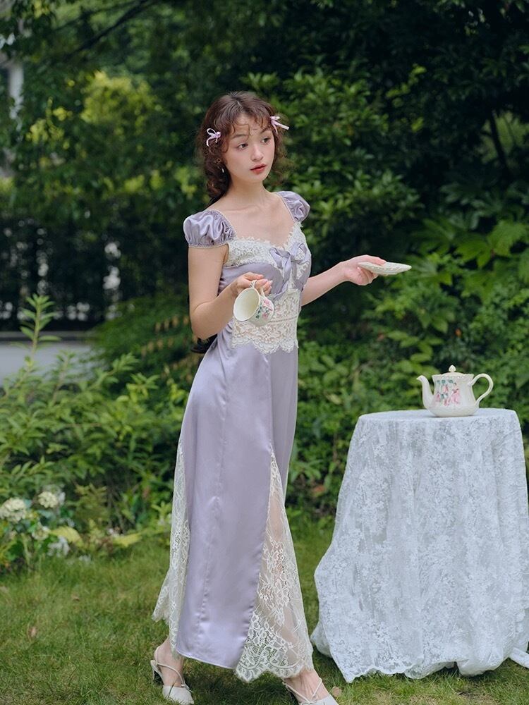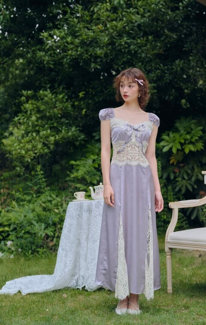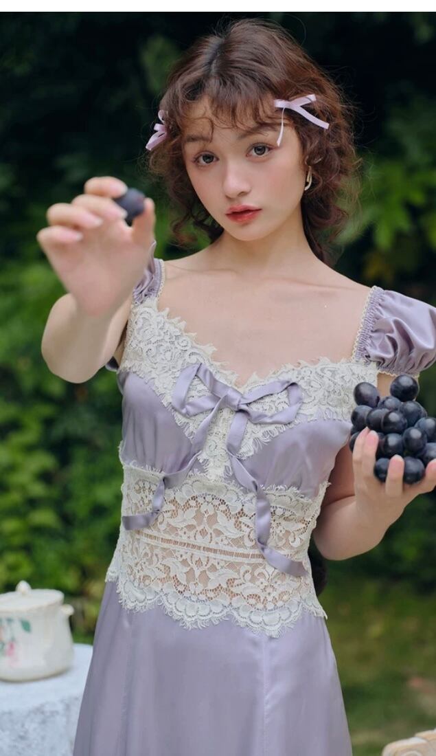 紫 パープル キャミソール ワンピース XL レース ドレス ガーリー