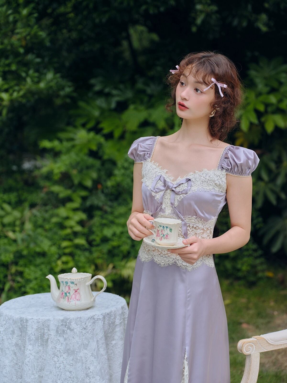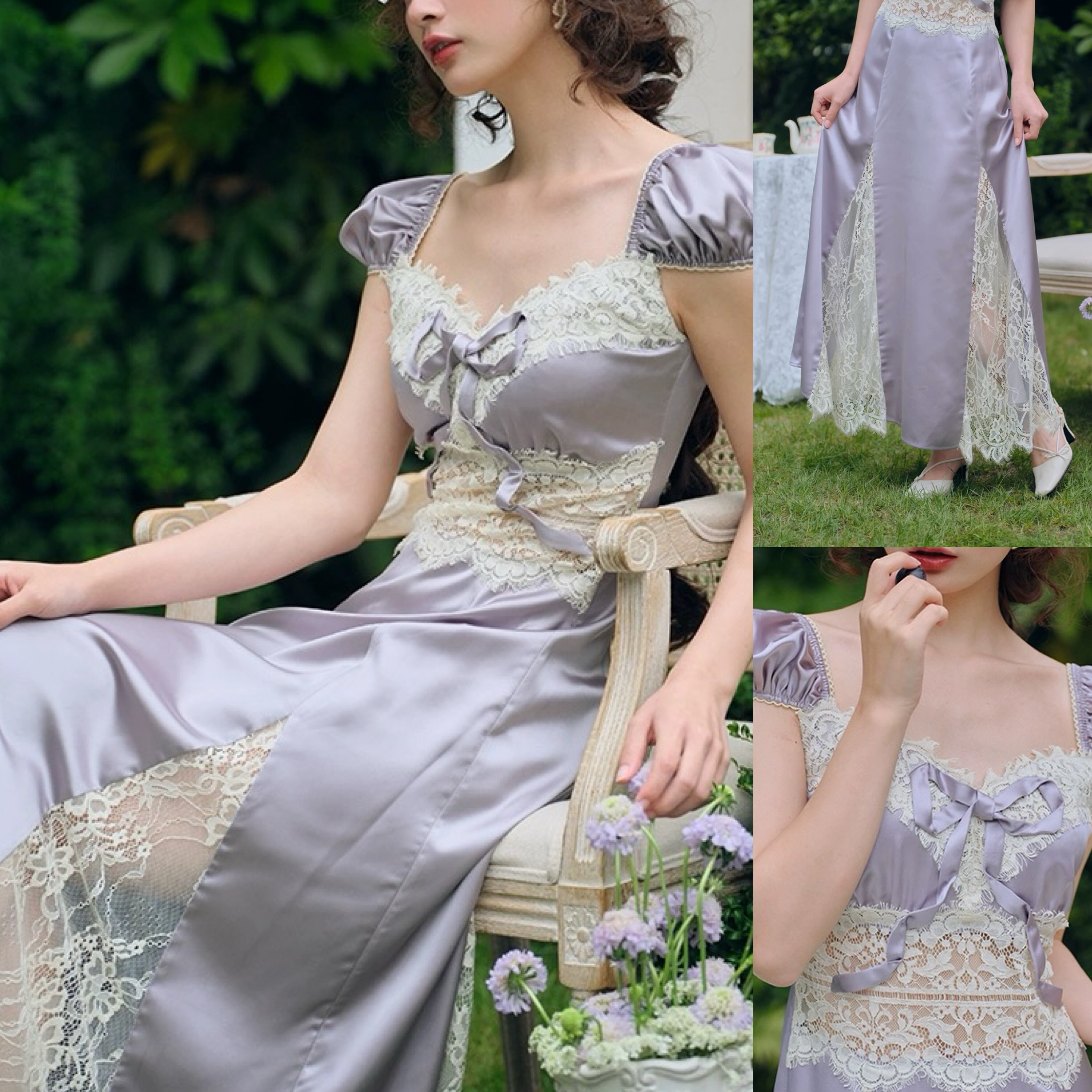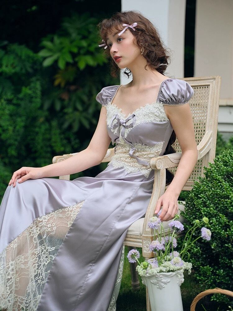紫 パープル キャミソール ワンピース XL レース ドレス ガーリー