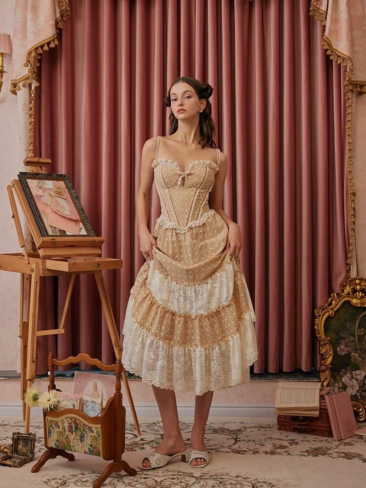ベージュ キャミソール ワンピース ガーリー カジュアル