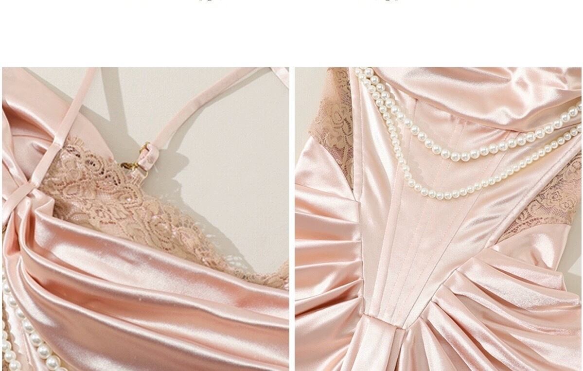 エレガント パール ピンク ワンピース ドレス XL サテン ゴージャス