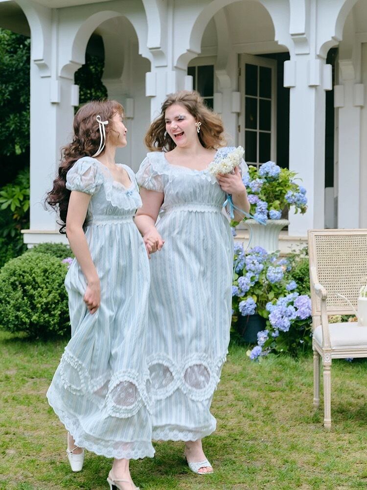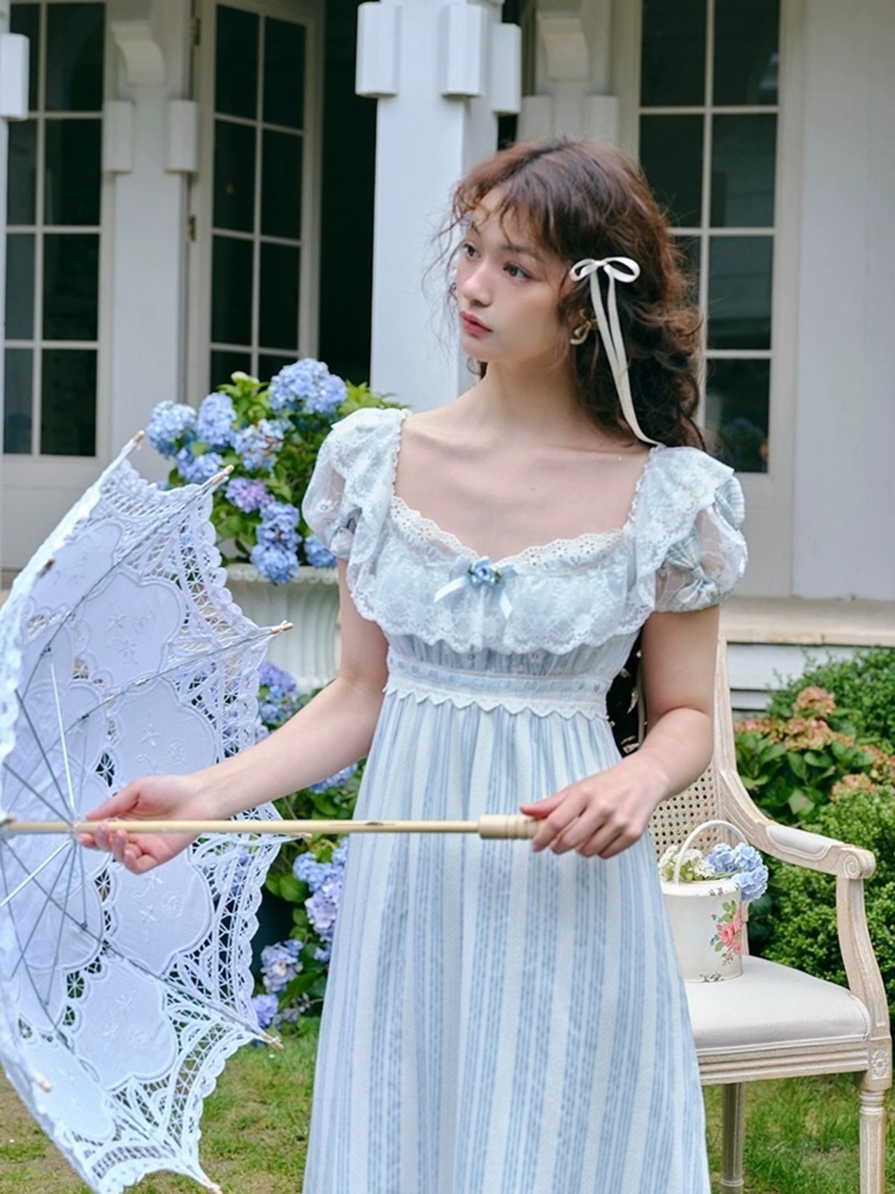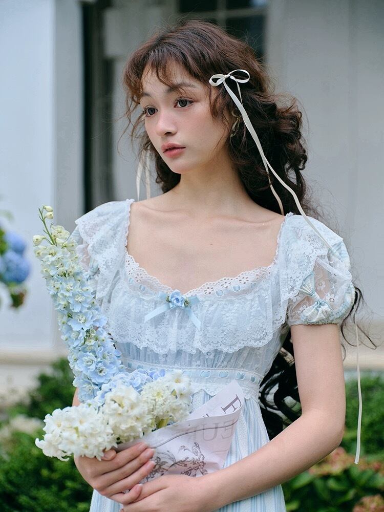 水色 ガーリー リボン XL ワンピース 可愛い レース