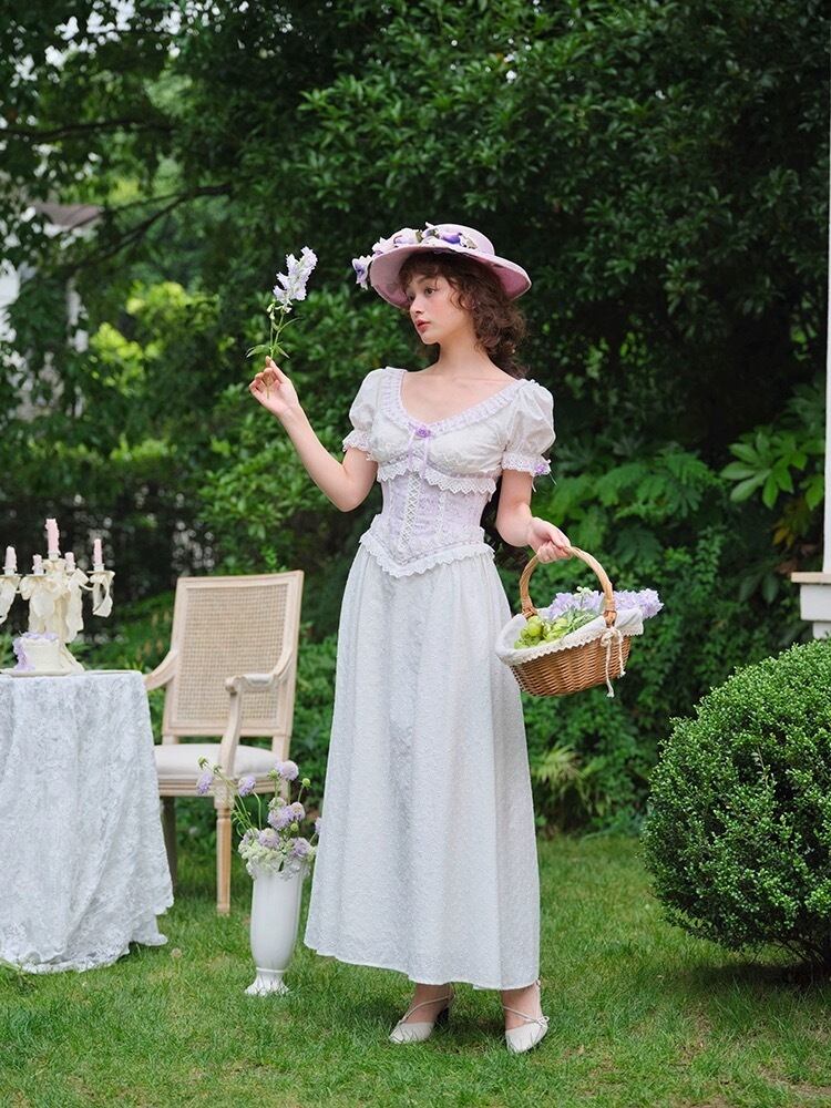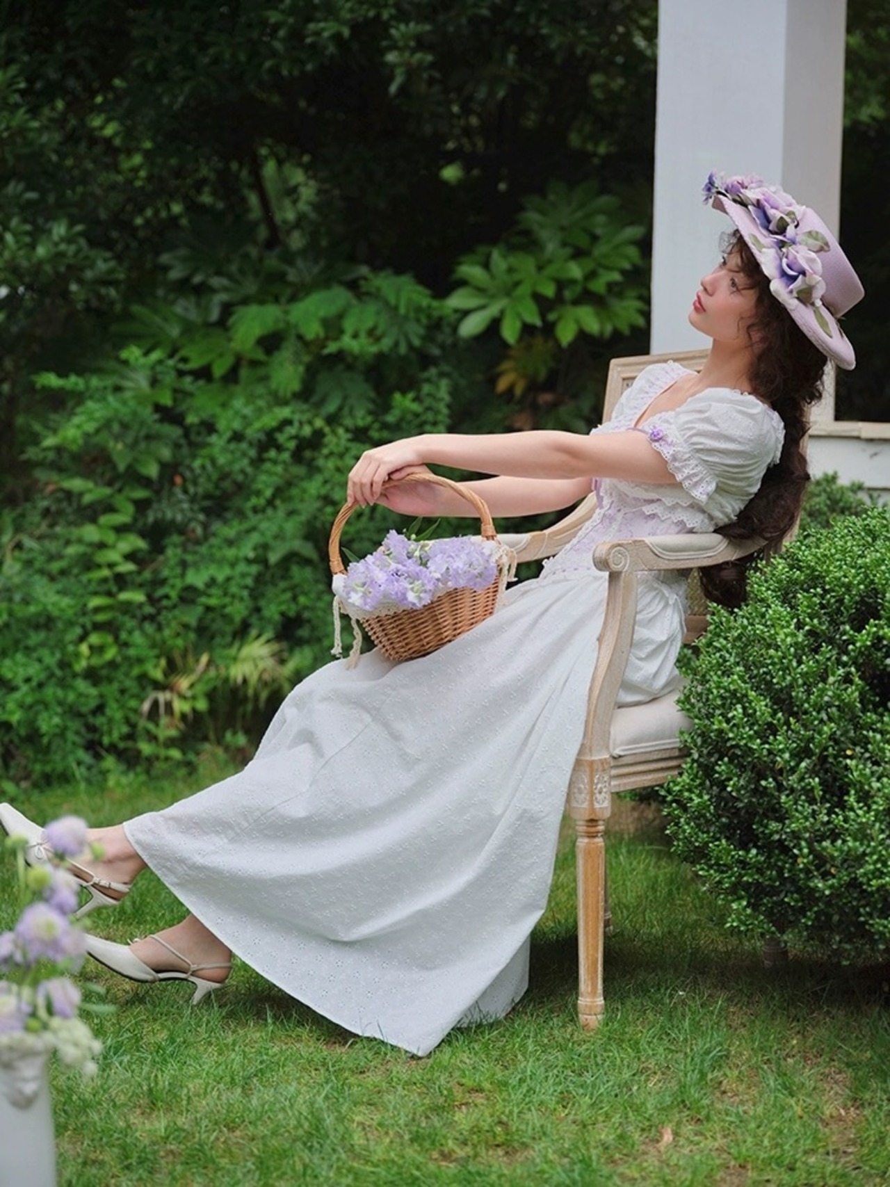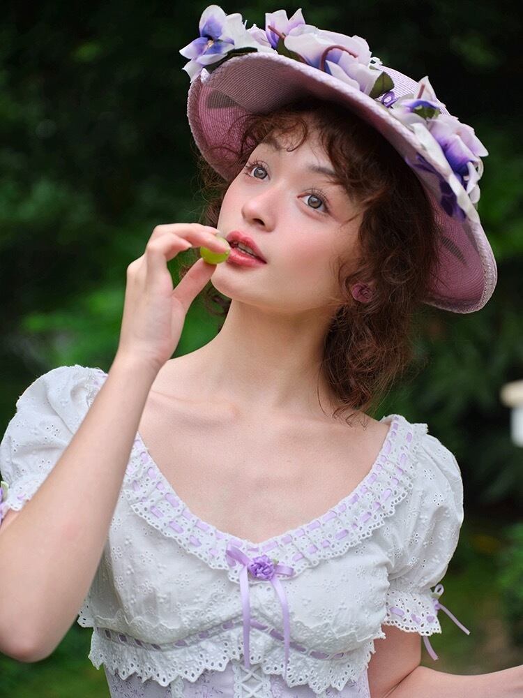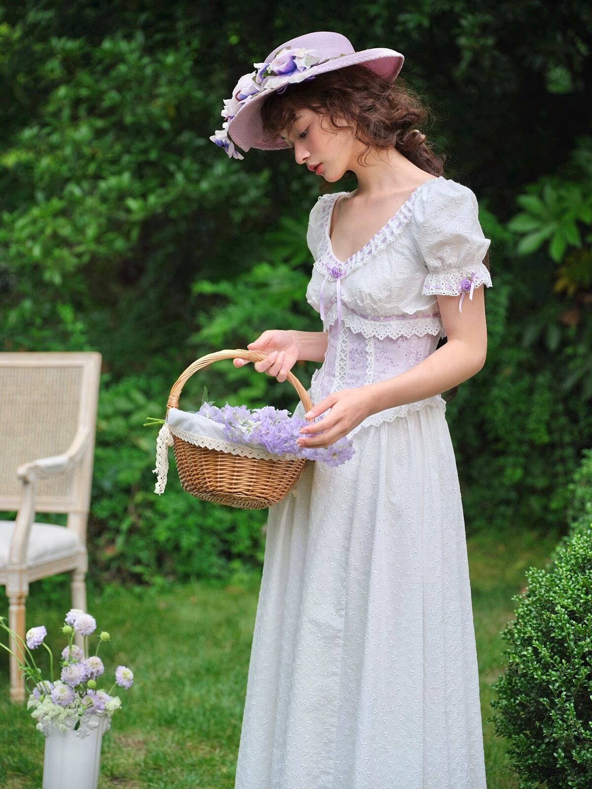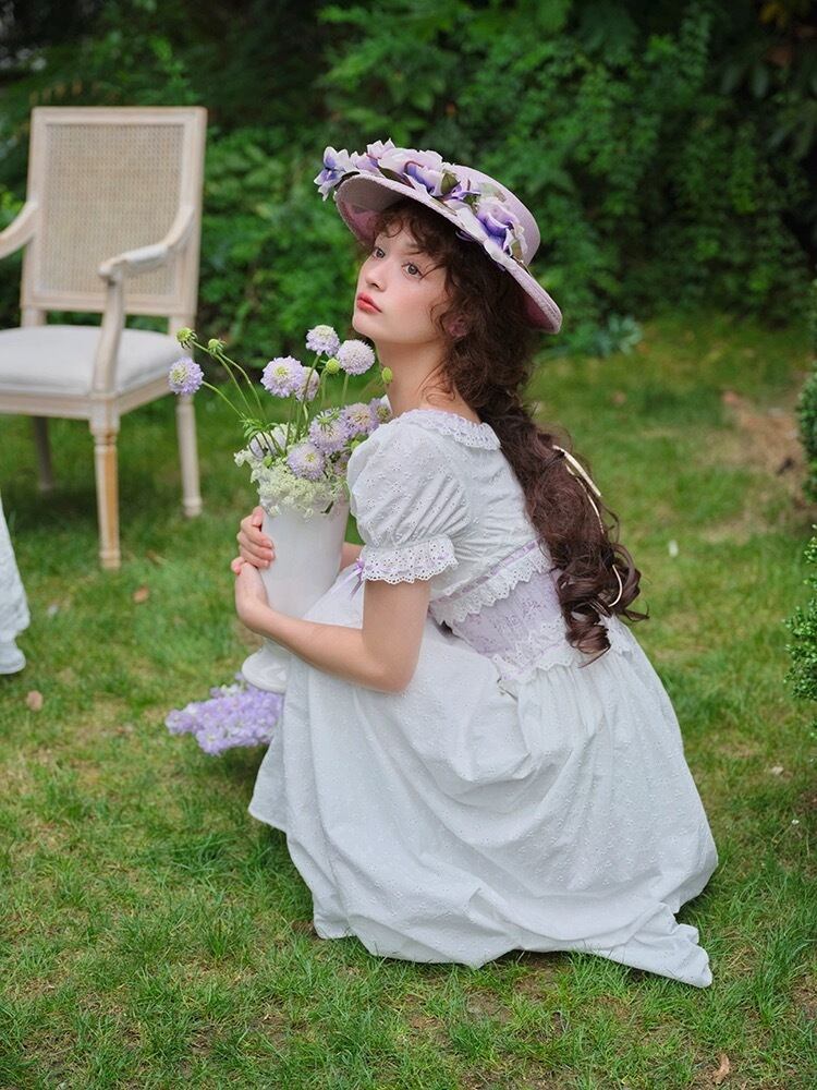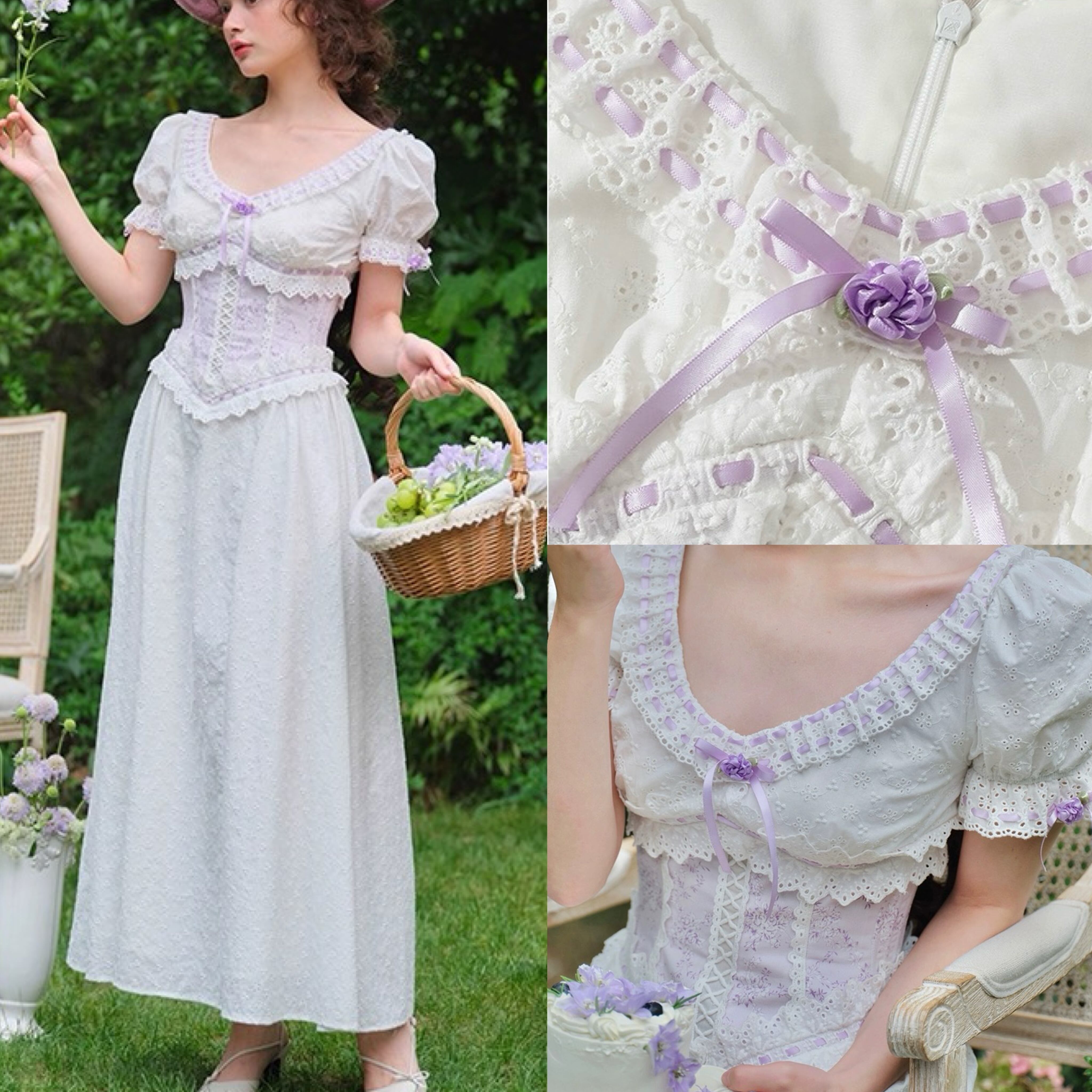 白 ホワイト 紫 ガーリー ワンピース 可愛い XL