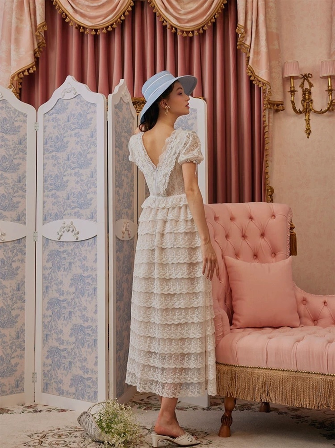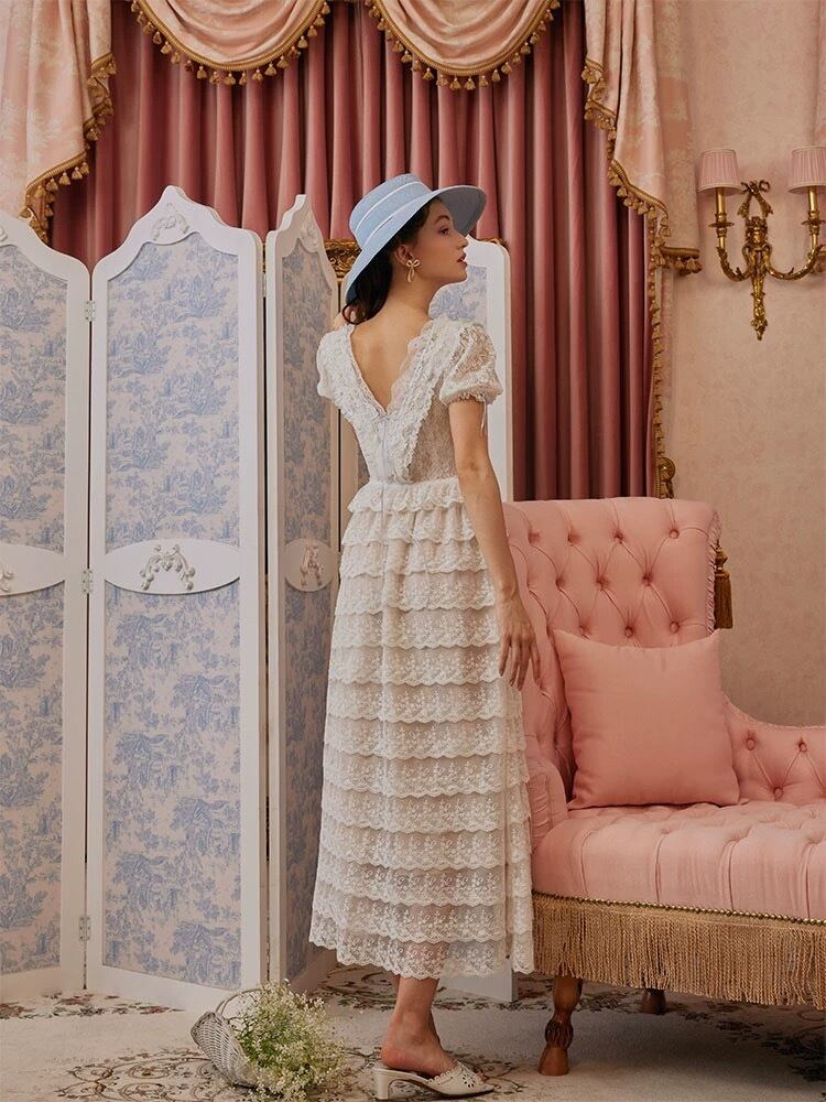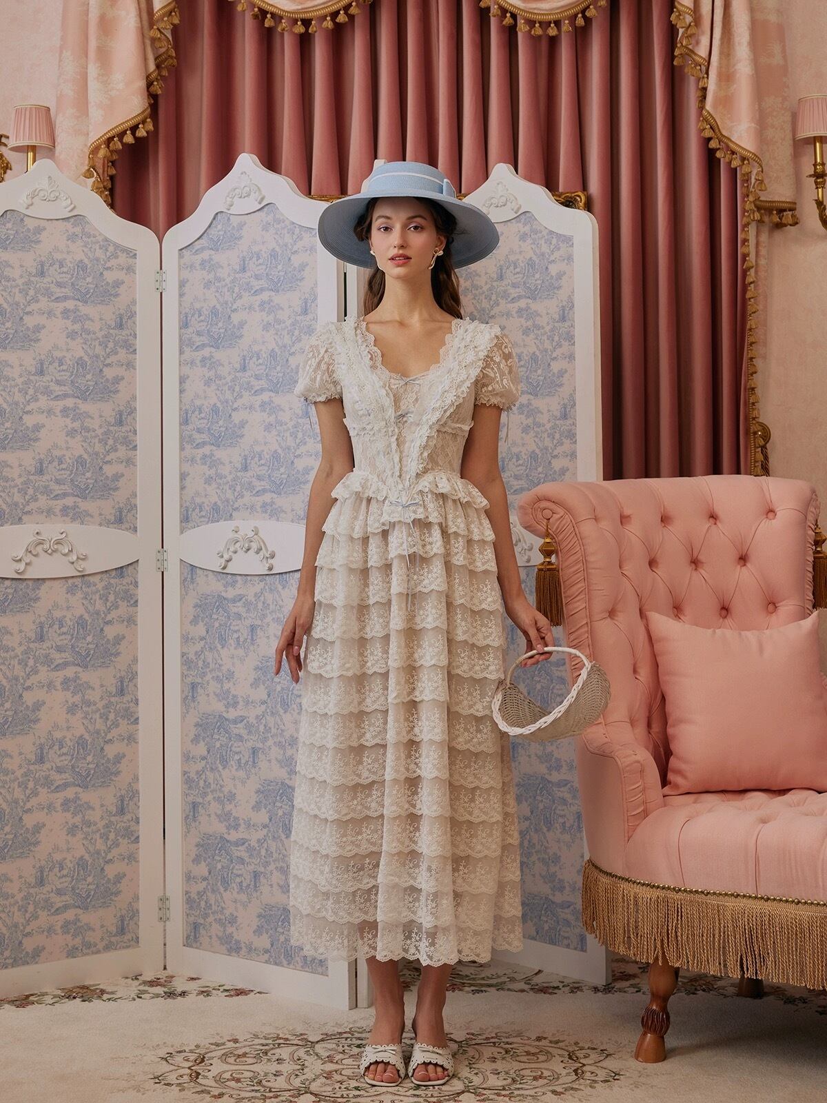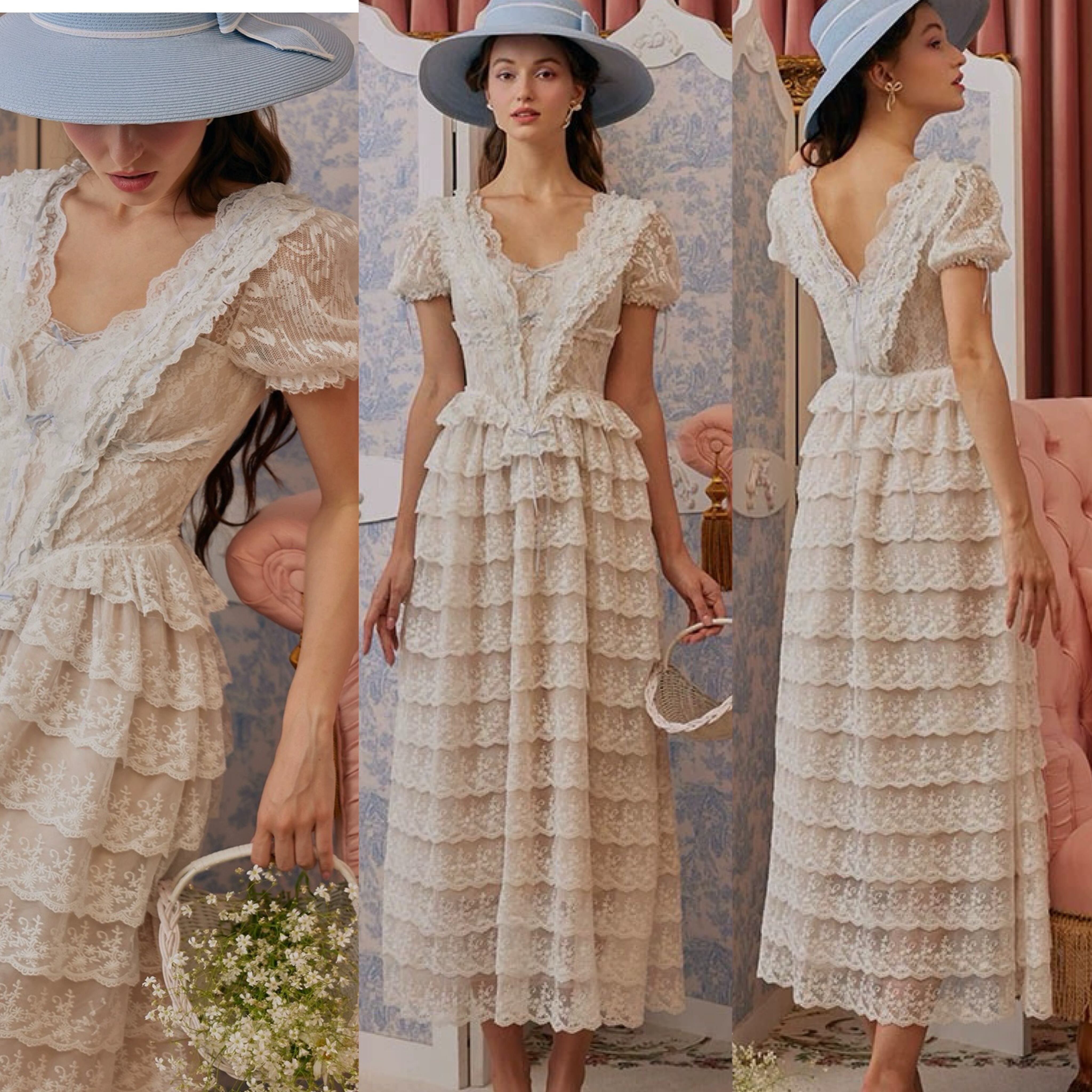 ドレス フリル ガーリー ゴージャス ワンピース 白 ホワイト 花柄 XL V ブラウス レース どれ