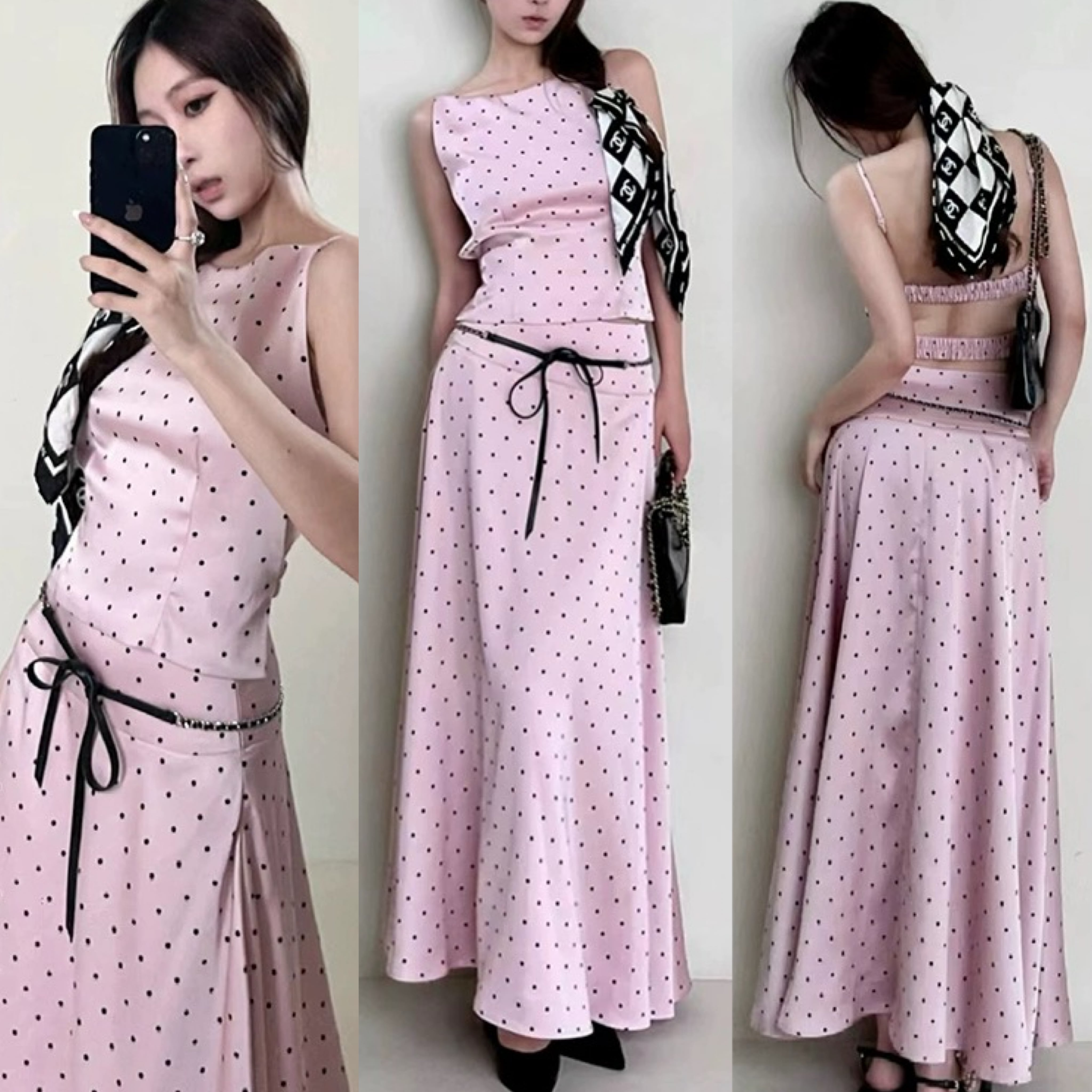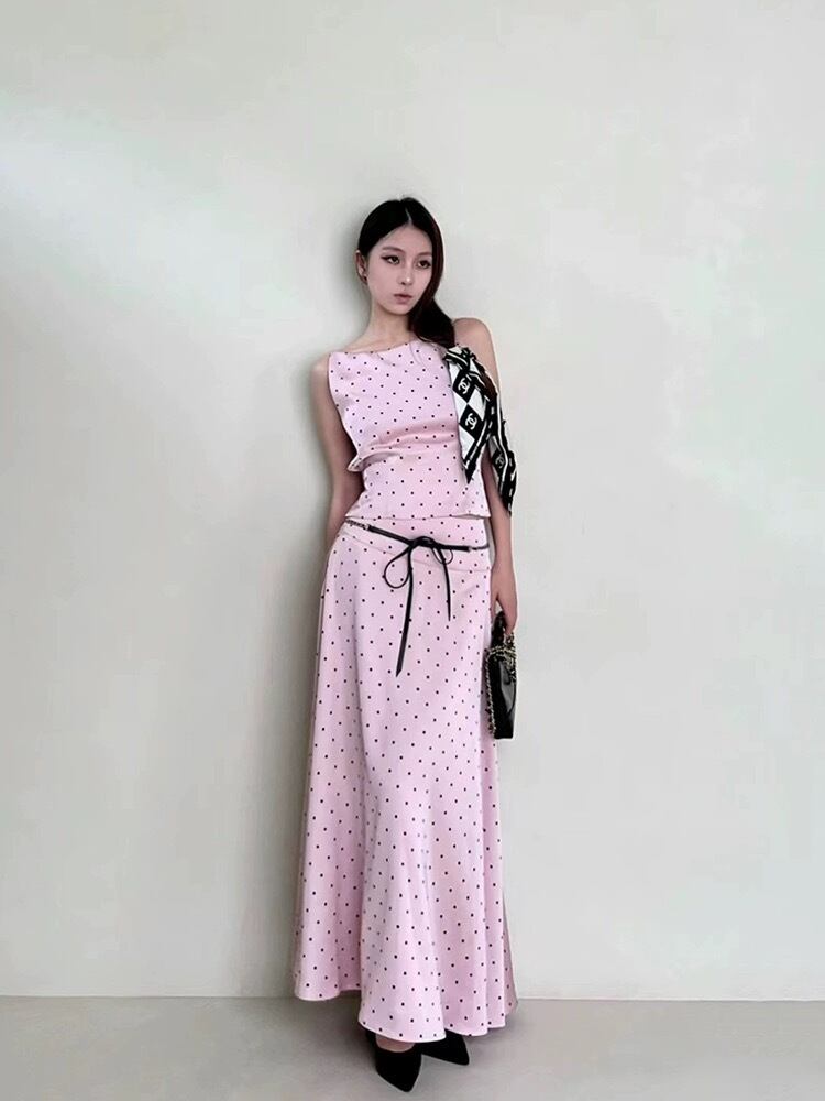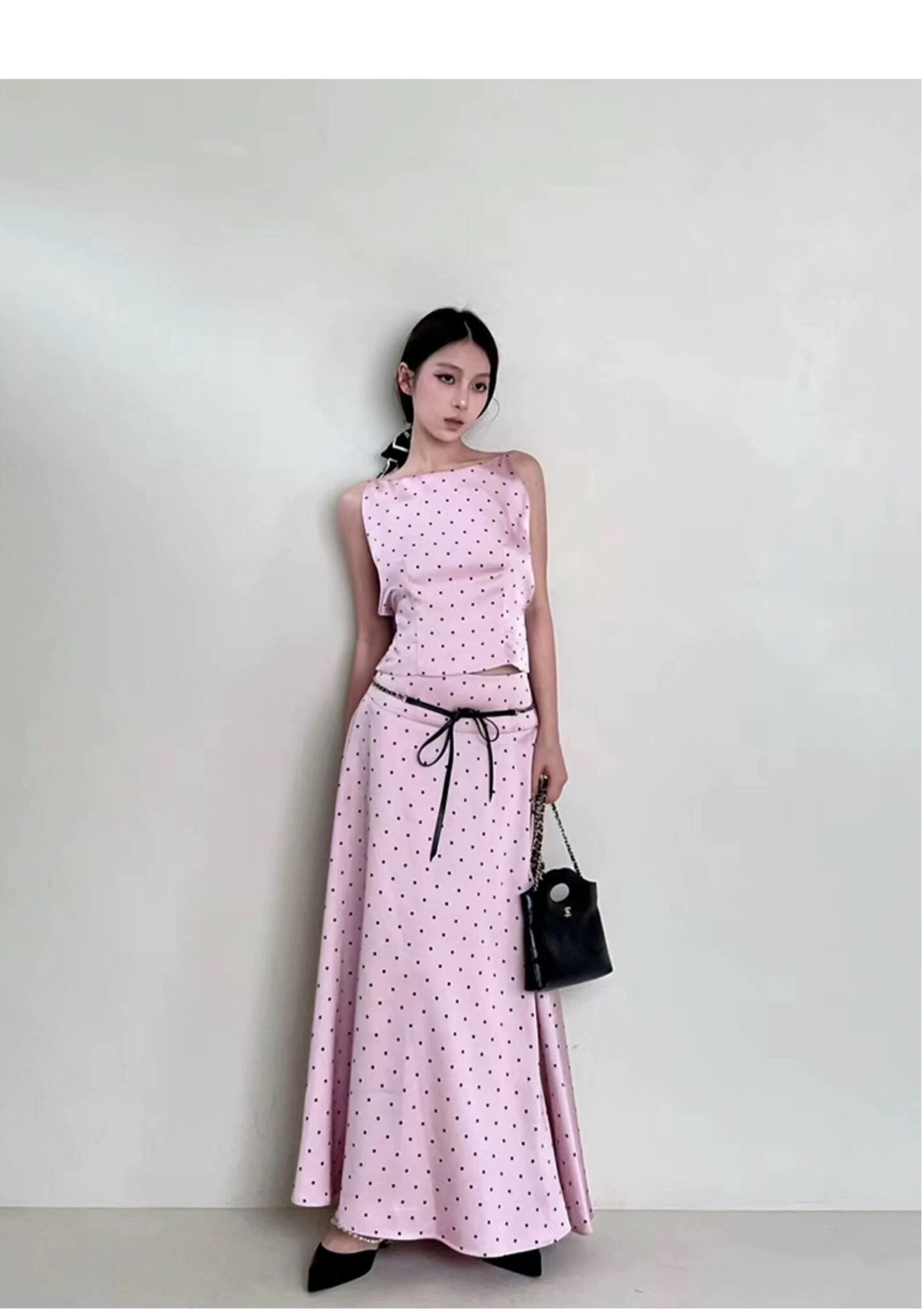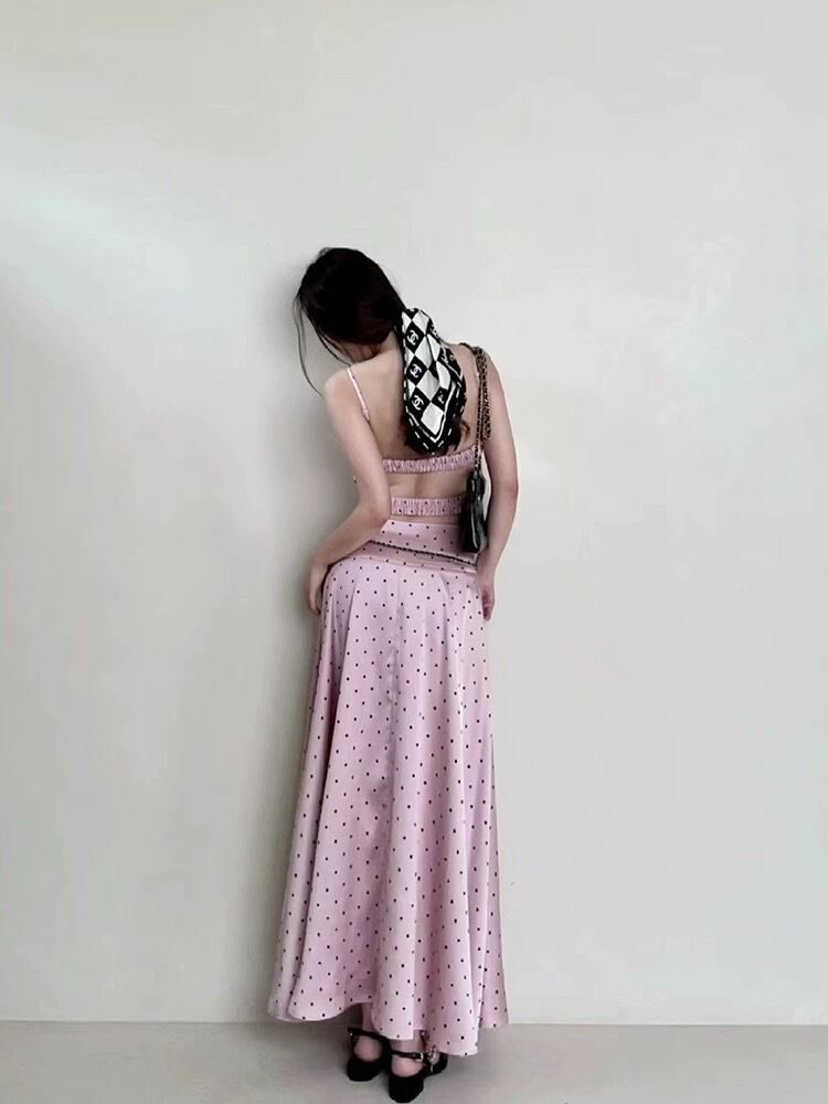 ピンク 水玉 ドット キャミソール ワンピース スカート