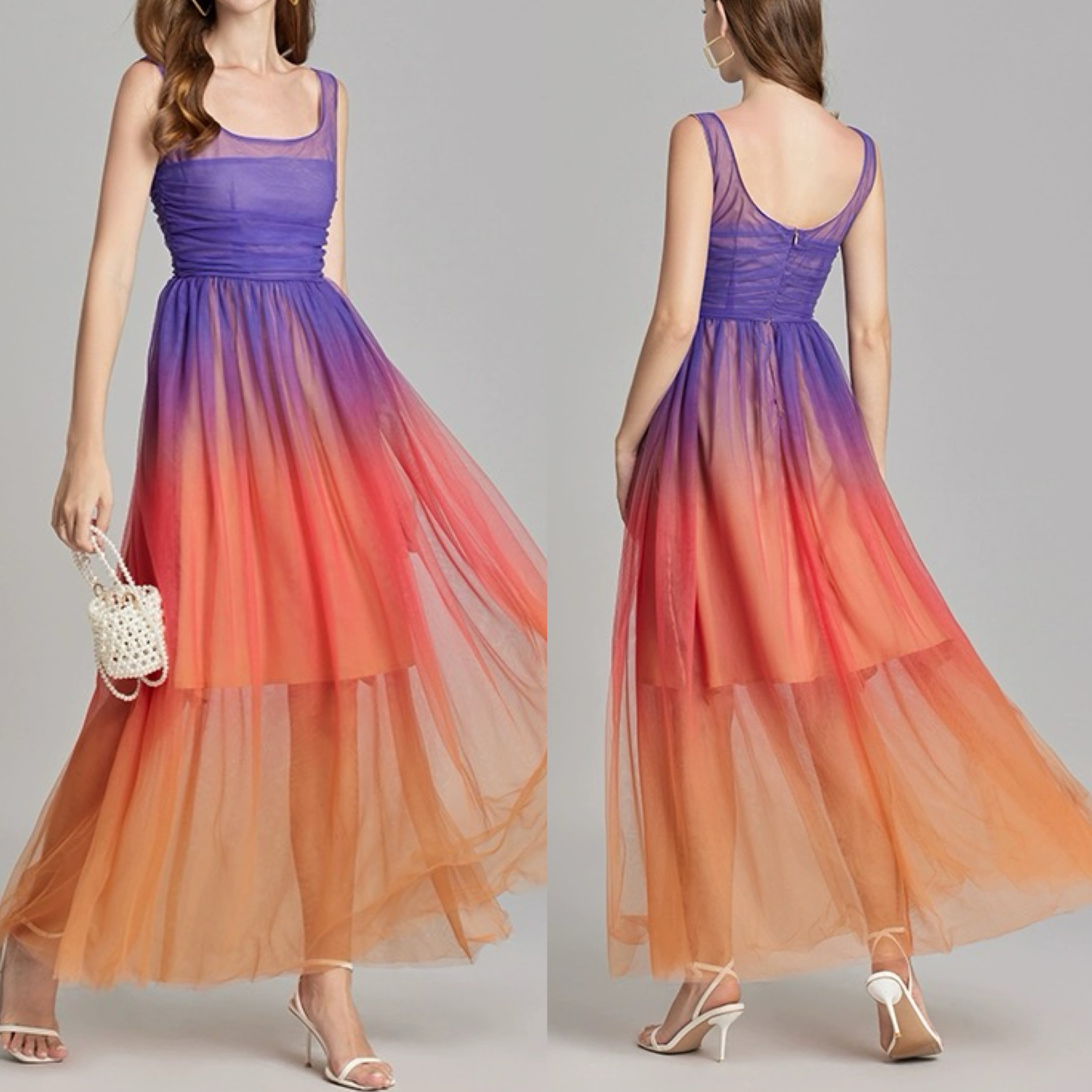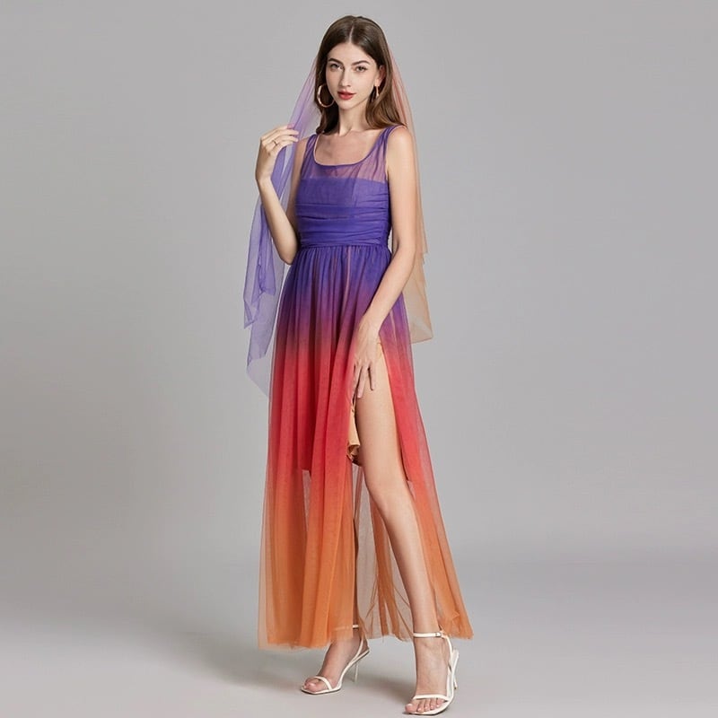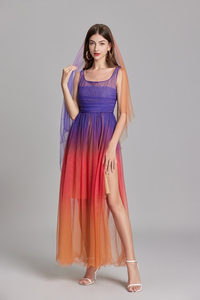 オレンジ 紫 グラデーション ワンピース XL エレガント XL
