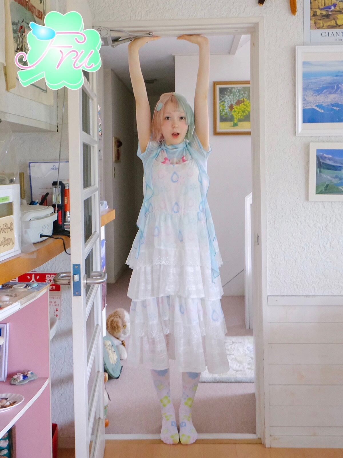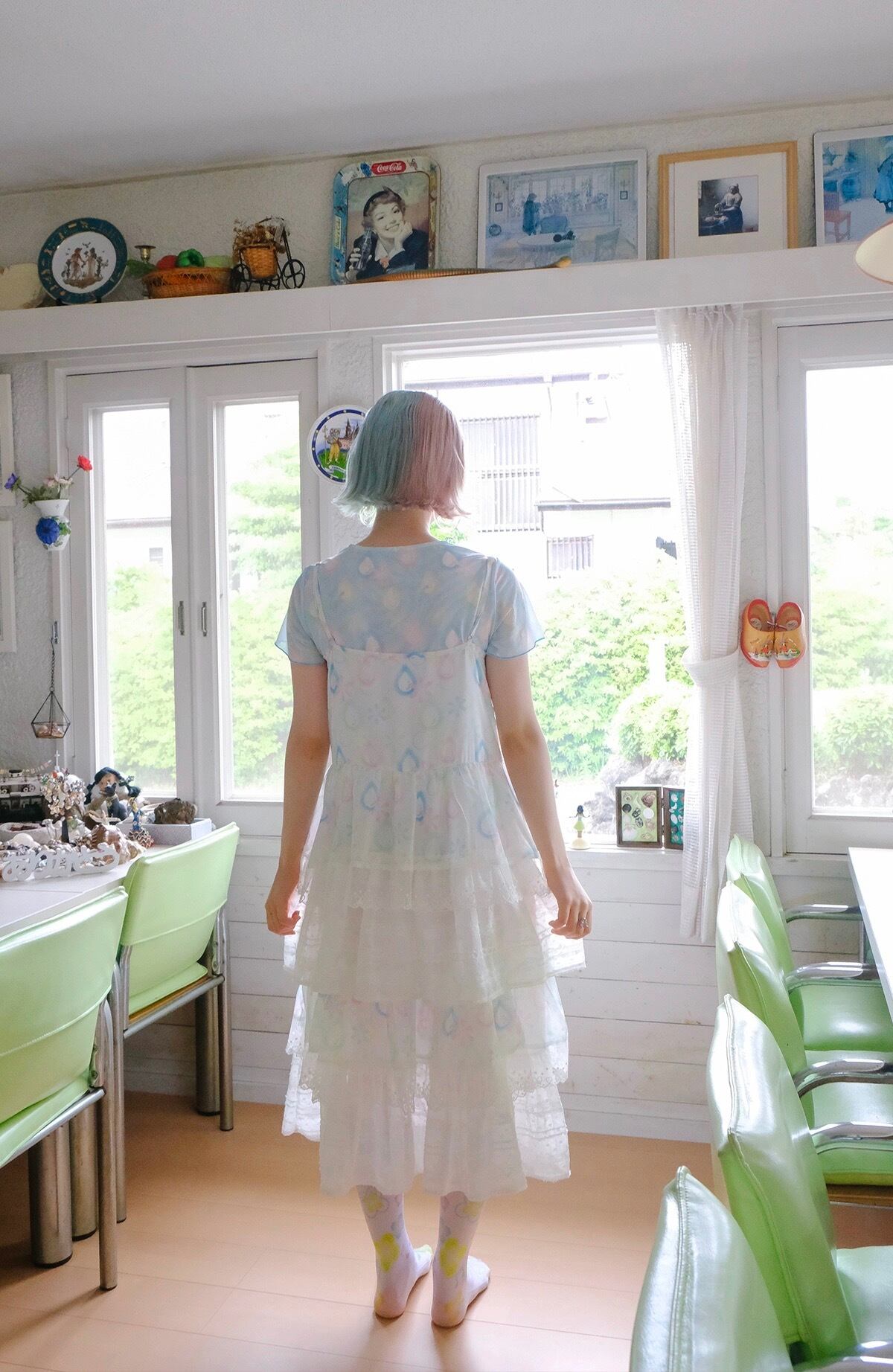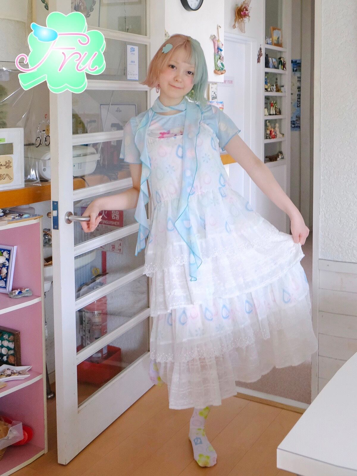 白 爽やか カジュアル ピンク 水色 ガーリー ワンピース
