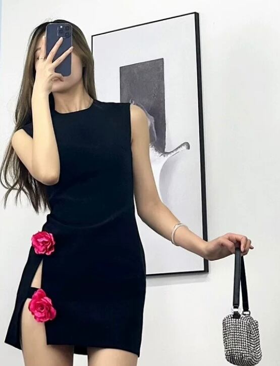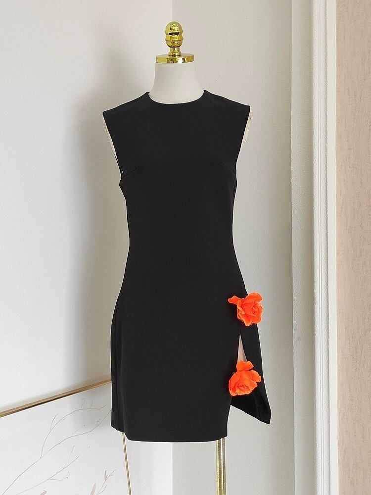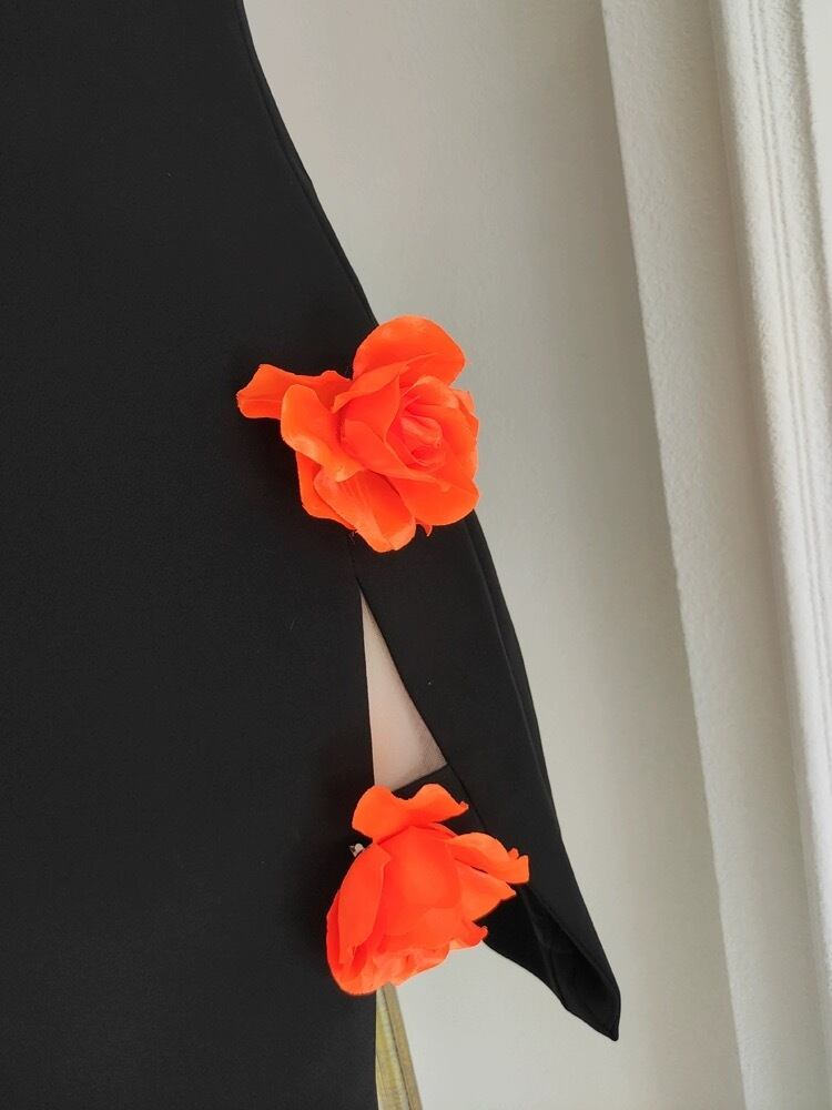 ピンク 黒 オレンジ 薔薇 フラワー ブラック ワンピース
