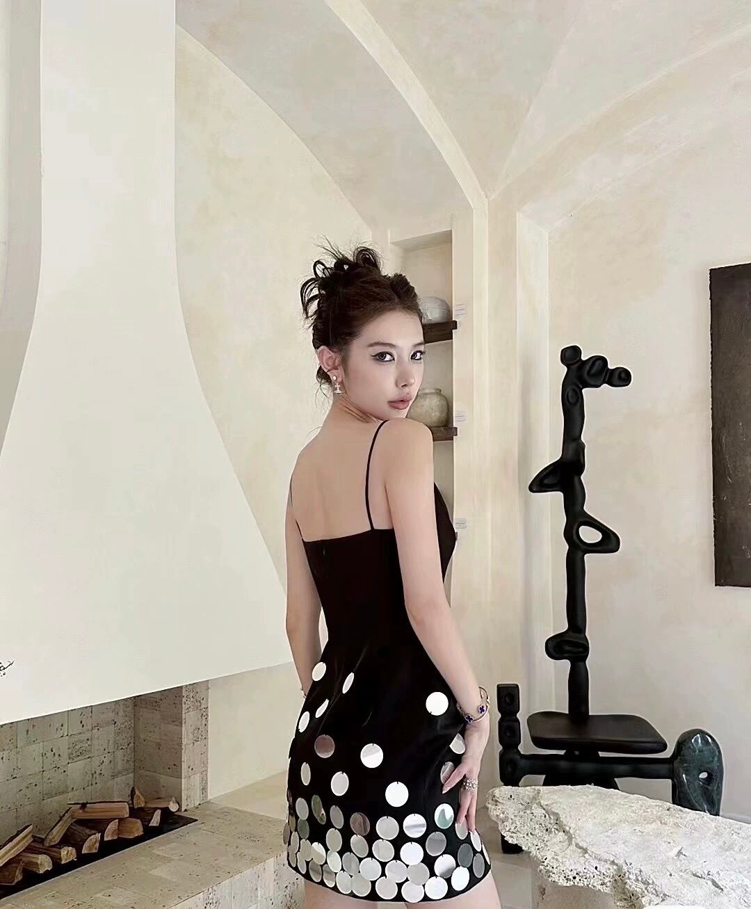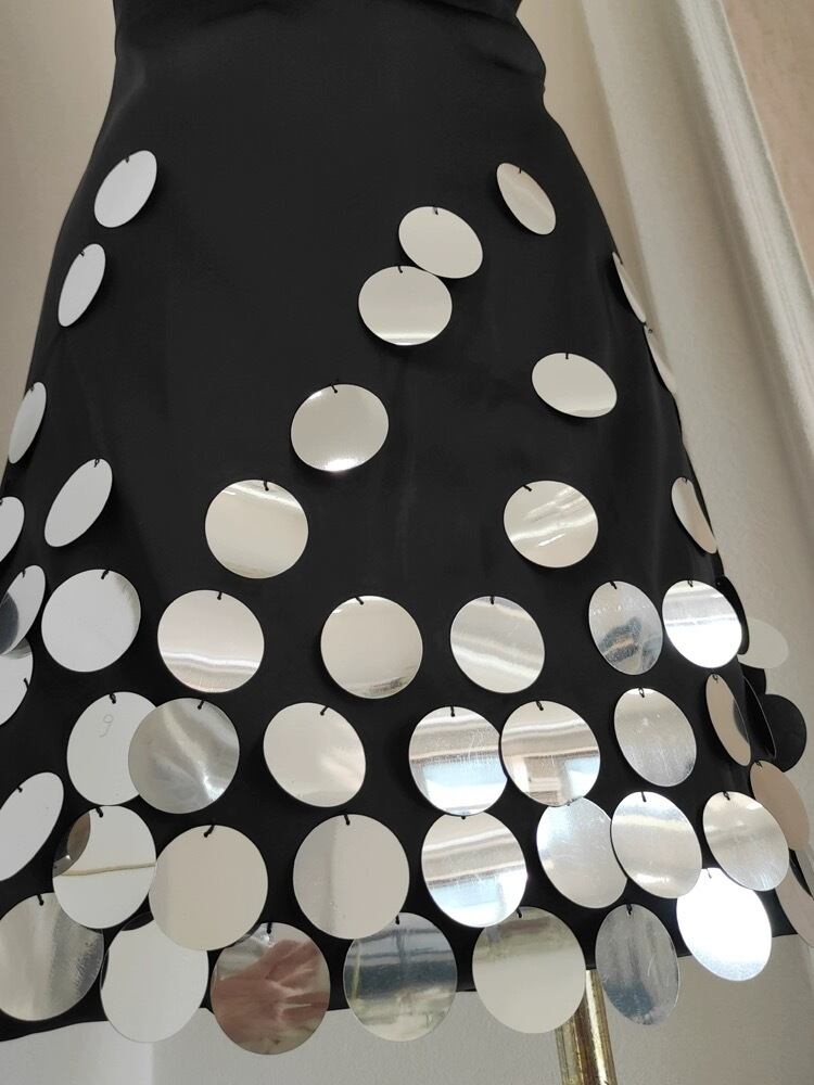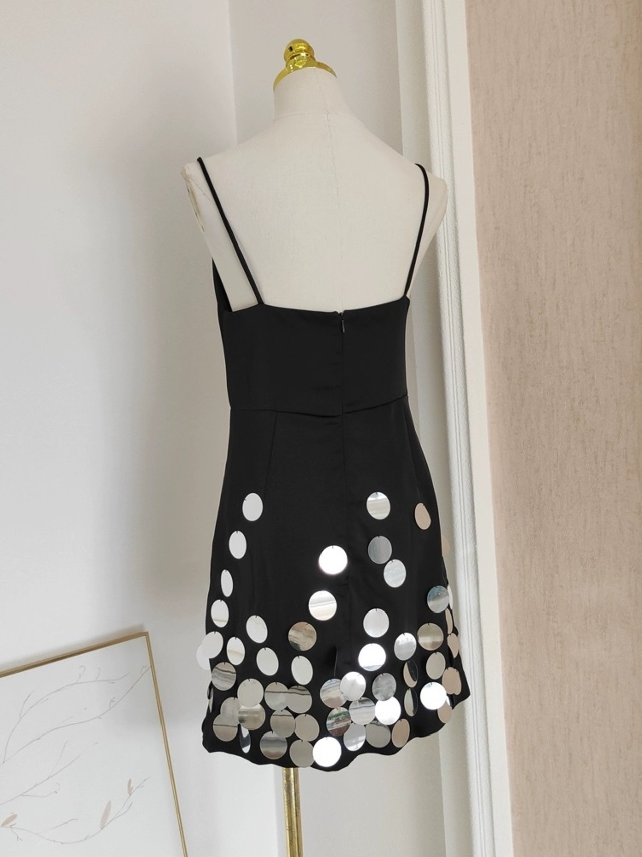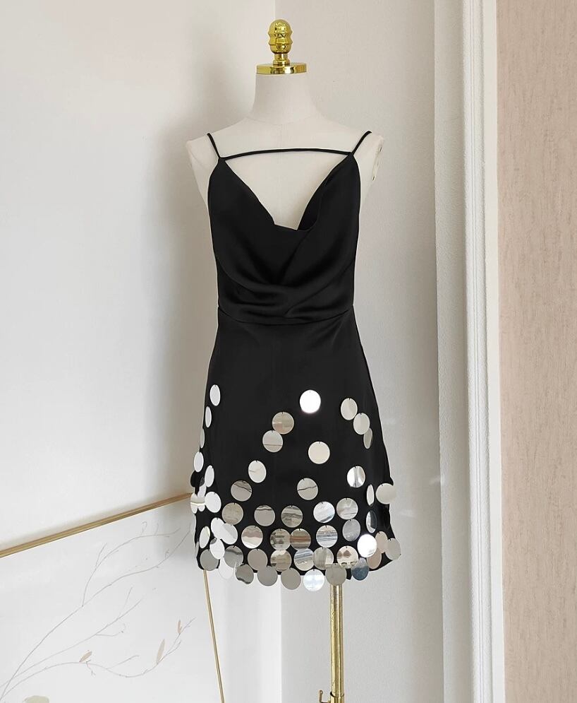 キラキラ シルバー ミラー キャミソール ワンピース セクシー ドレス 黒 シルバー
