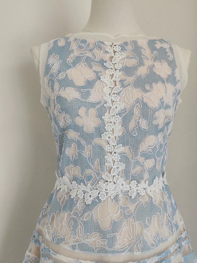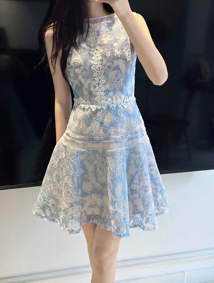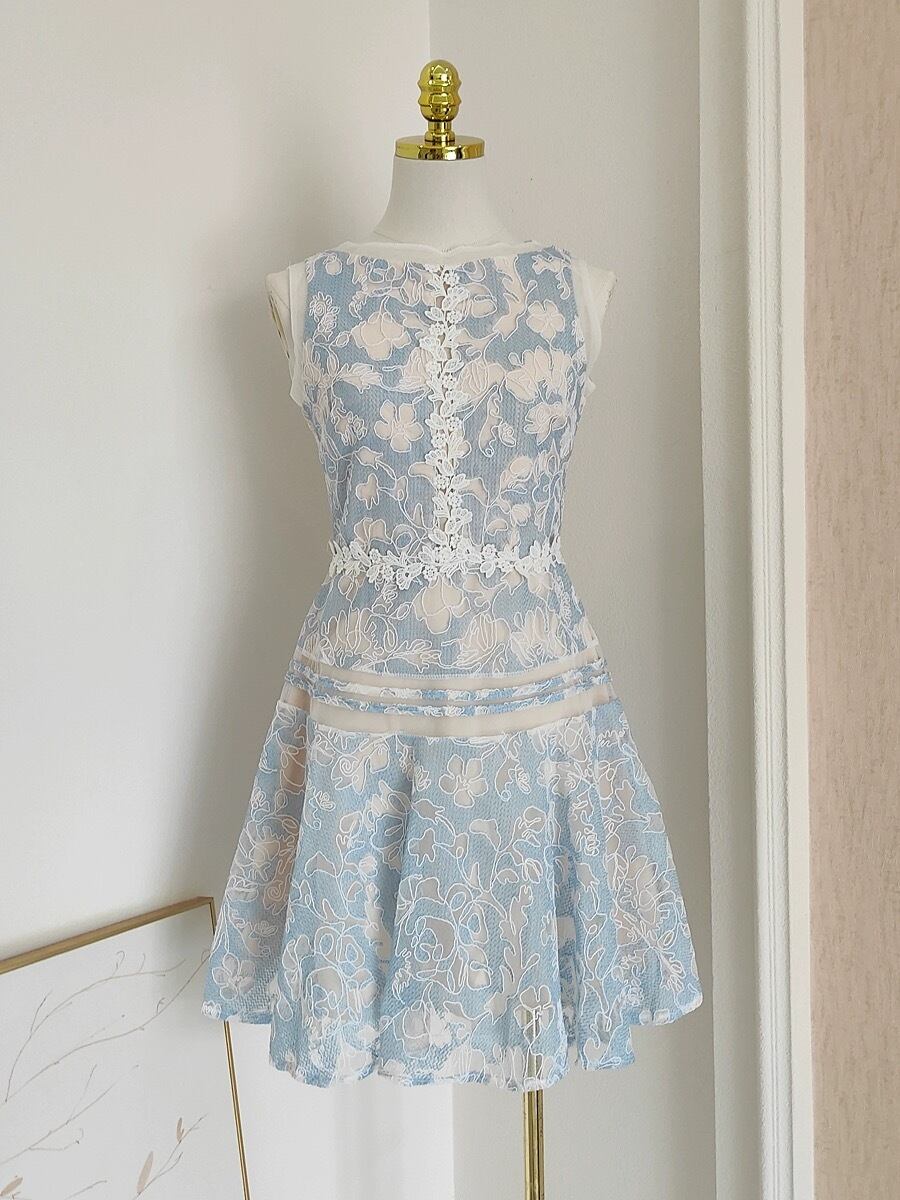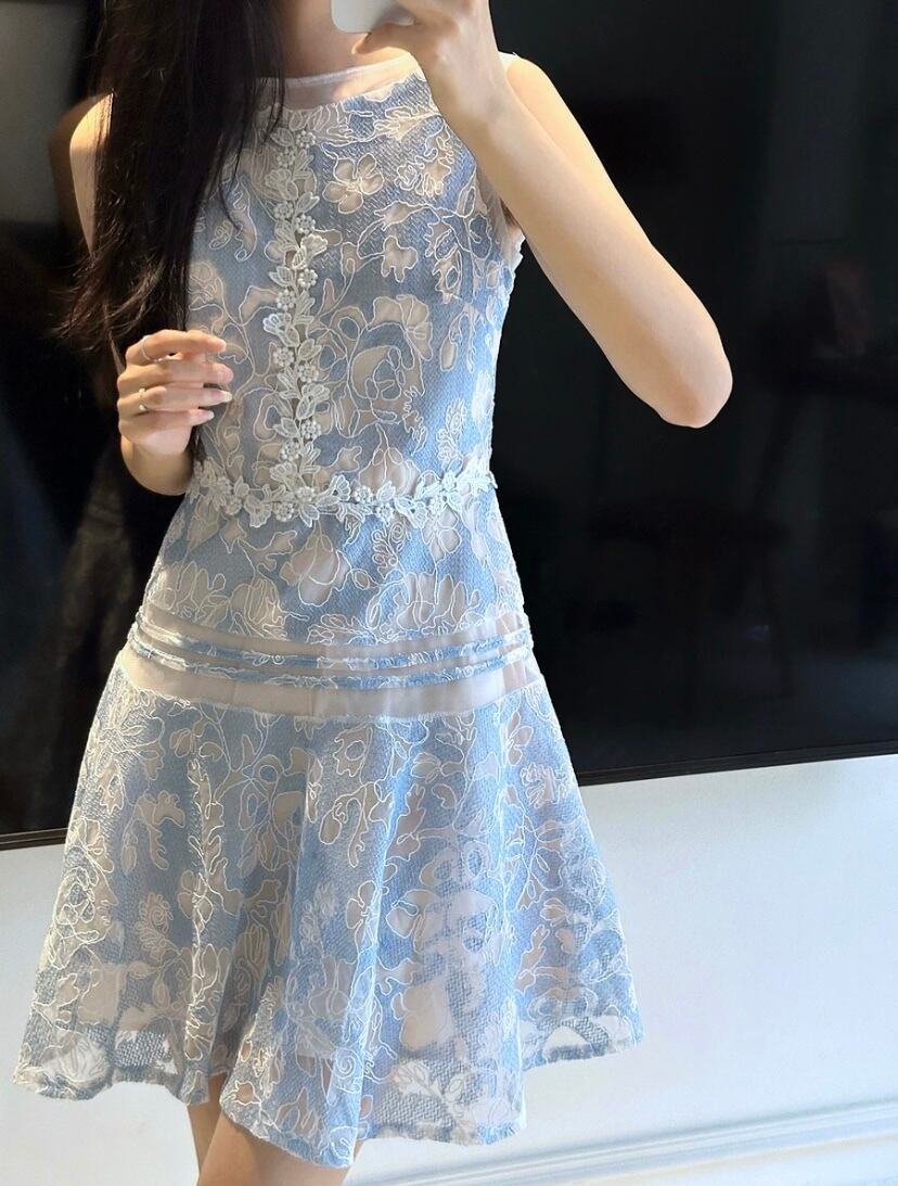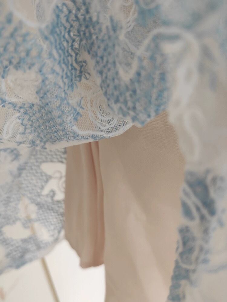 爽やか 水色 白 レース ワンピース ガーリー 可愛い 花柄 フラワー ブラウス