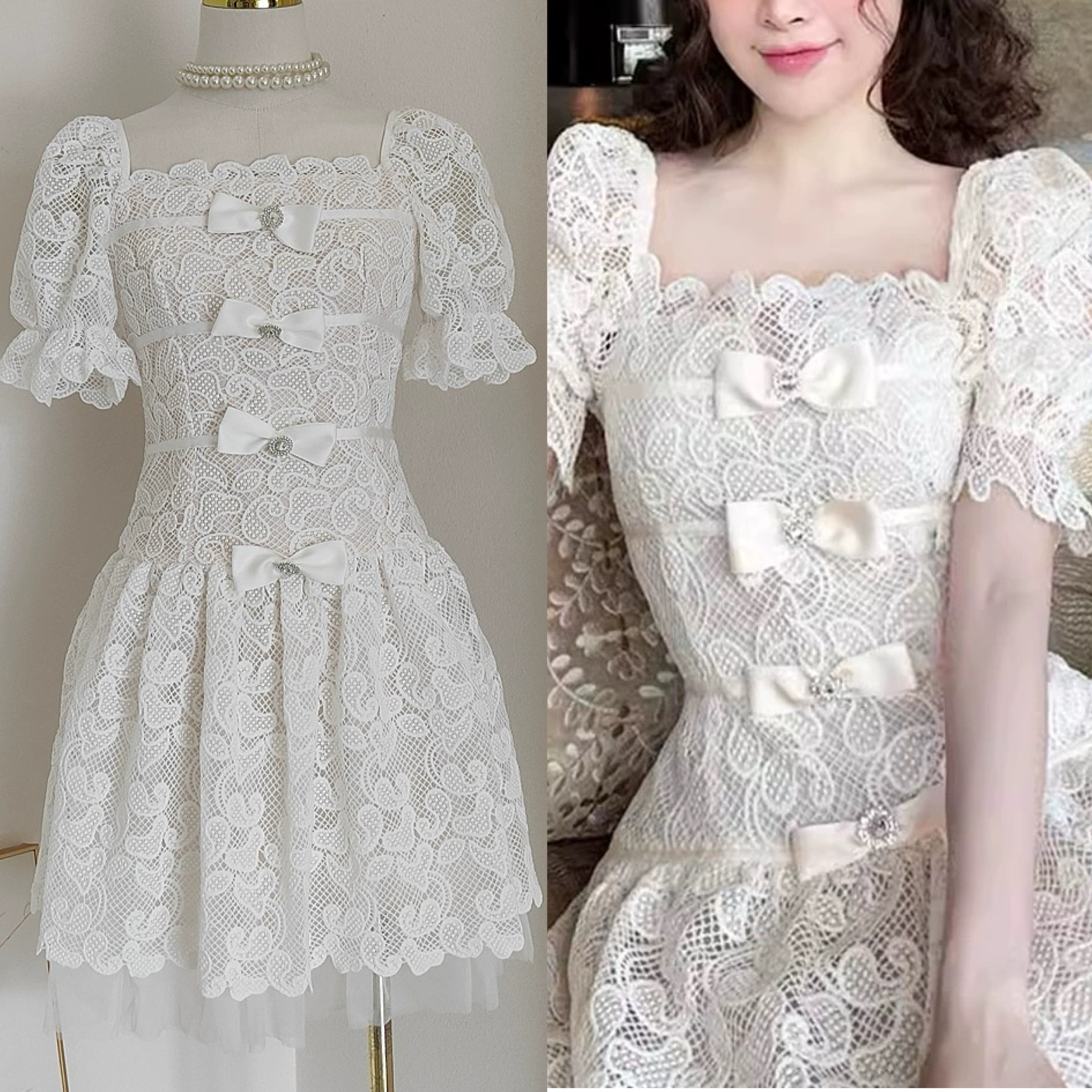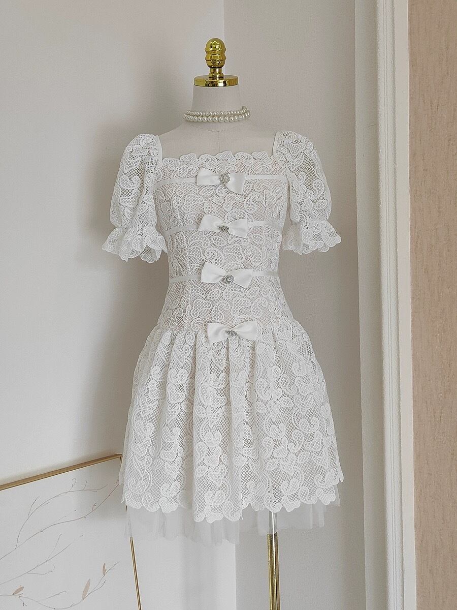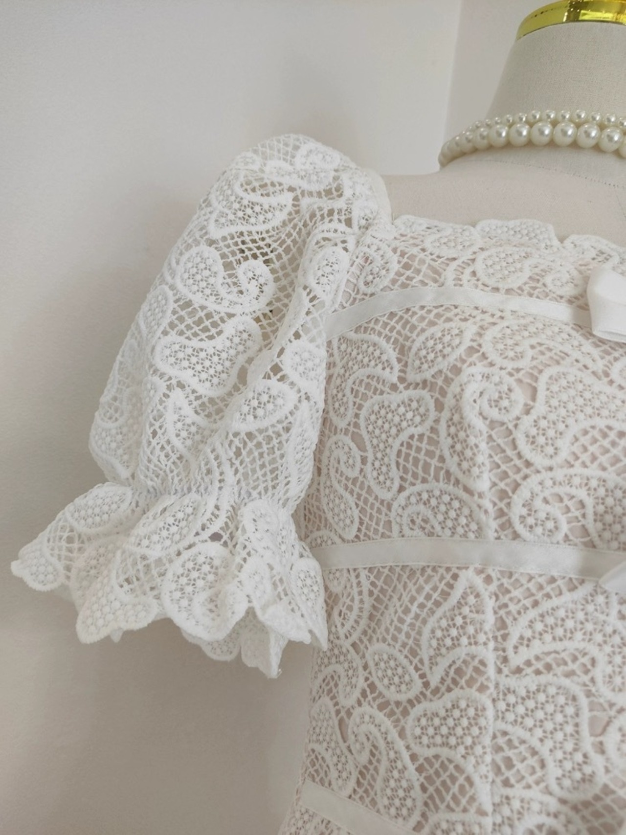 白 ホワイト リボン レース ワンピース ガーリー ベージュ