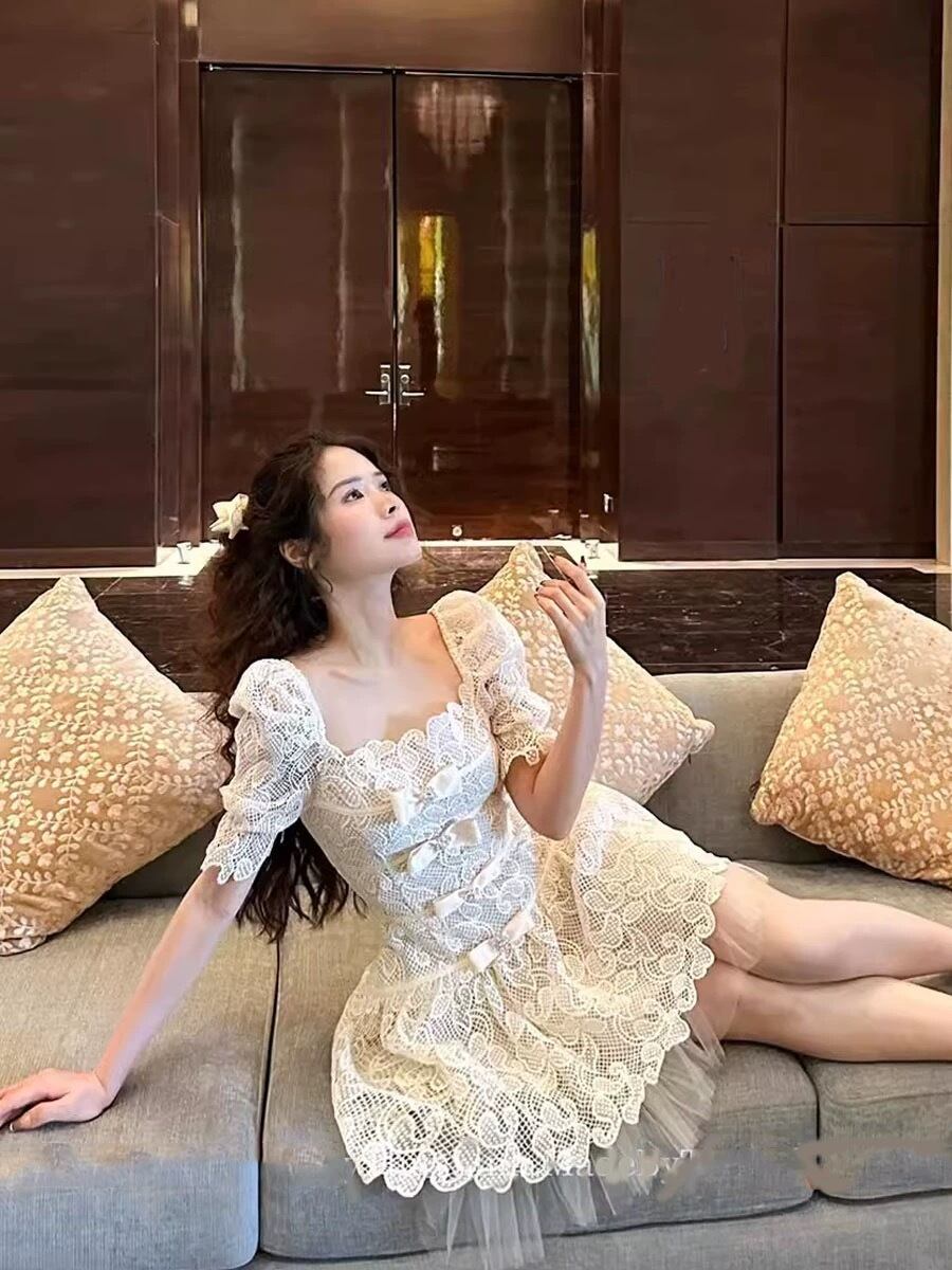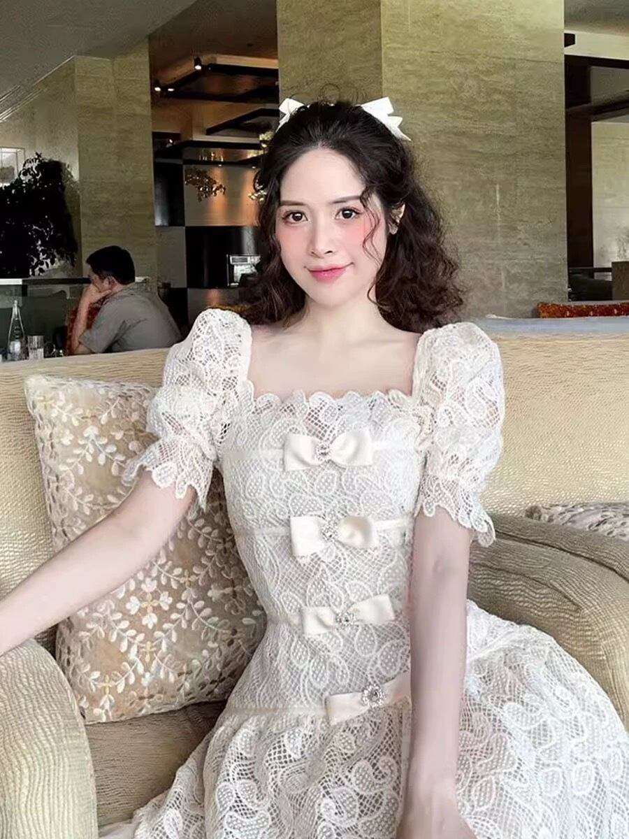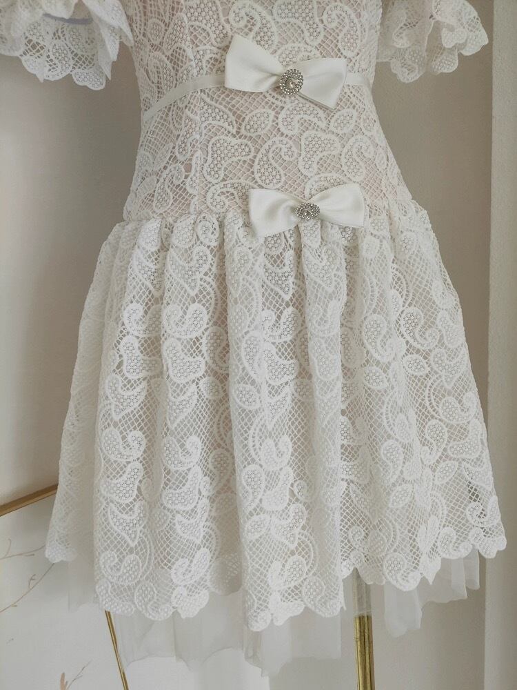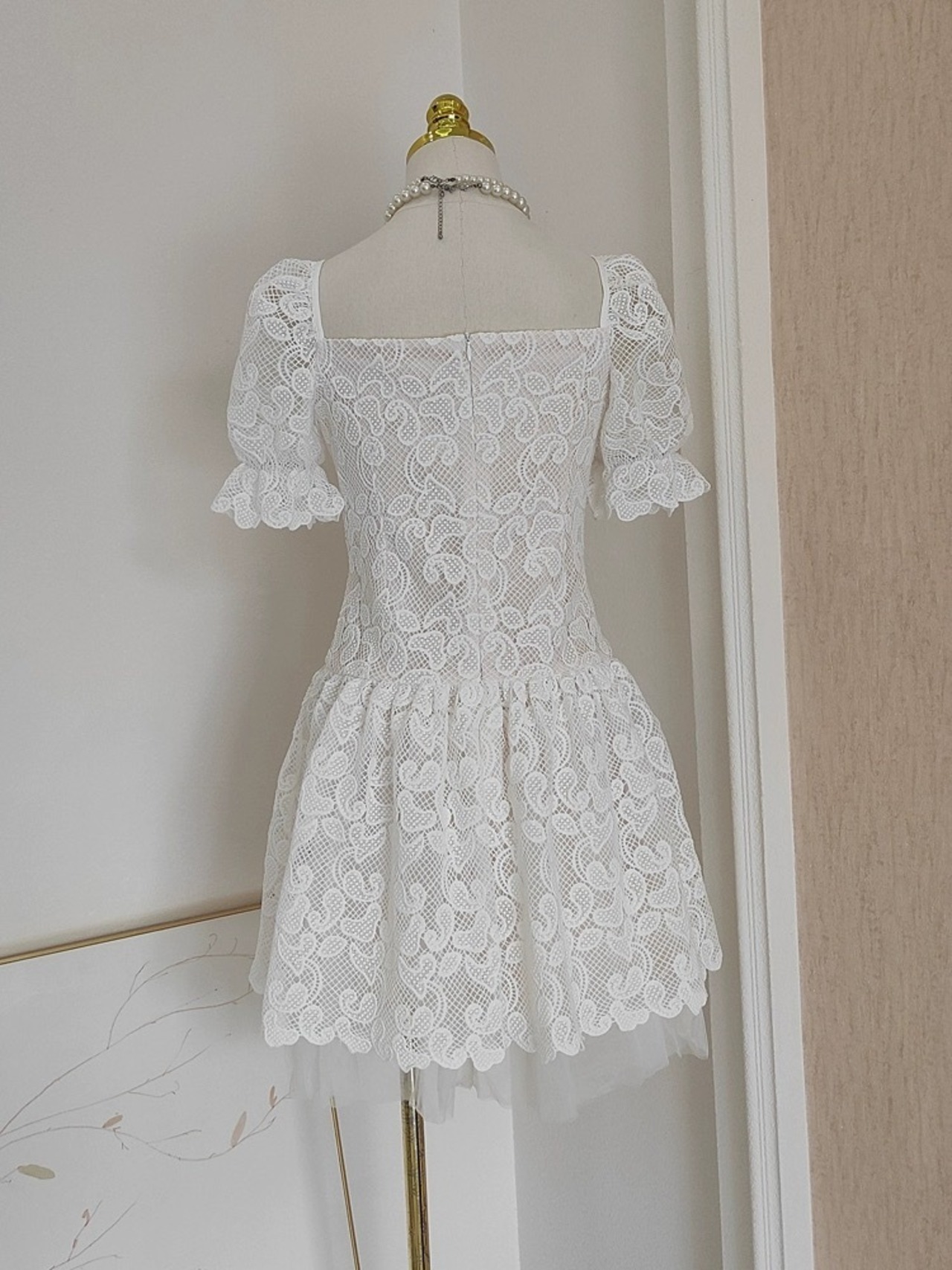 白 ホワイト リボン レース ワンピース ガーリー ベージュ