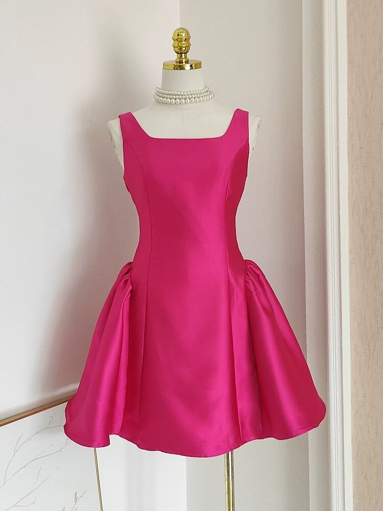 ピンク 黒 赤 ワンピース ドレス シンプル 無地 カジュアル