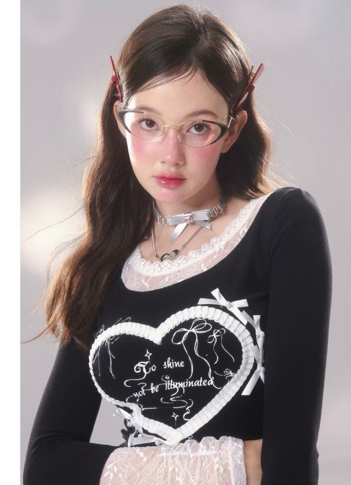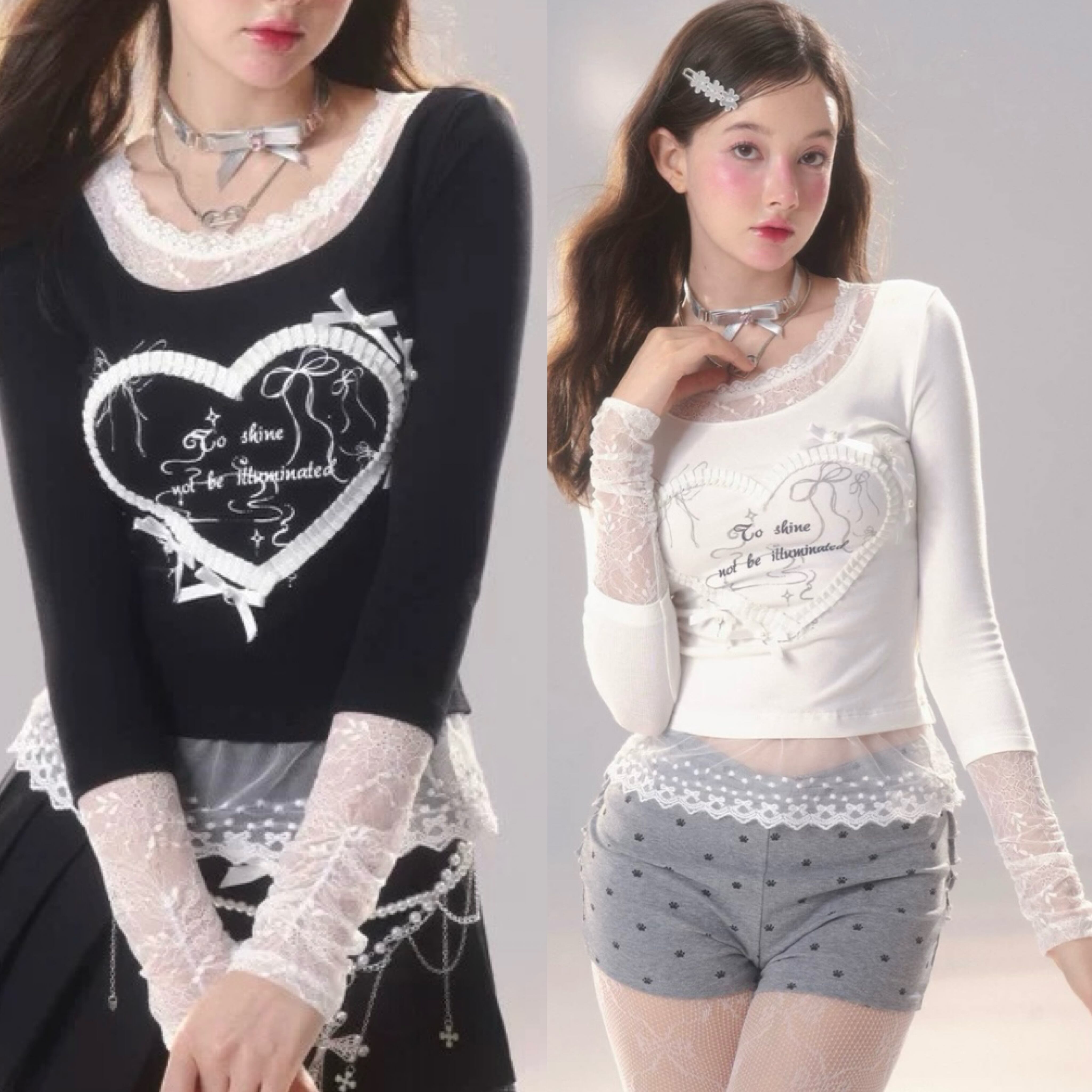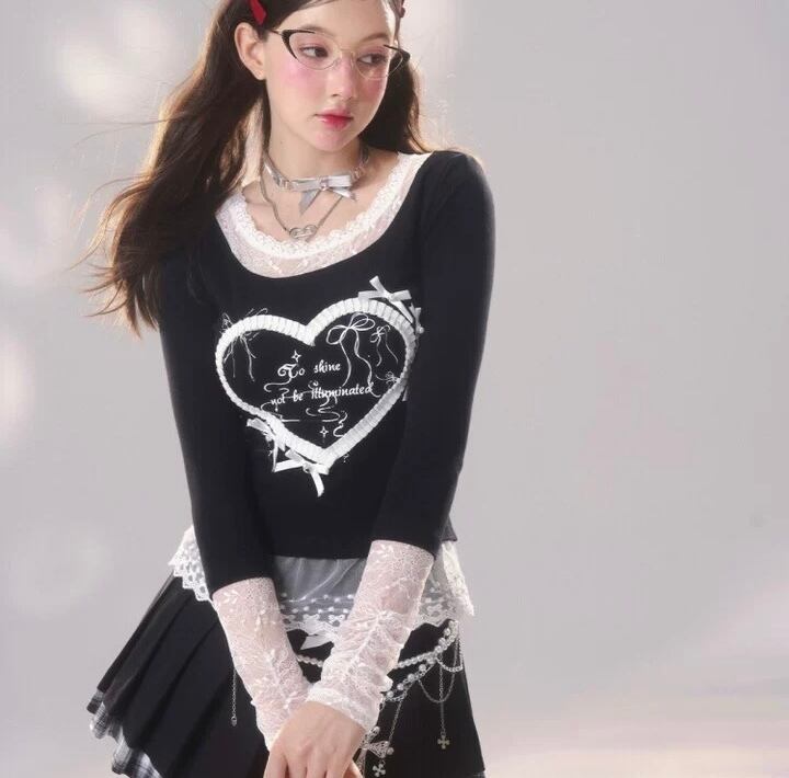 ハート トップス ガーリー Tシャツ ブラウス 白 黒