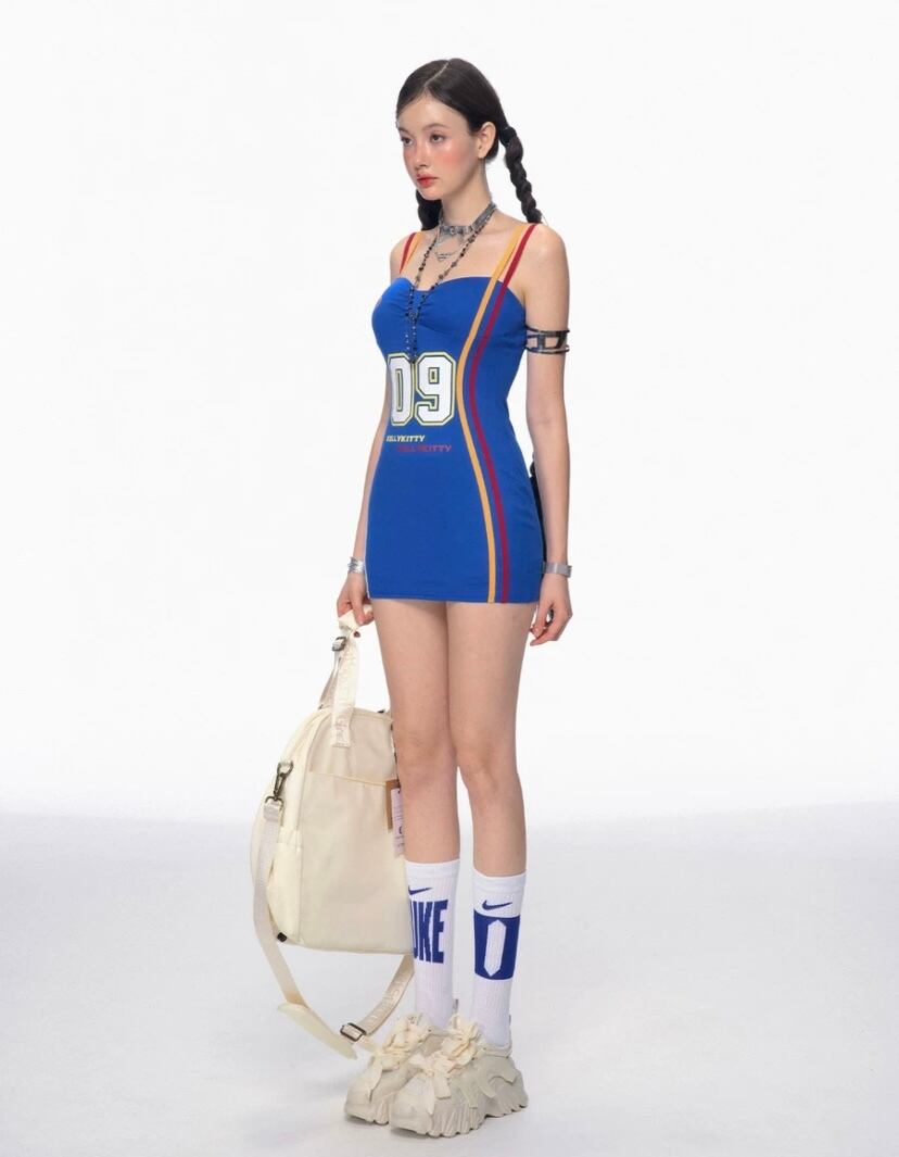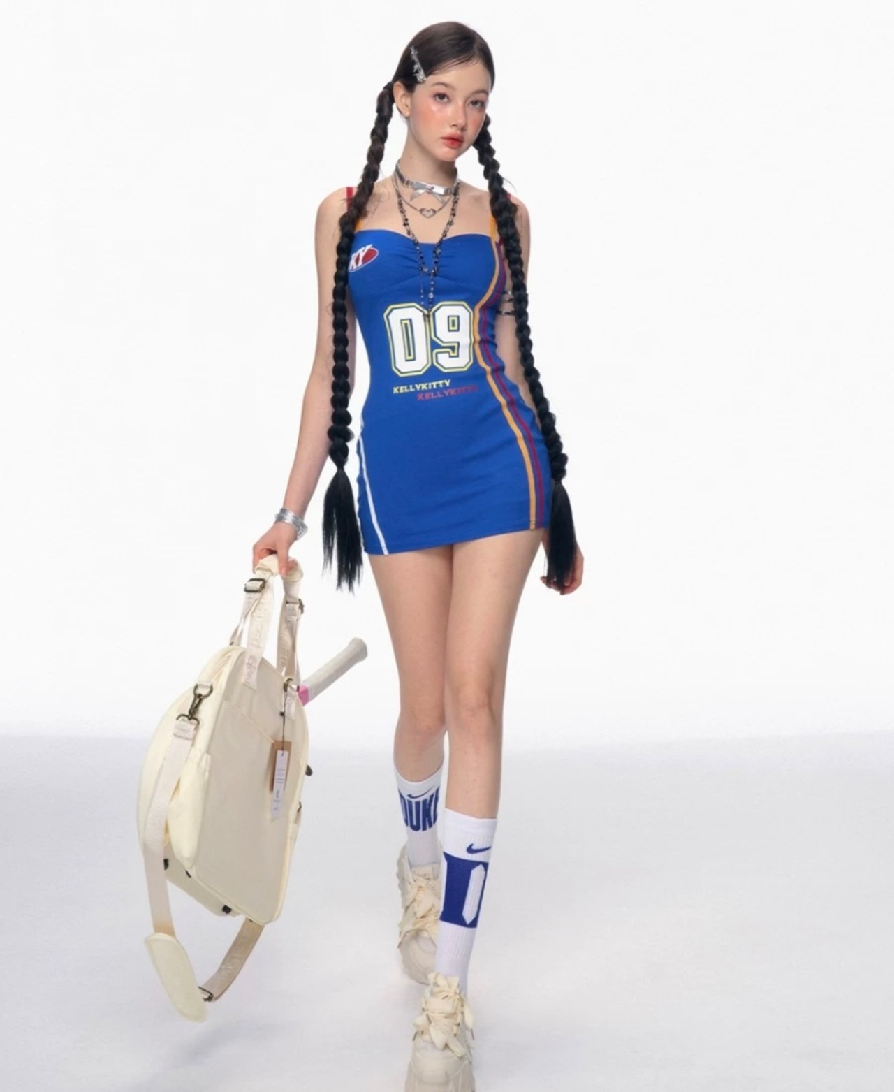 白 青 ワンピース スポーツ カジュアル 可愛い 原宿