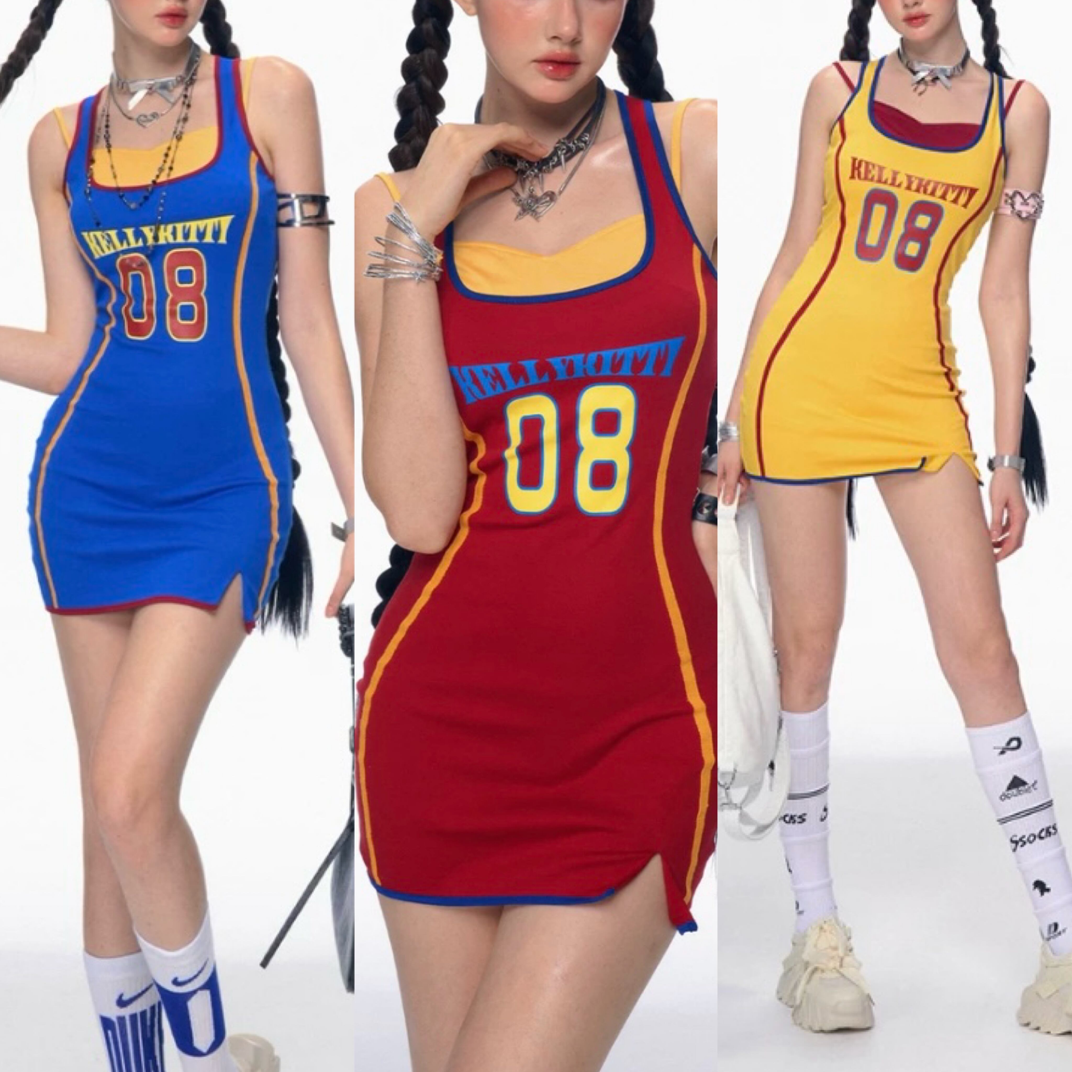 赤 黄色 青 ワンピース スポーツ 可愛い カジュアル