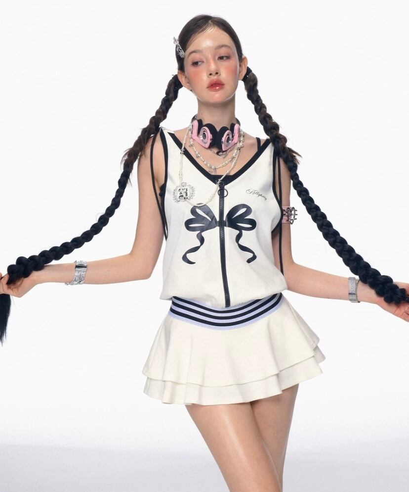 リボン パーカー ワンピース カジュアル スポーツ 白