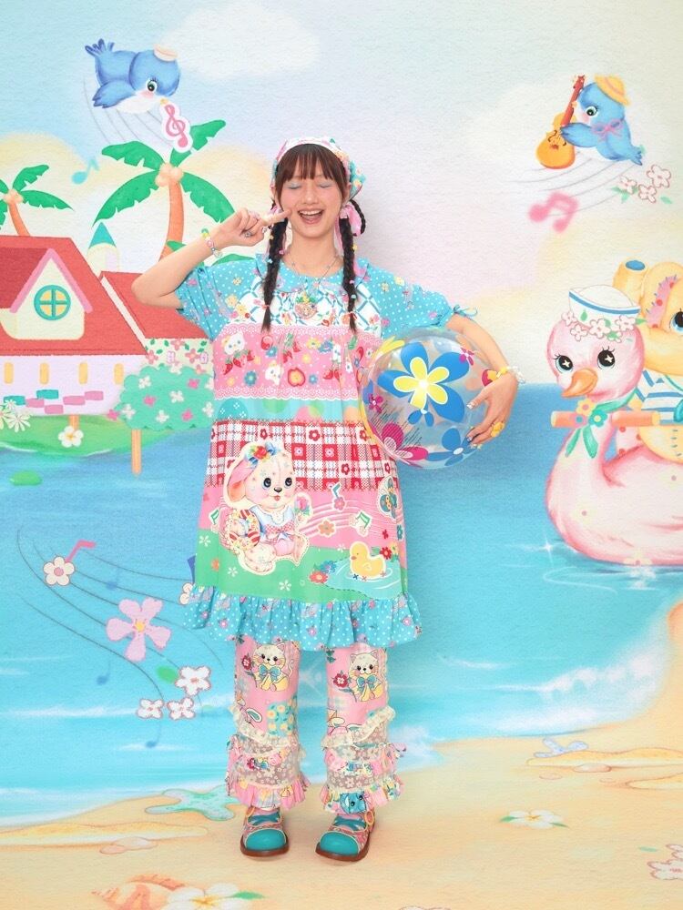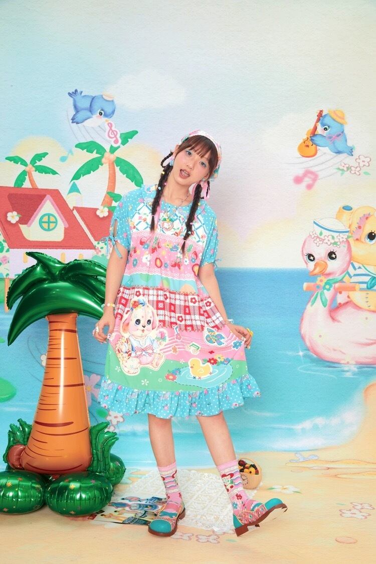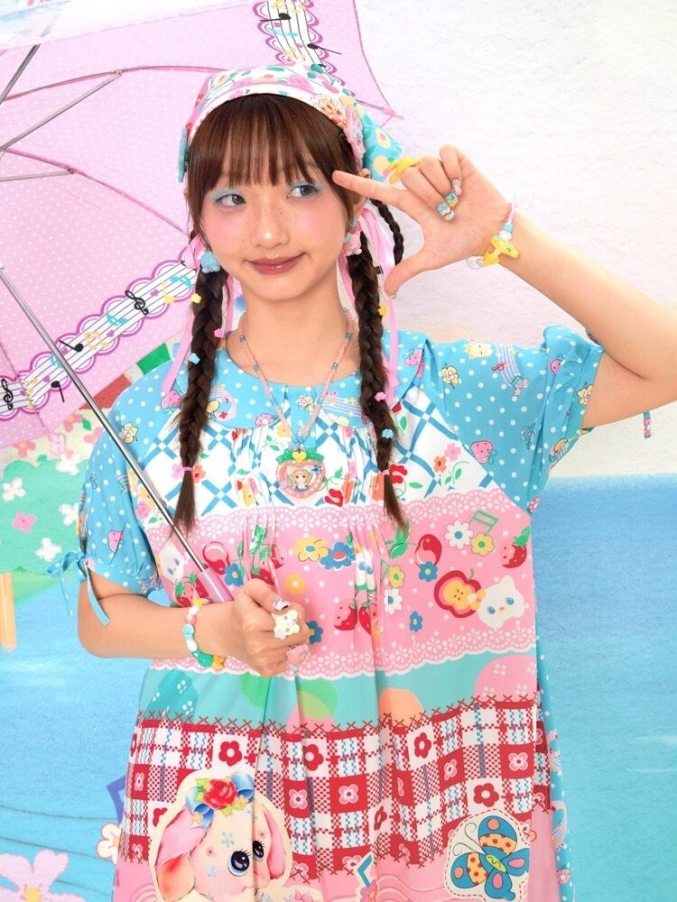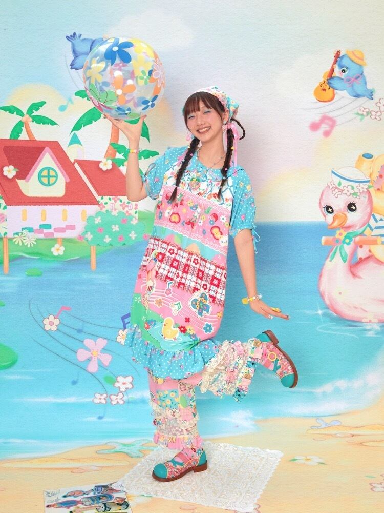 水色 可愛い ガーリー ワンピース 原宿 ブラウス パッチワーク
