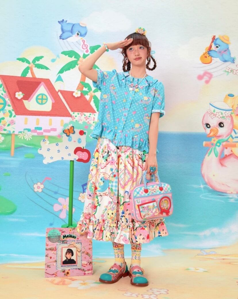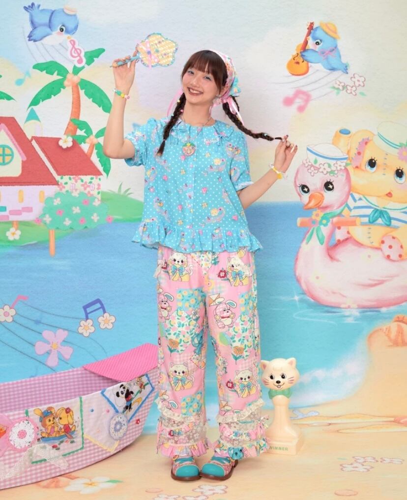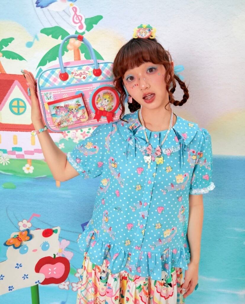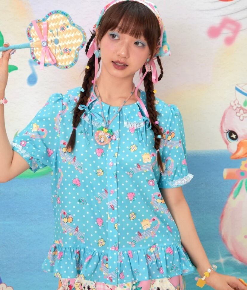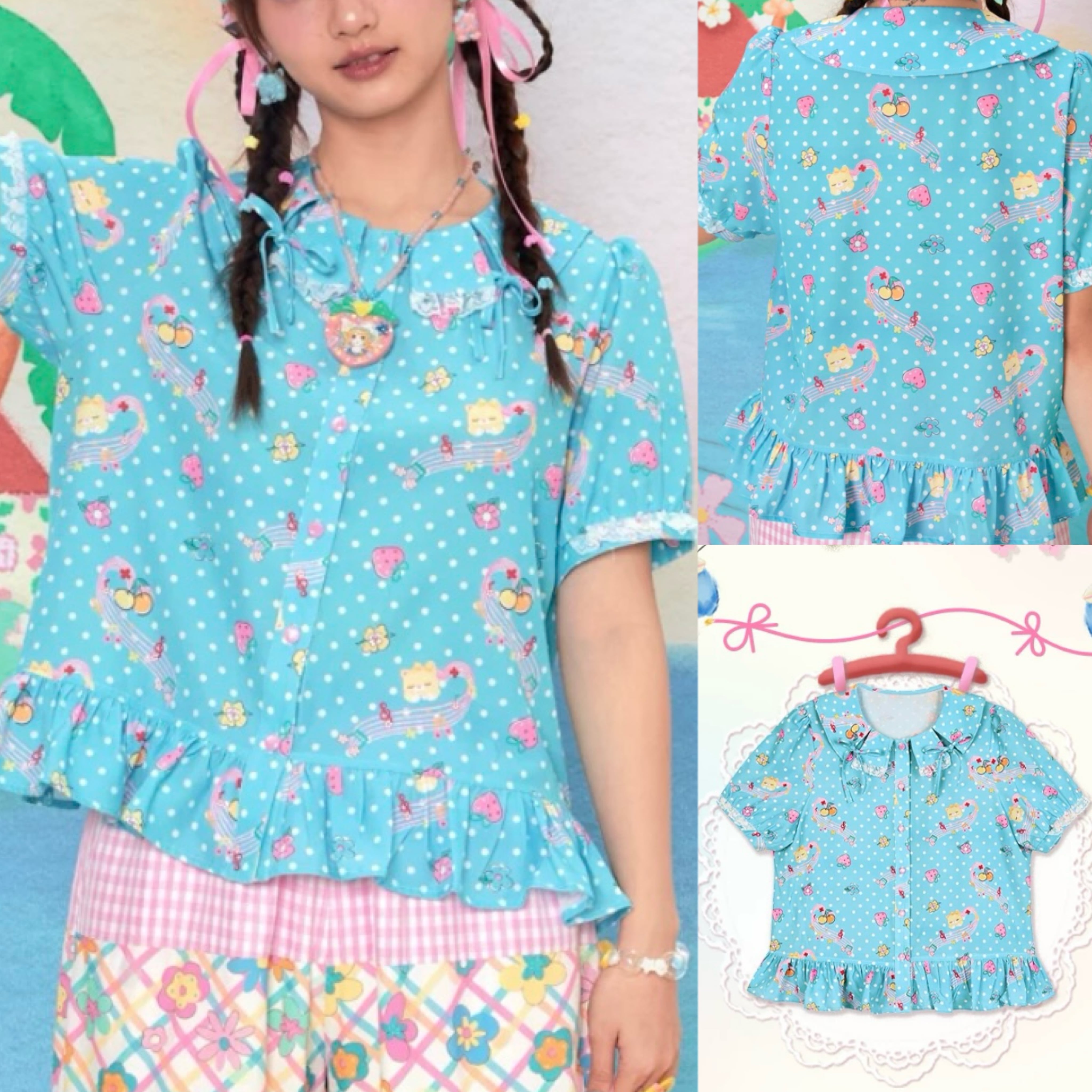 水色 水玉 ドット 丸襟 ブラウス シャツ 原宿 ガーリー