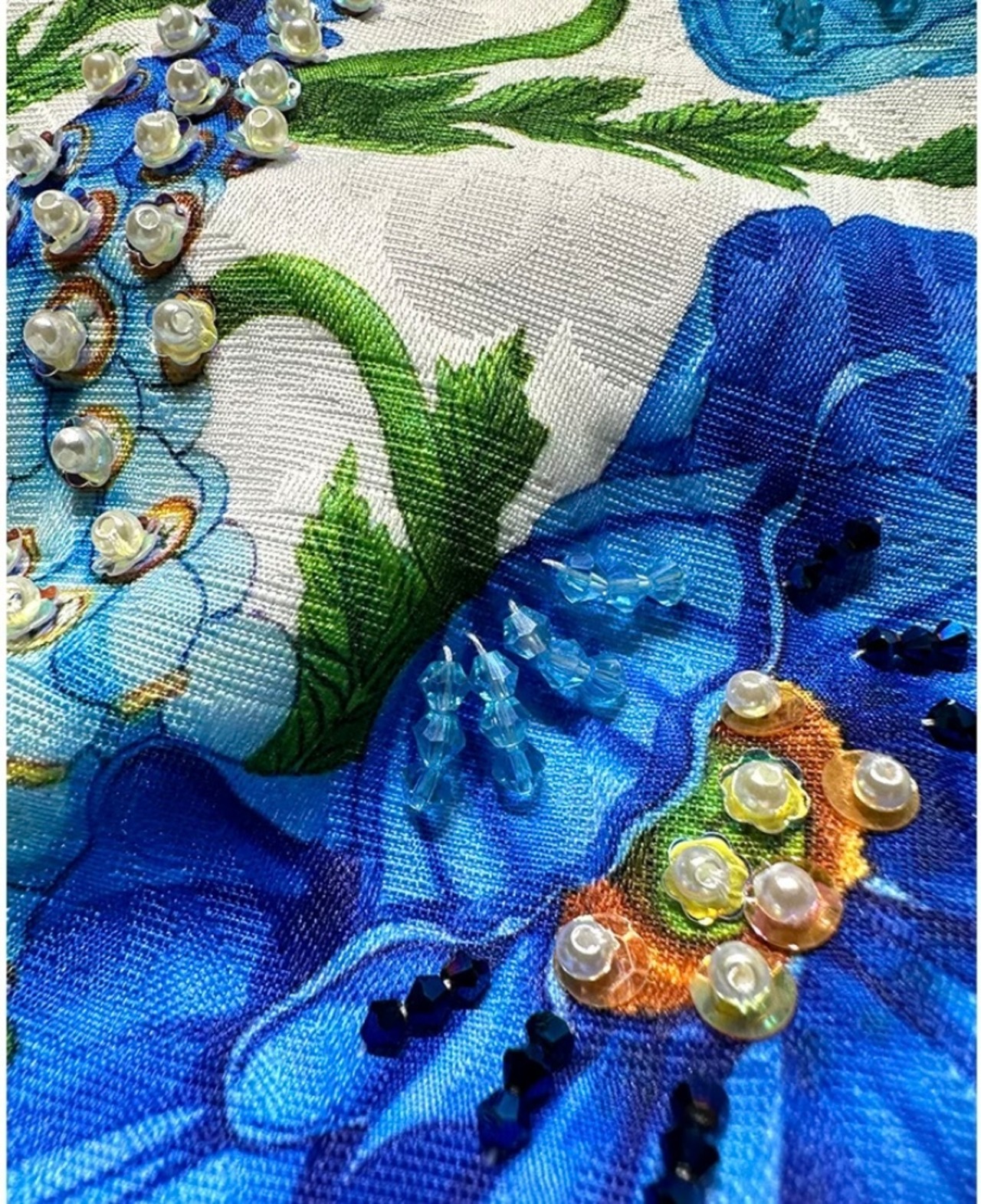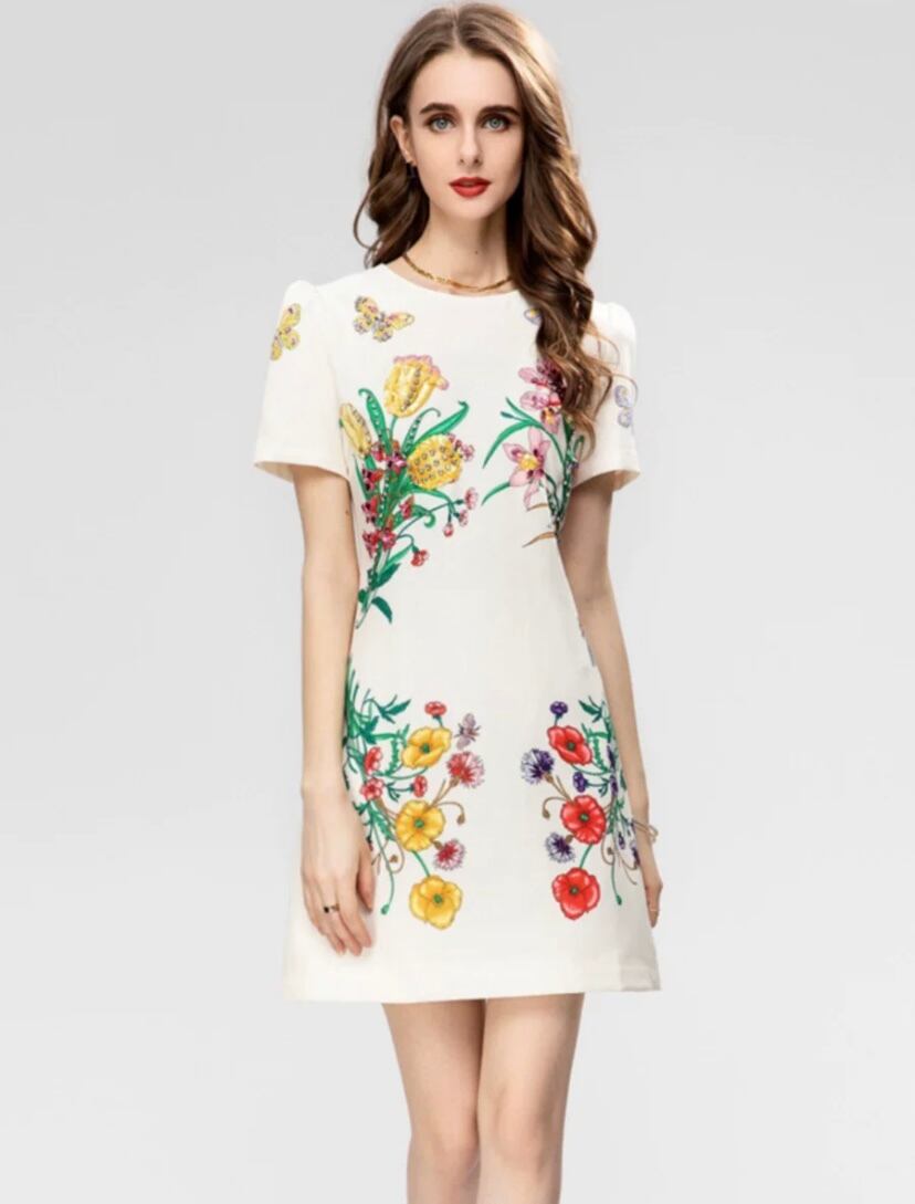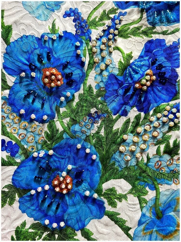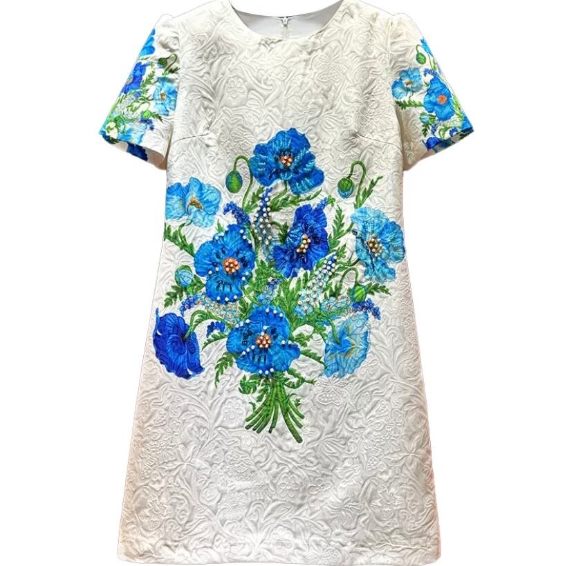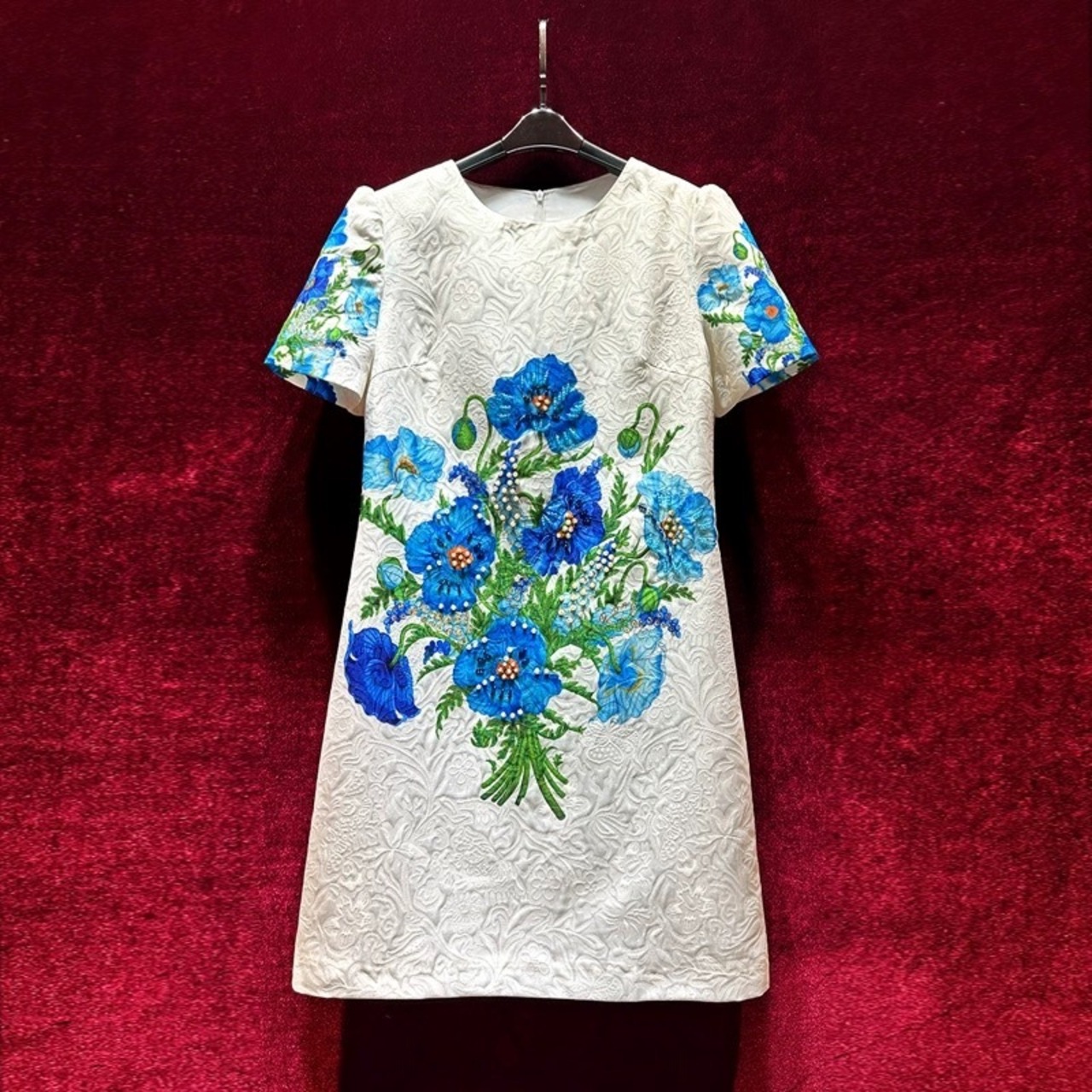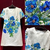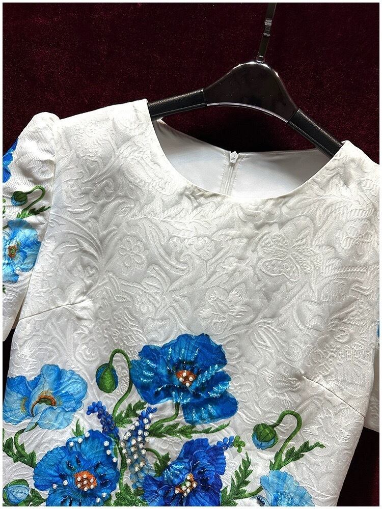 白 フラワー 花柄 ブルー 青 ワンピース デコレーション