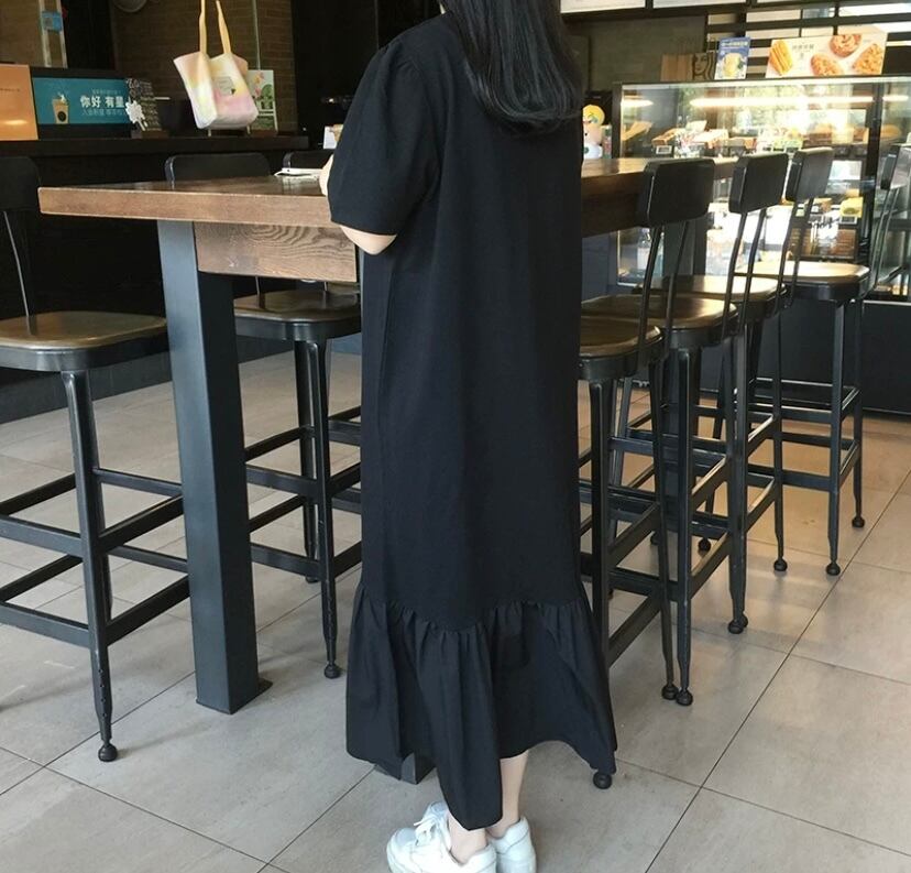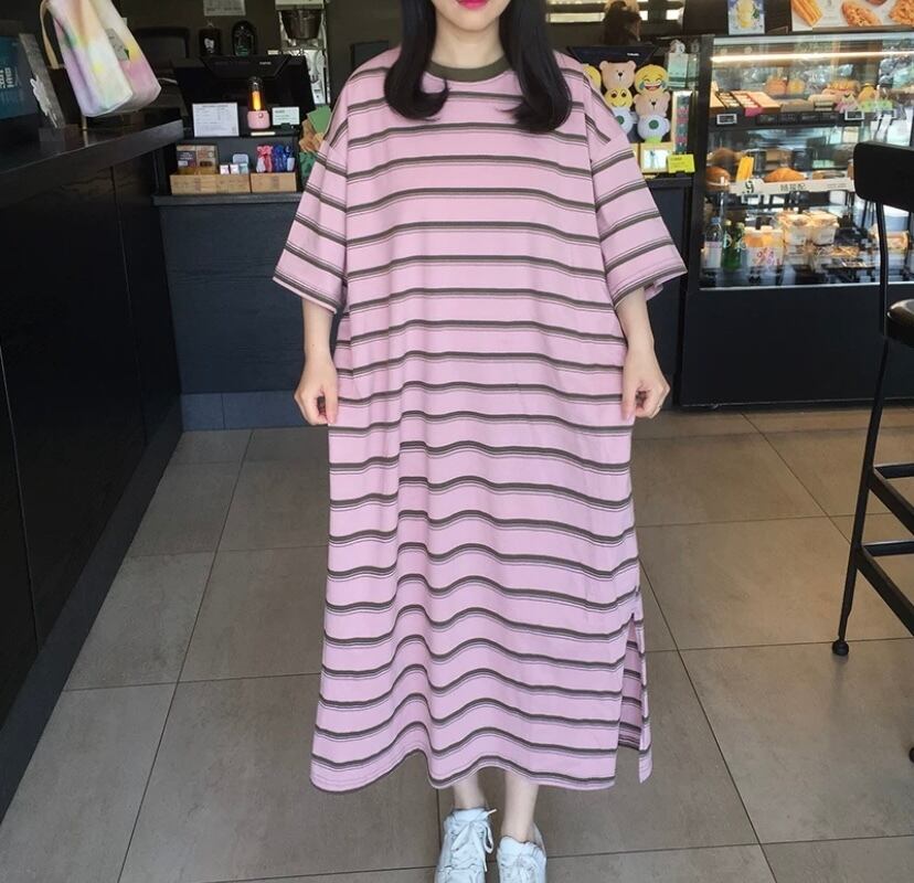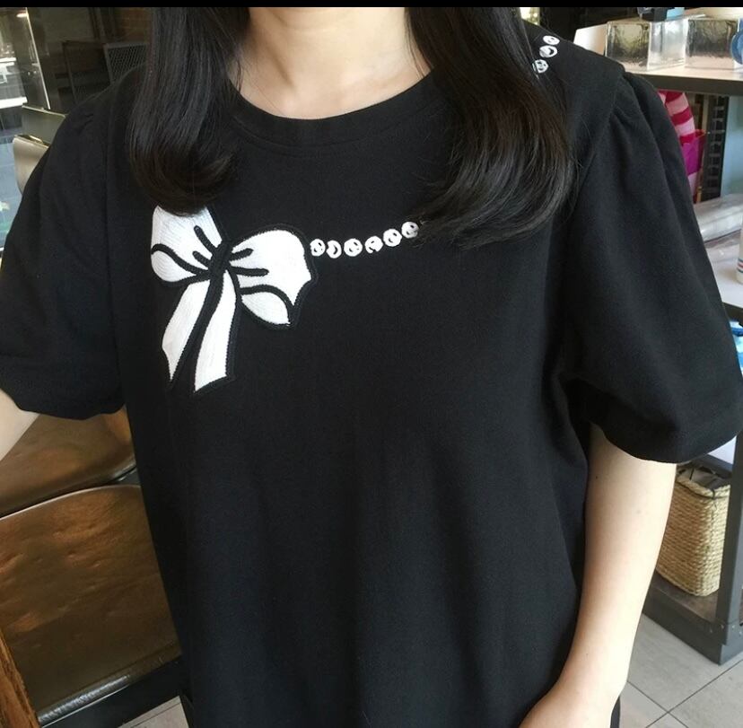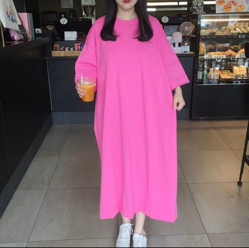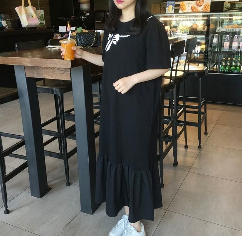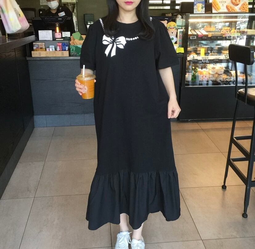 ワンピース カジュアル 黒 リボン ピンク ゆったり カジュアル