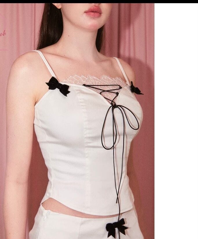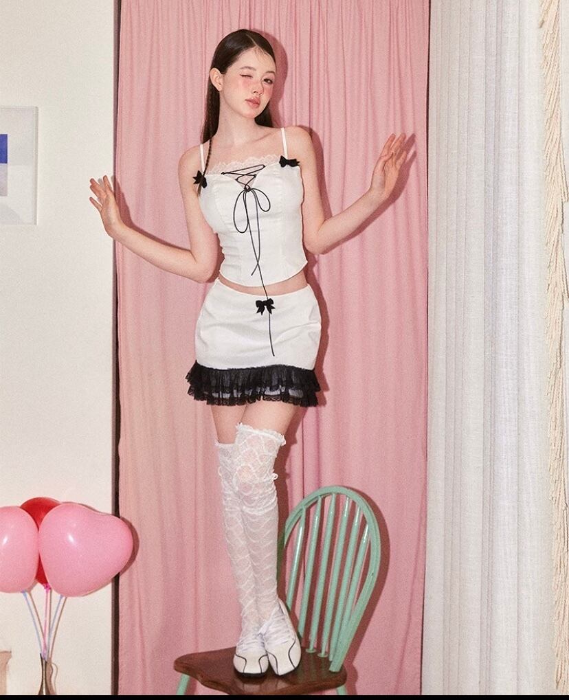 【セットアップ別売り】白 ミニスカート リボン ワンピース キャミソール