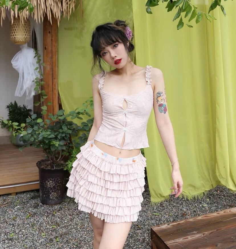 花柄 タイト 緑 ミニスカート ベージュ アジアン エスニック ボトムス