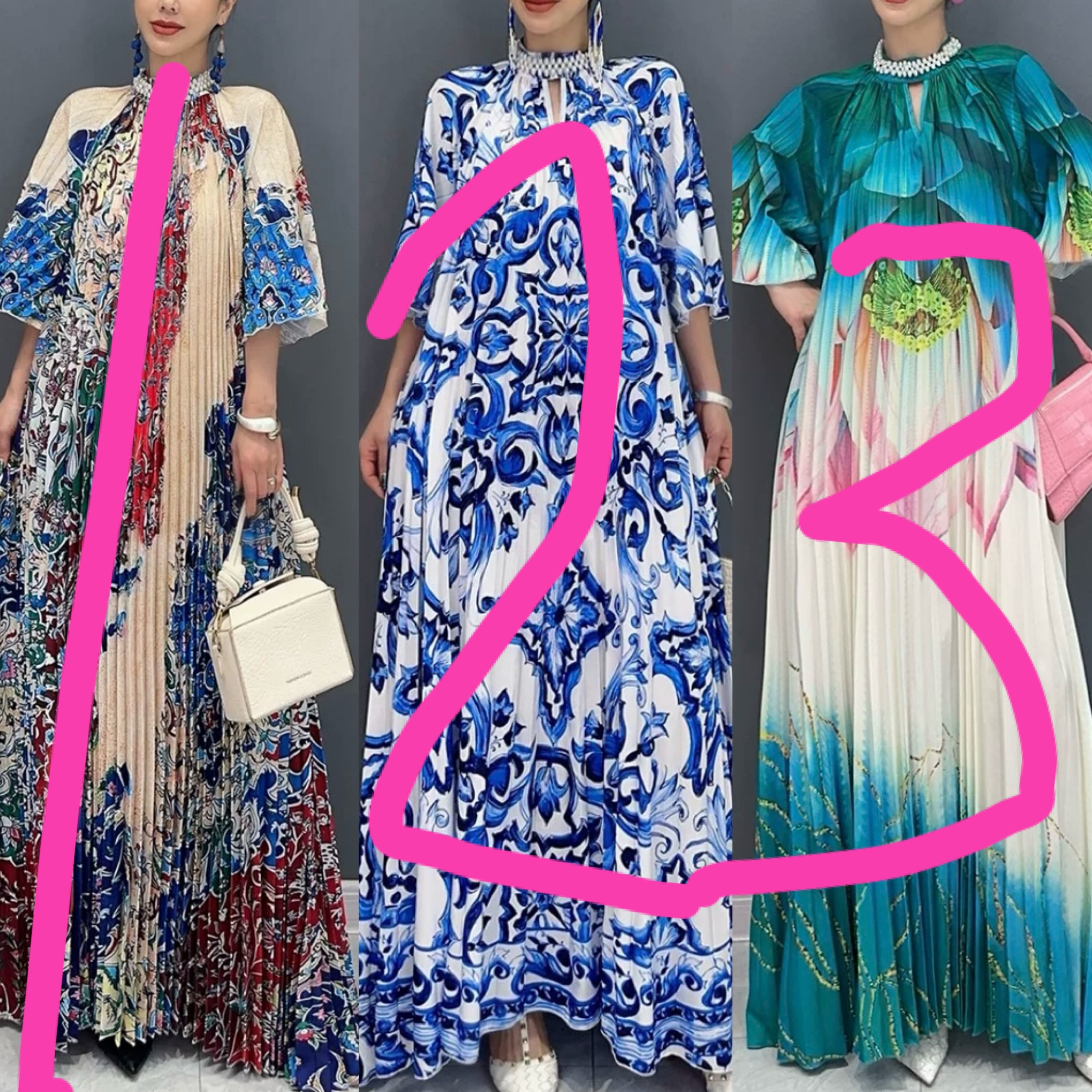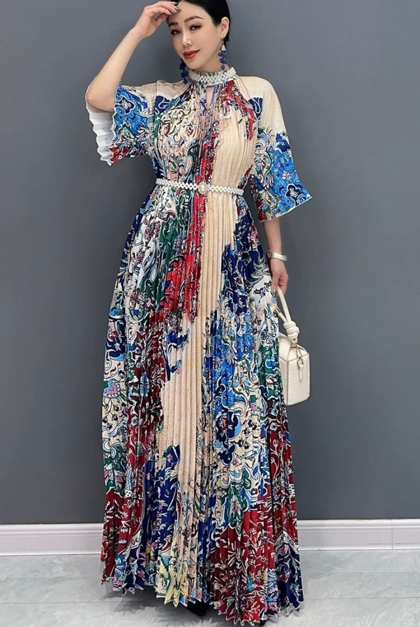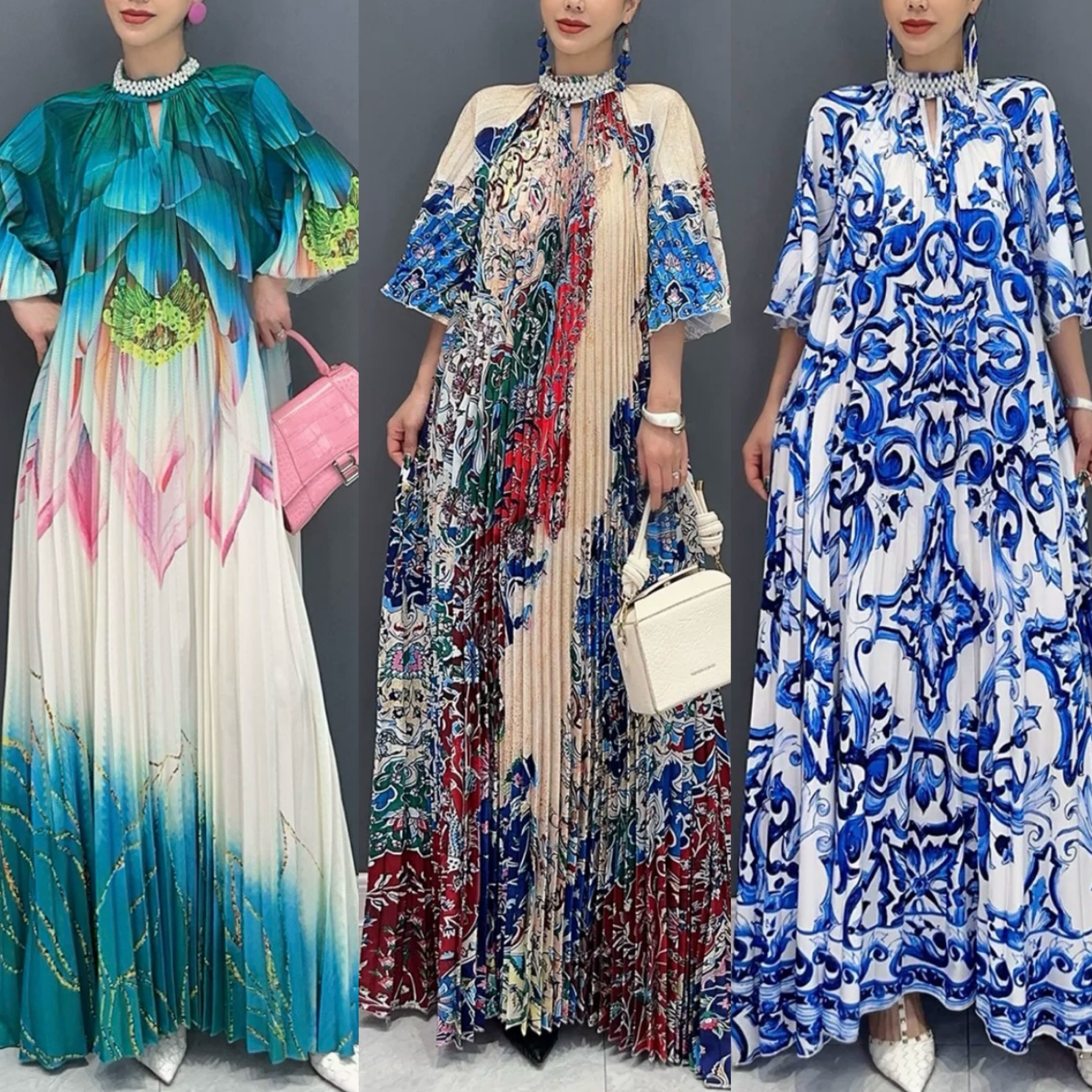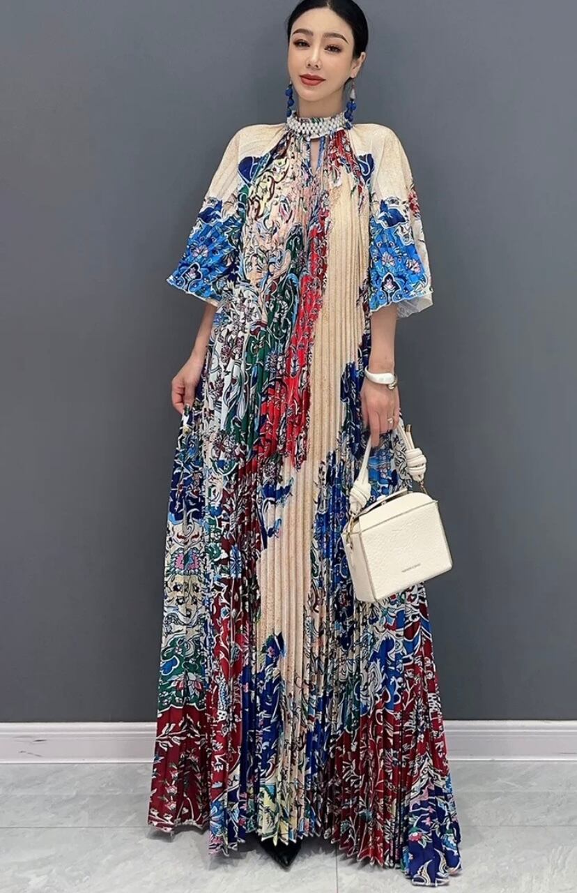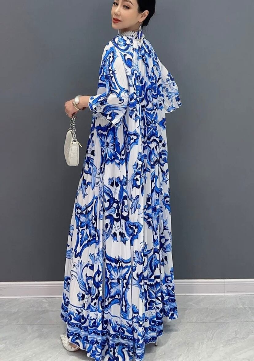 ブルー マーブル グラデーション 緑 マキシ ワンピース