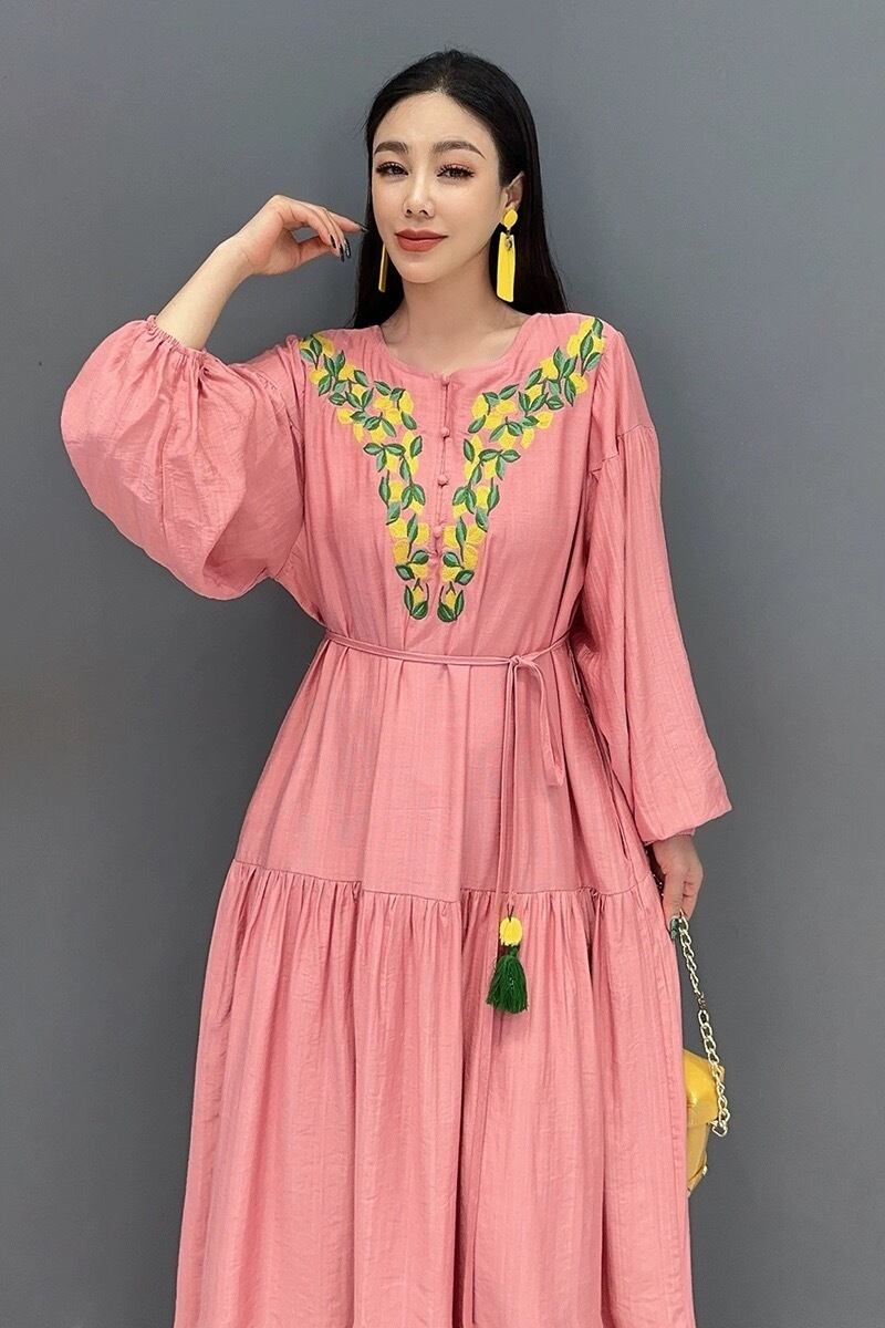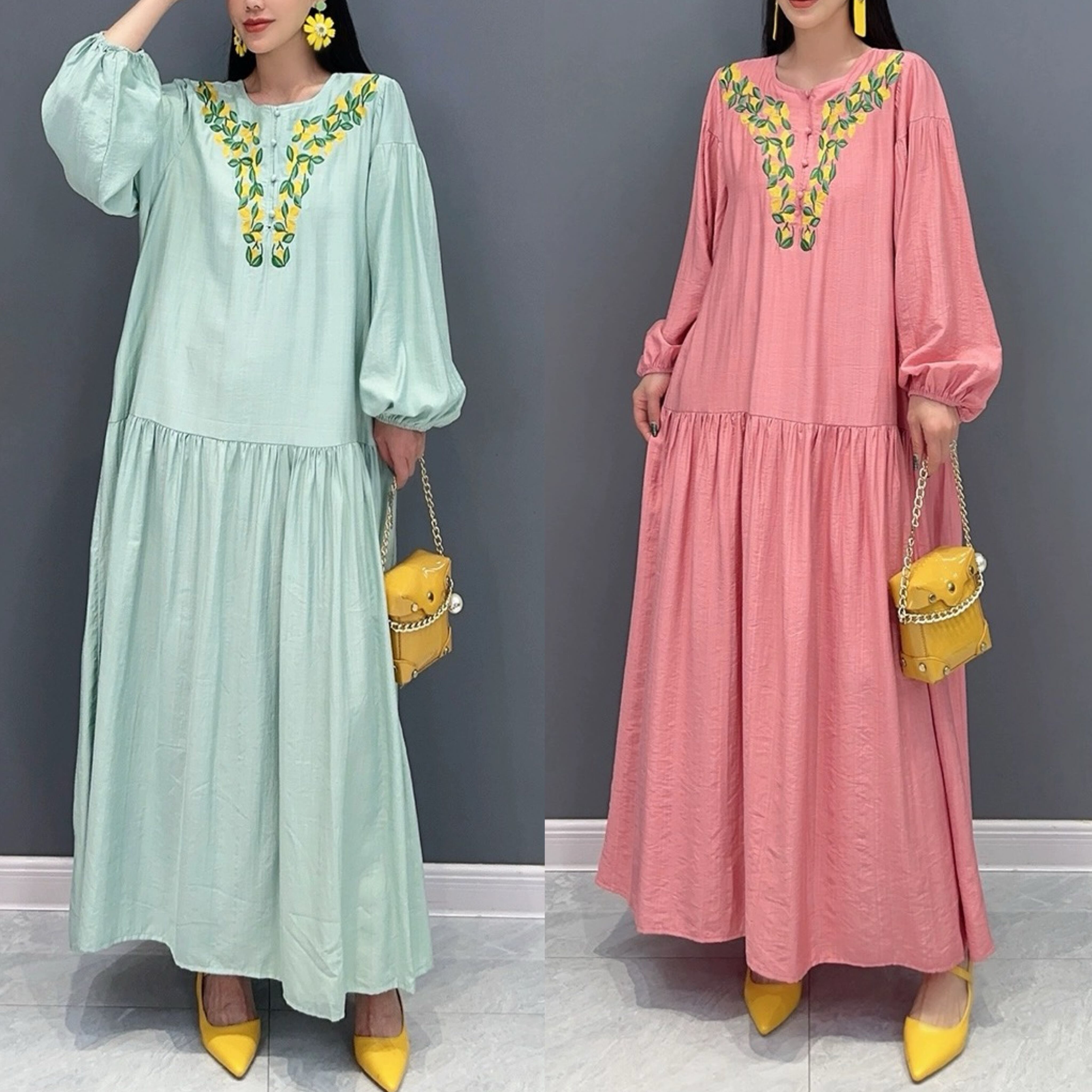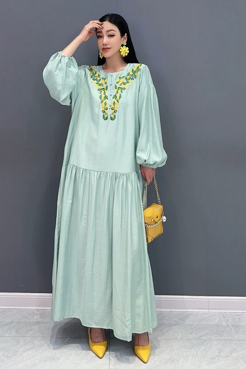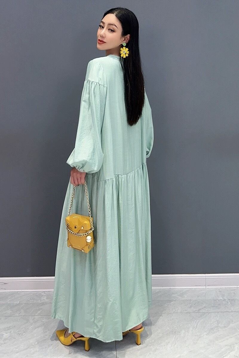 緑 ピンク ゆったり カジュアル ワンピース XL