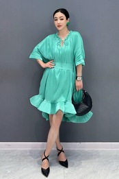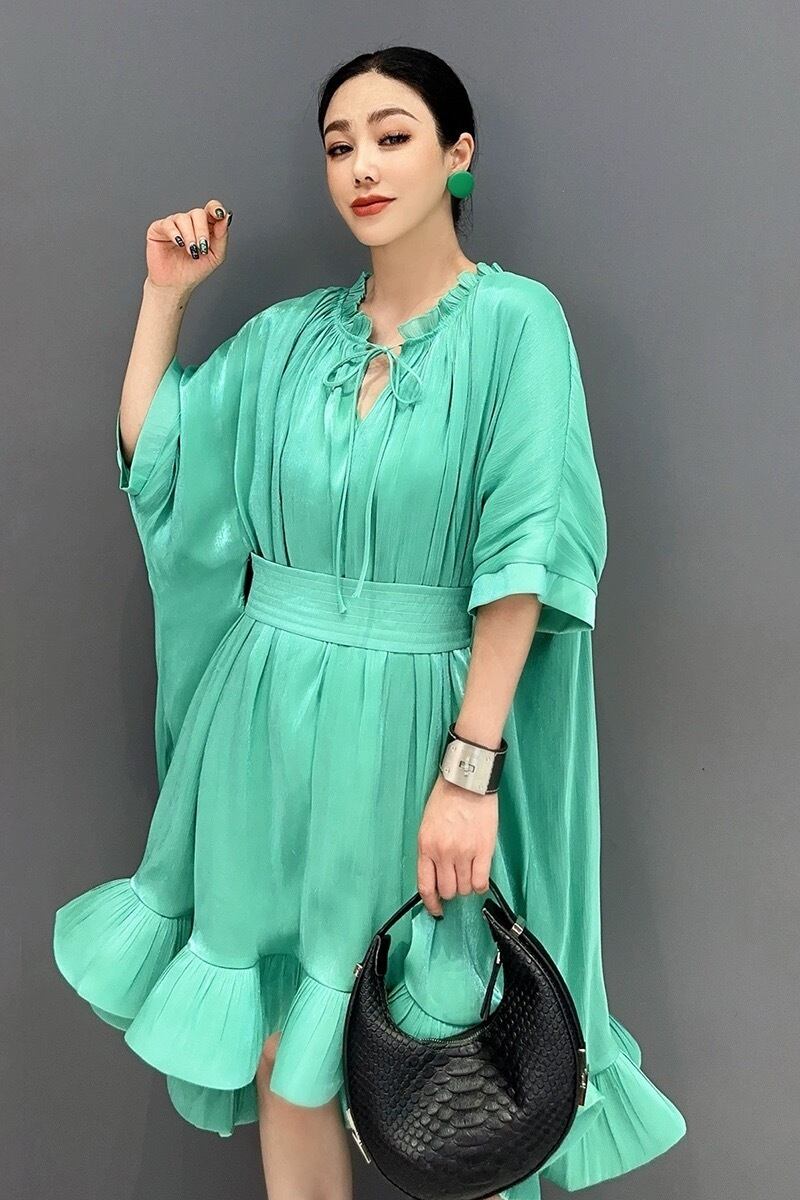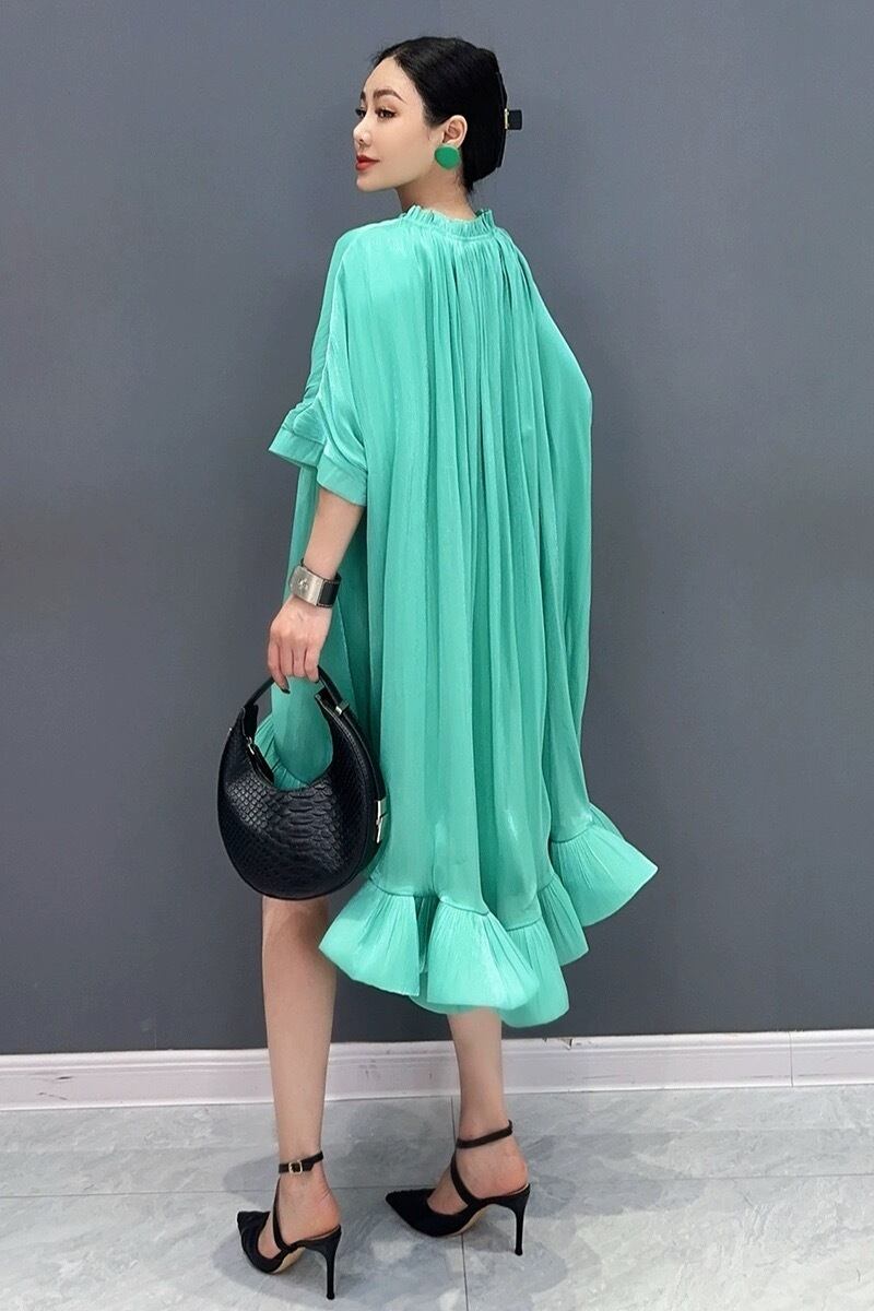 黒 緑 ワンピース ガーリー ゆったり ブラウス