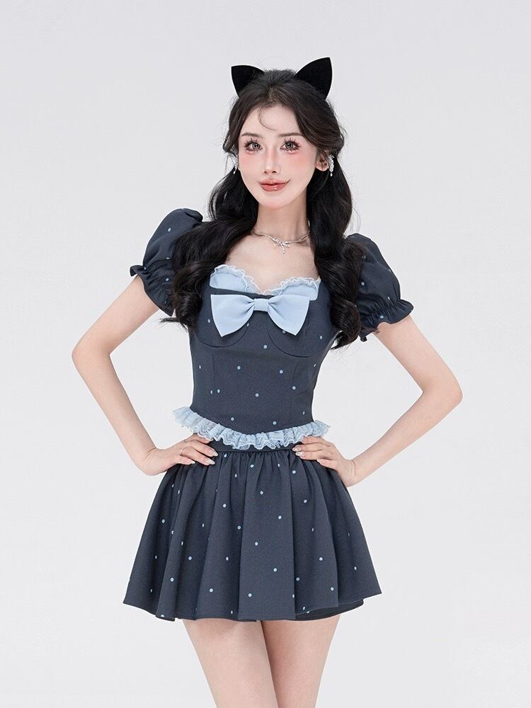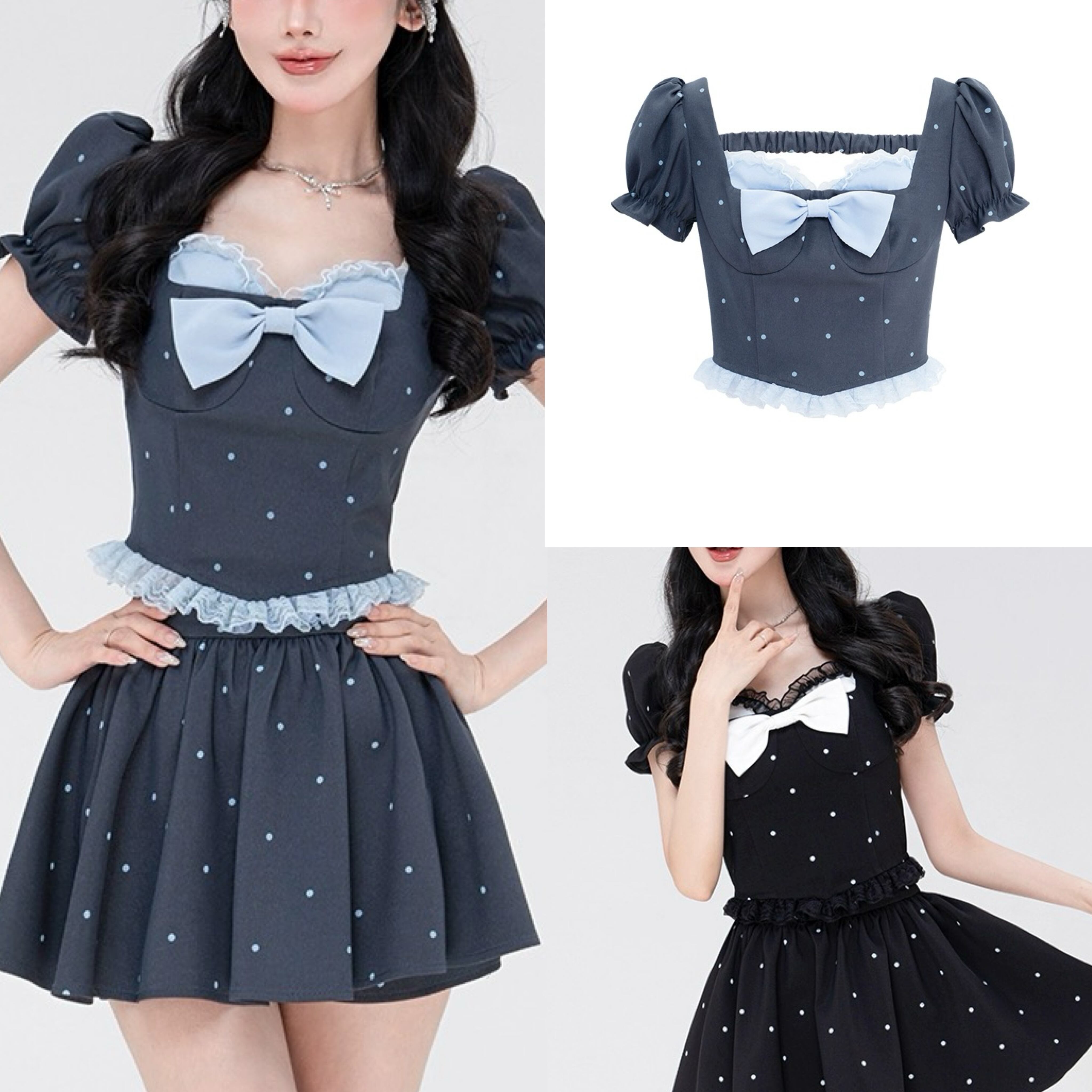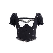【ブラウス】グレー 黒 お嬢様 ガーリー トップス