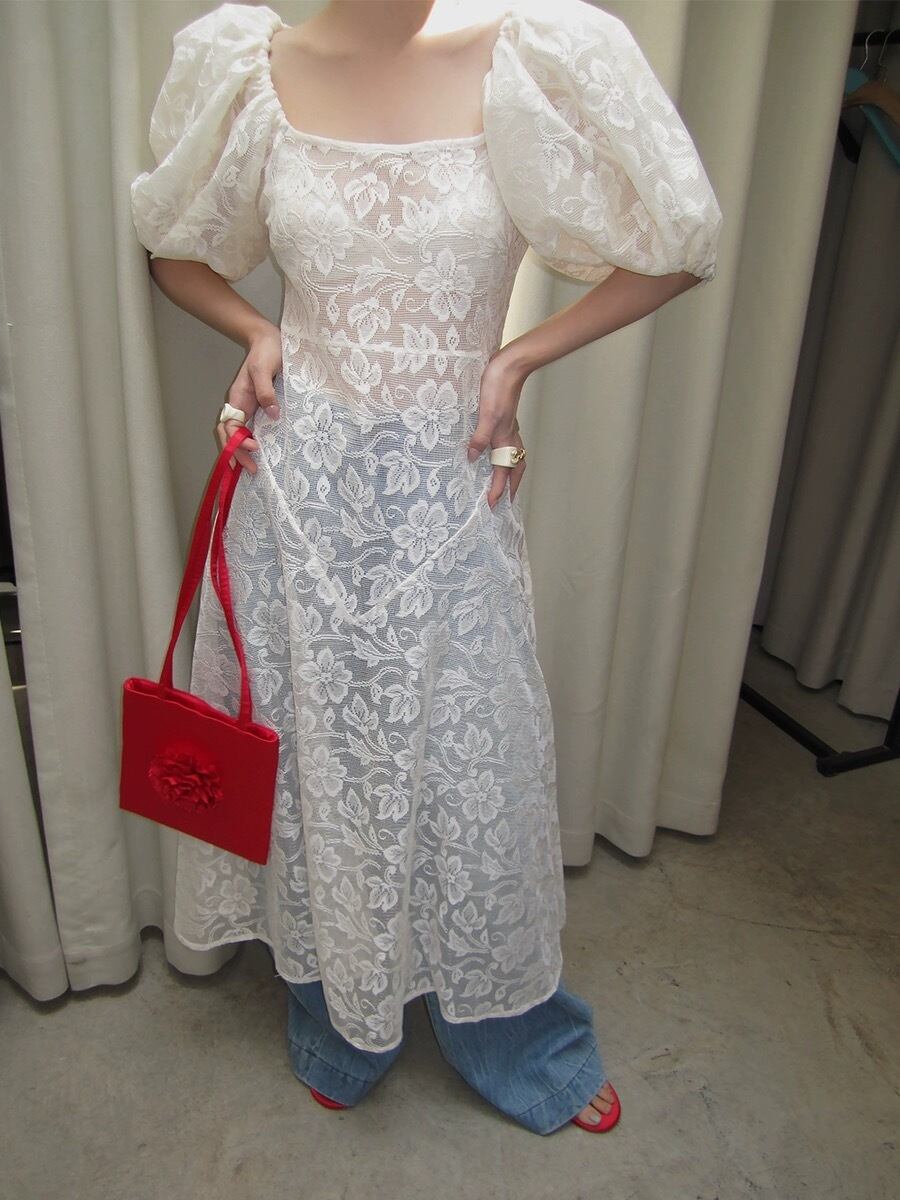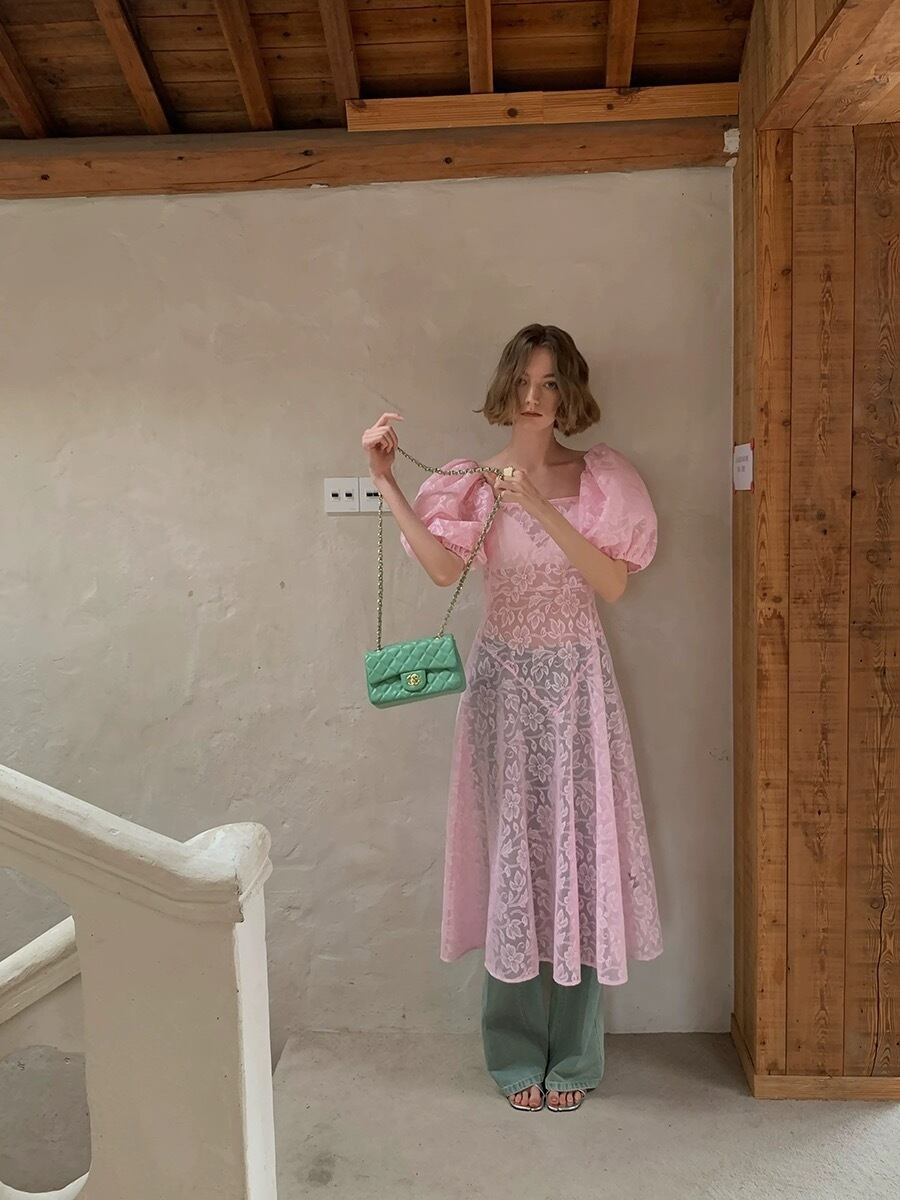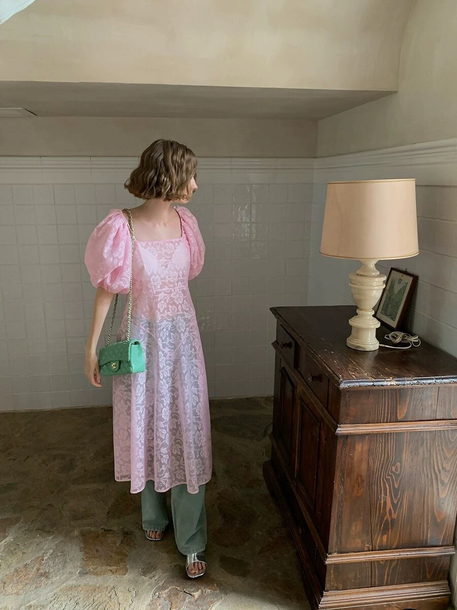 レース シースルー ピンク 白 花柄 ワンピース ガーリー ブラウス