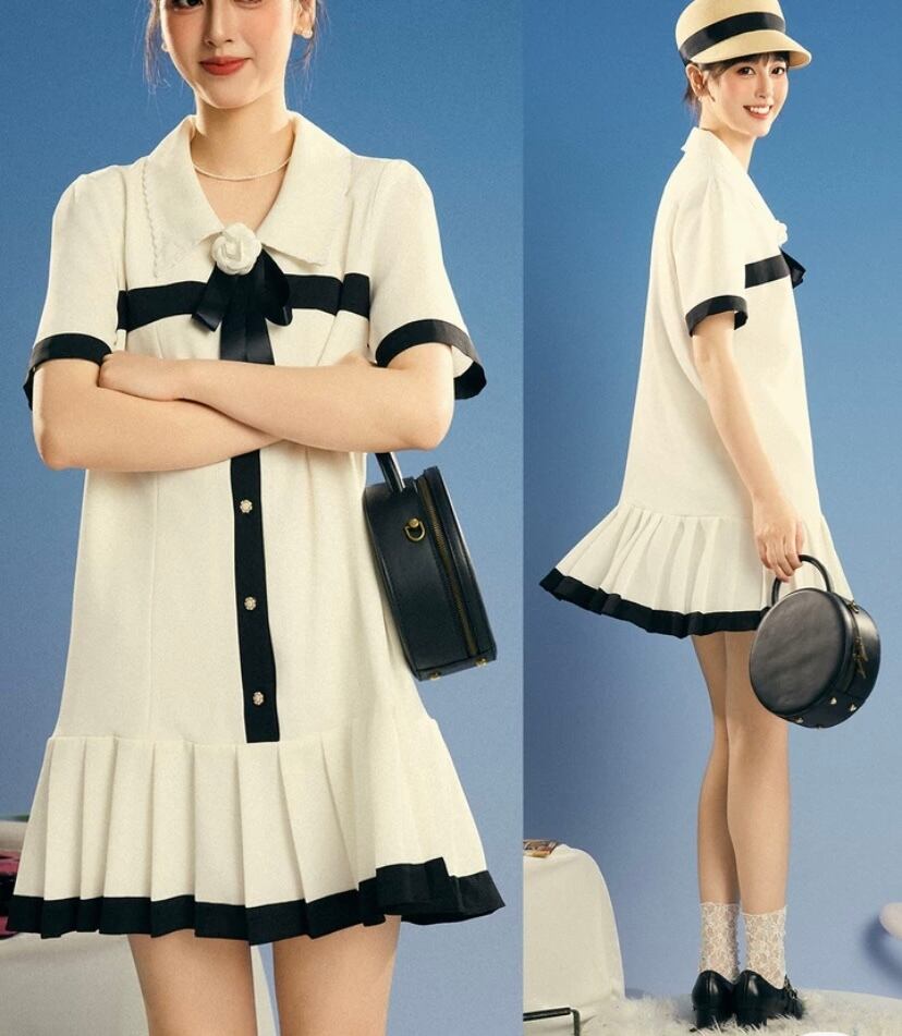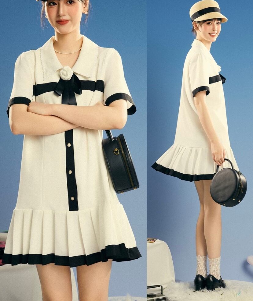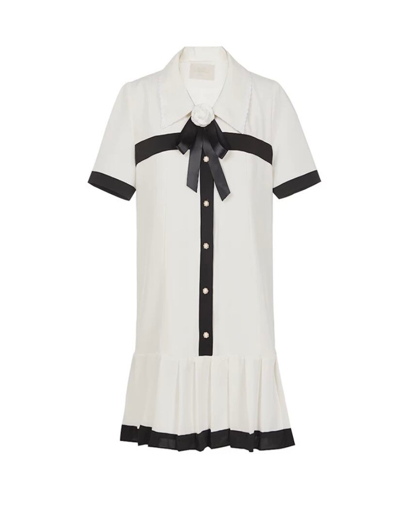 カメリア 白 リボン ワンピース ガーリー 可愛い