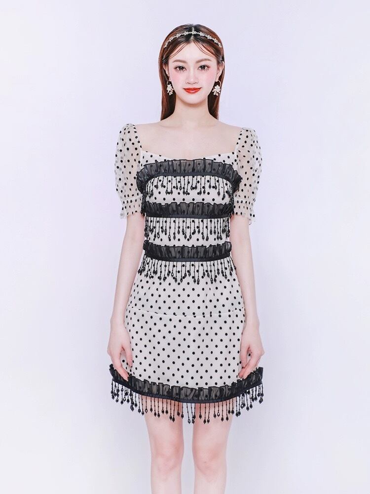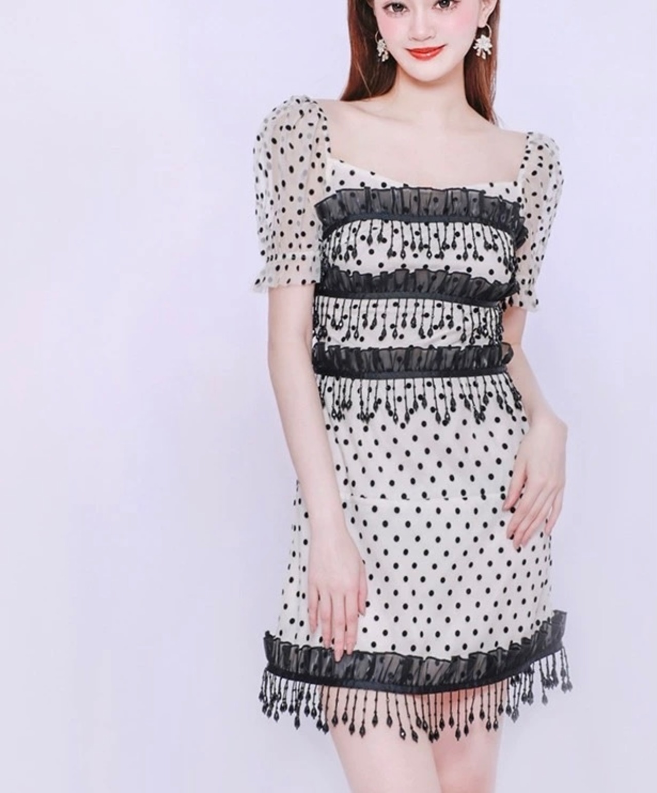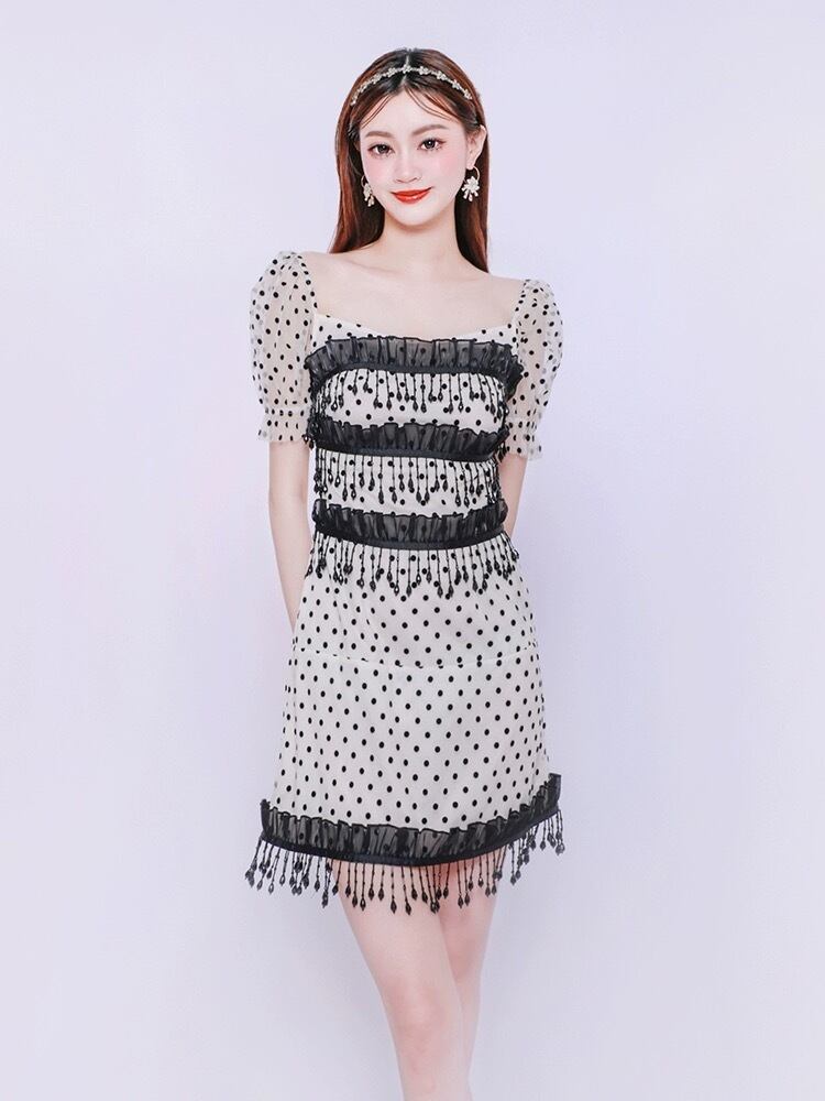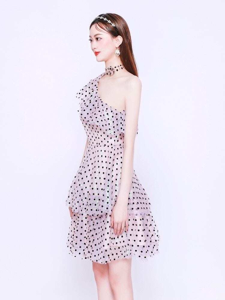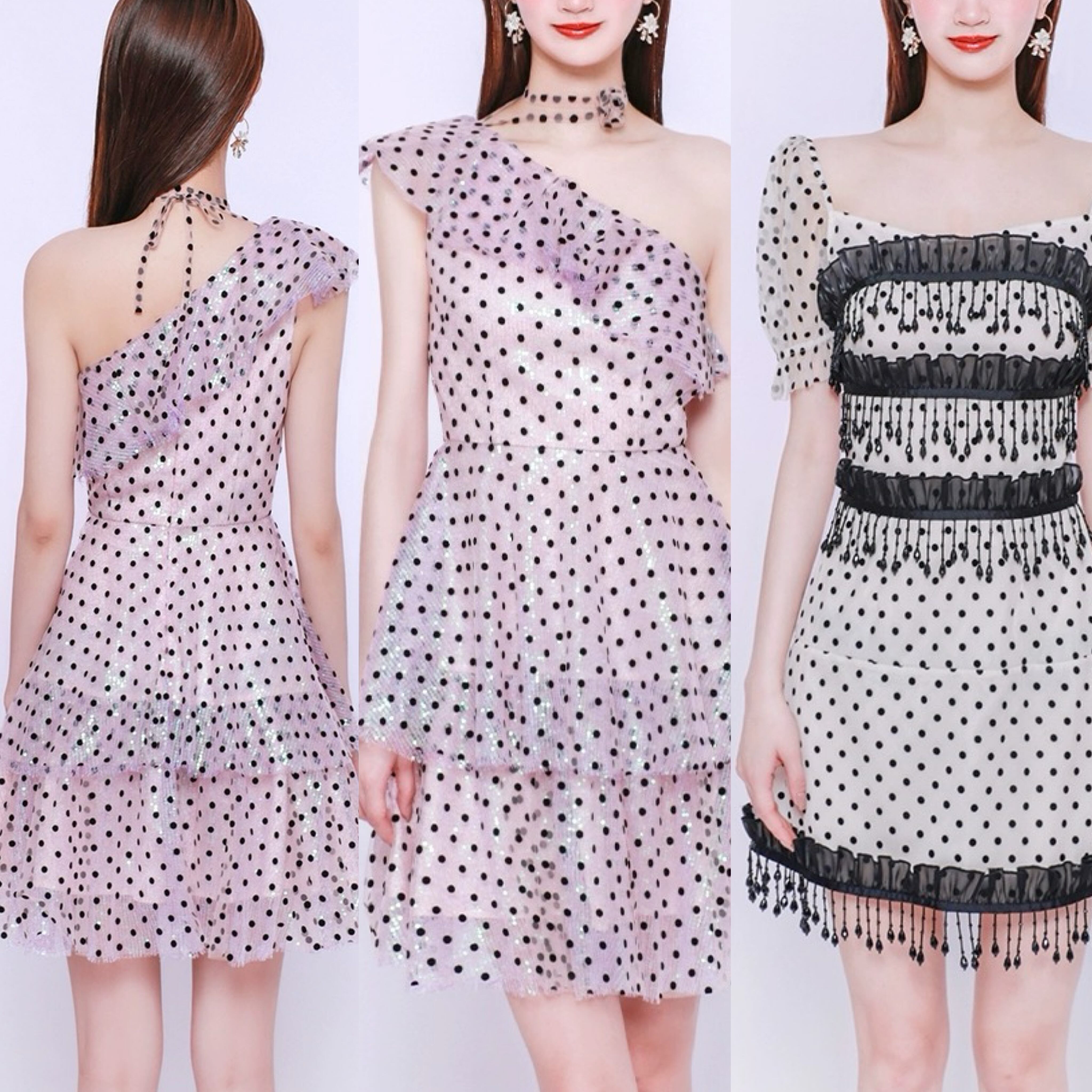水玉 ドット 白 ピンク ガーリー ブラウス ワンピース 可愛い
