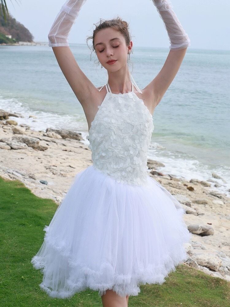 白 ホワイト ドレス ワンピース ガーリー エレガント 発表会