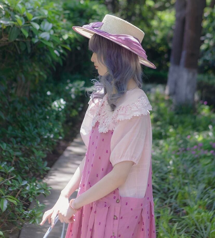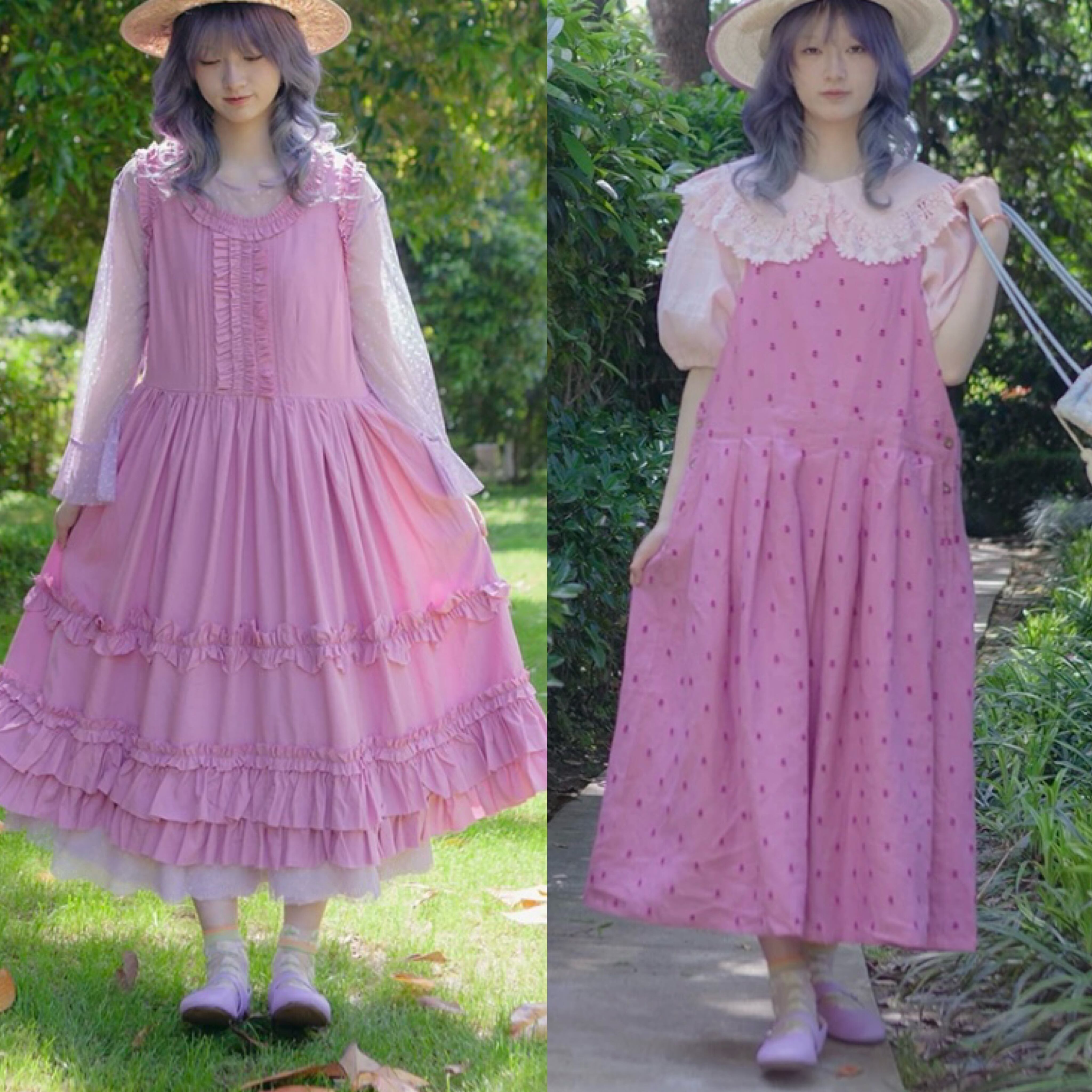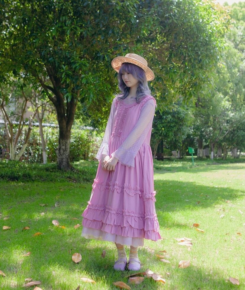 ピンク ガーリー ゆったり 水玉 ドット ワンピース ロリータ 姫 原宿
