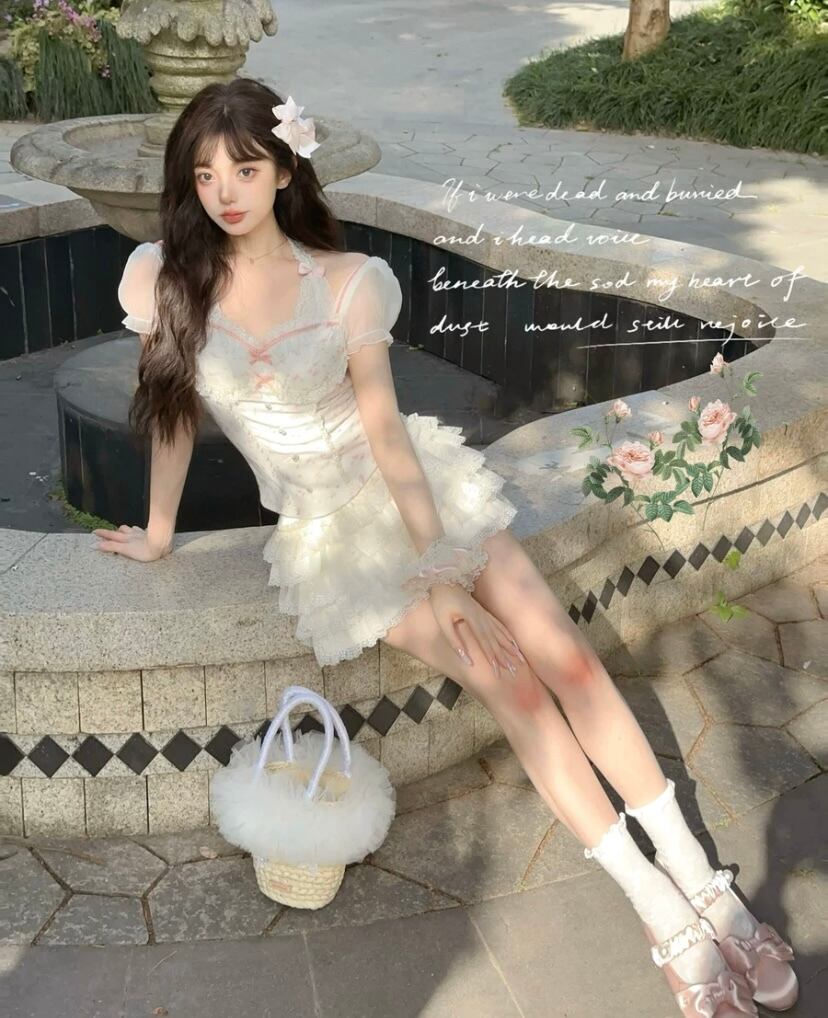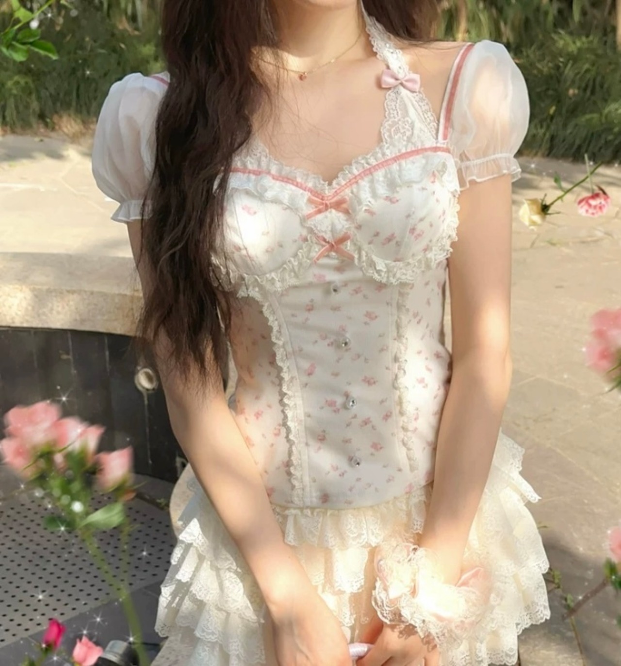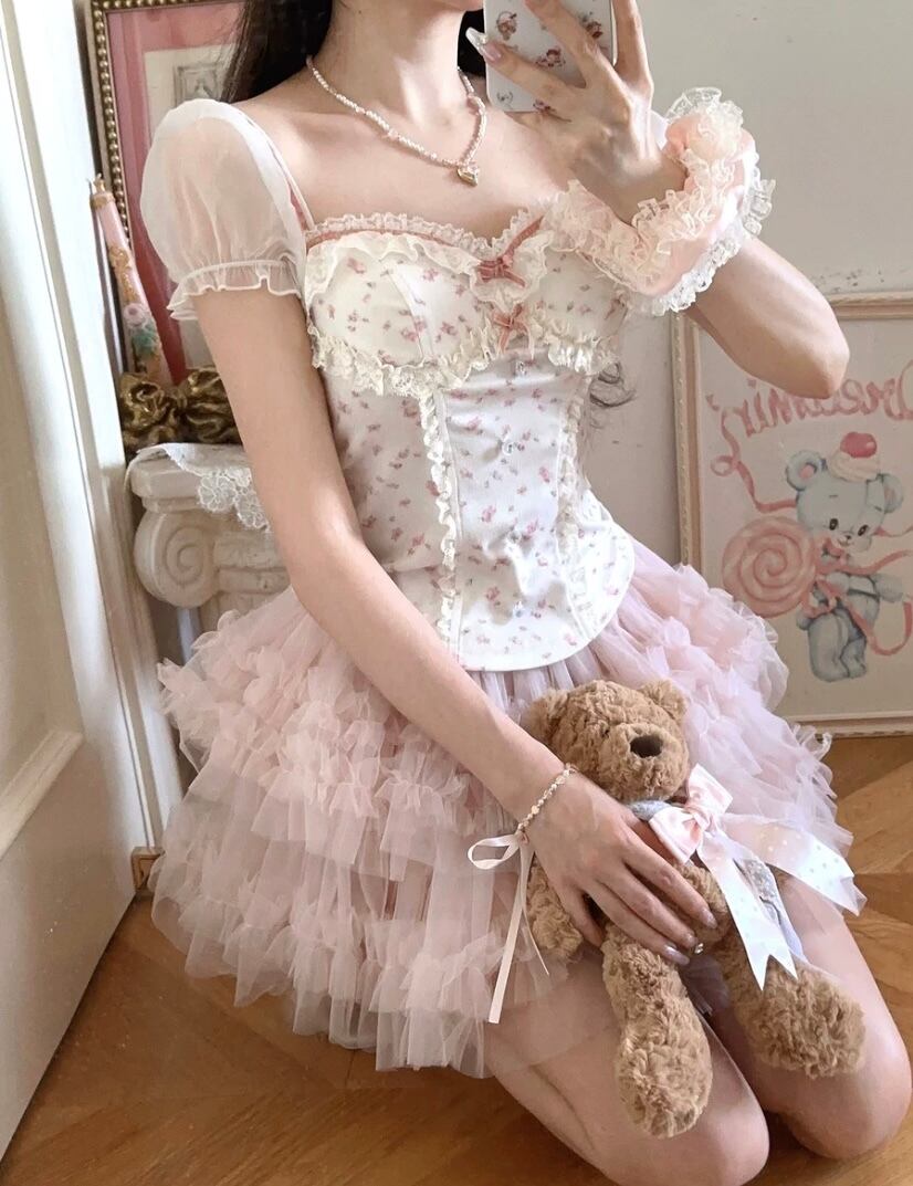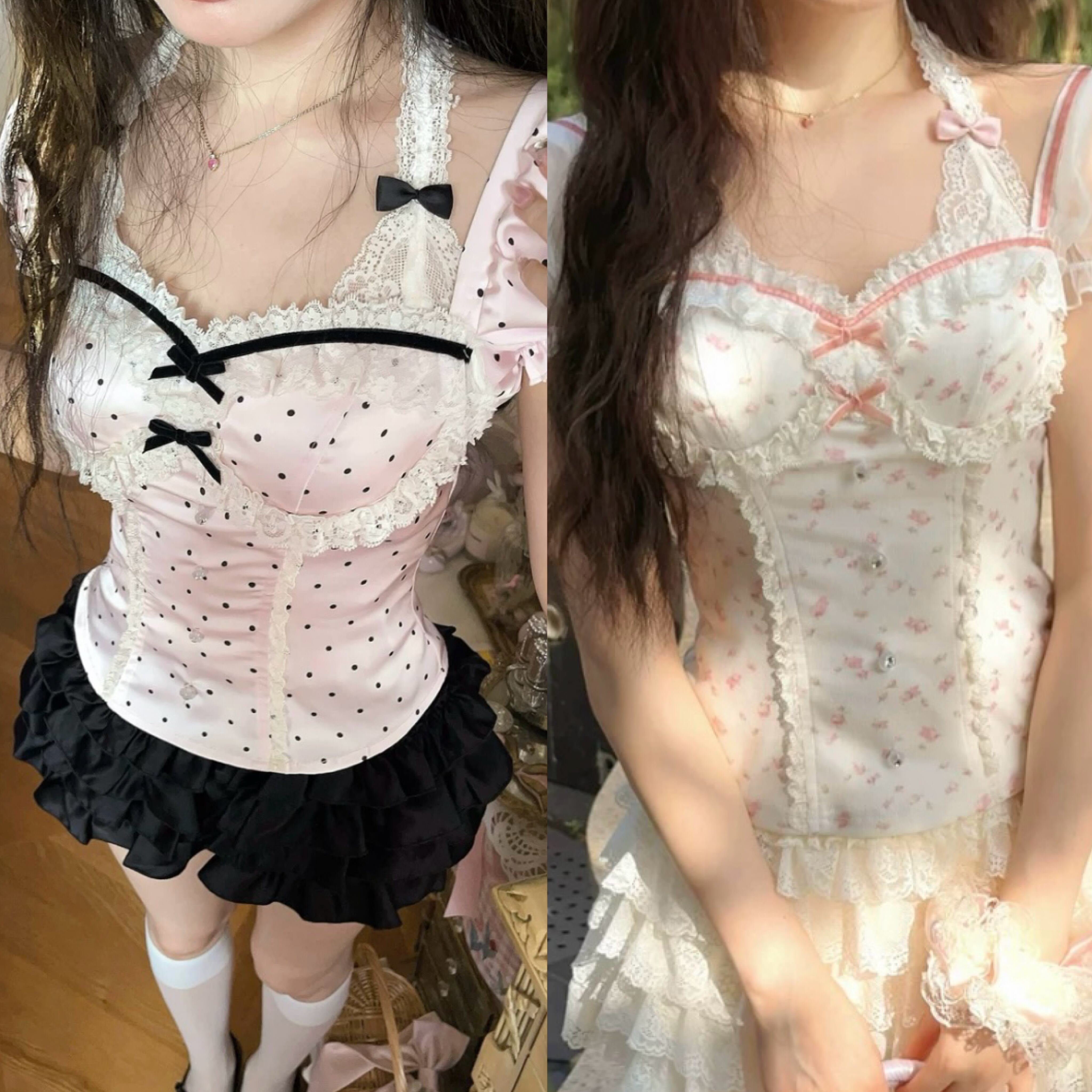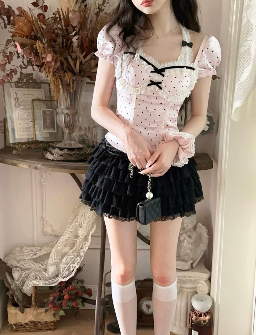 ピンク 黒 水玉 ドット カーディガン リボン ブラウス ガーリー 可愛い