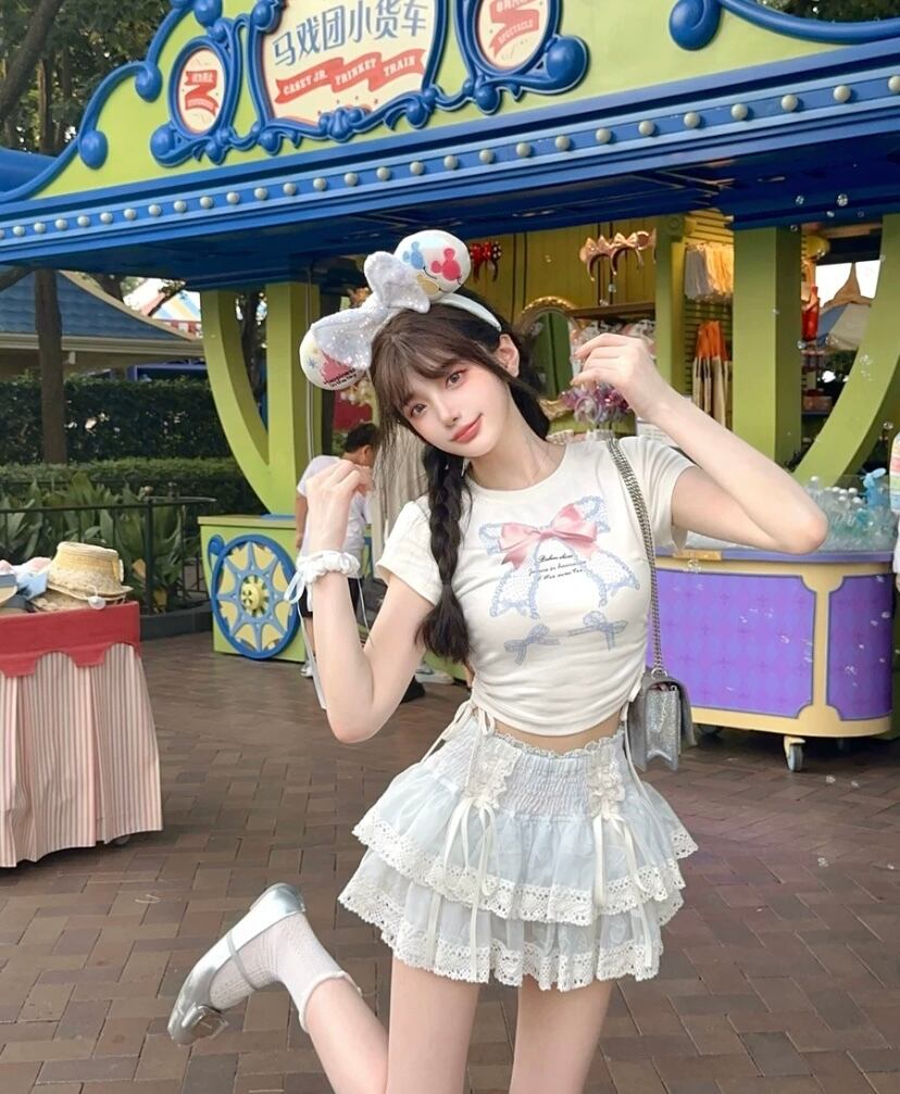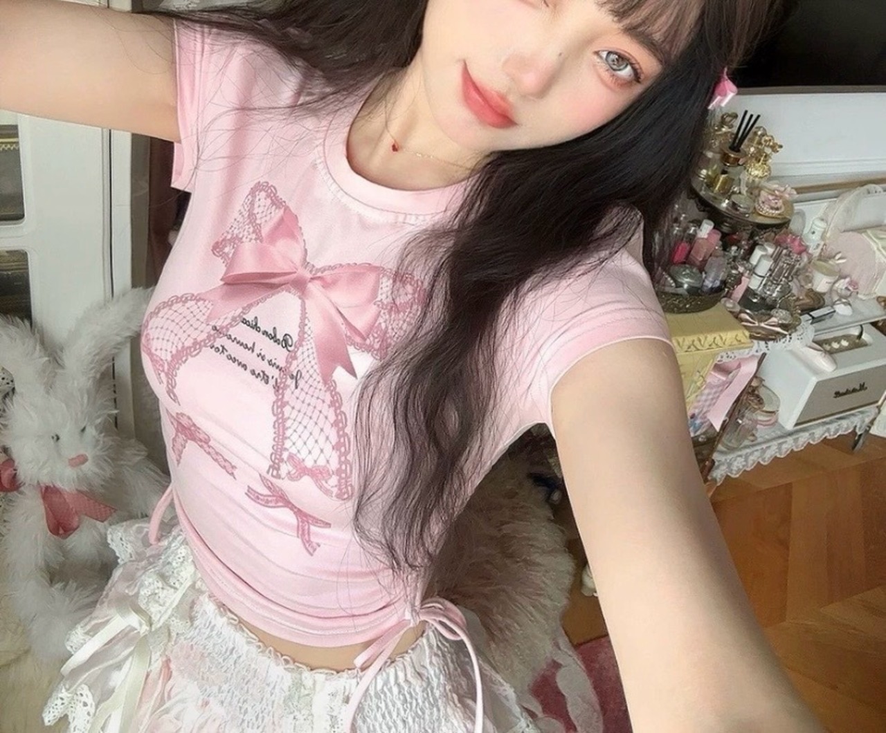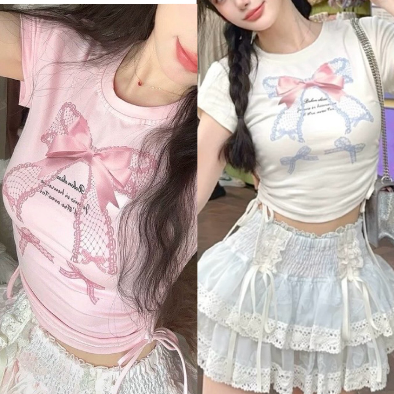 水色 ピンク リボン ブラウス Tシャツ ガーリー 姫 水色