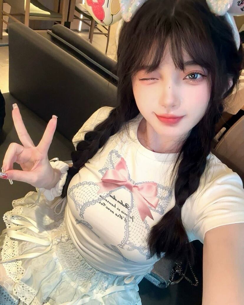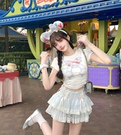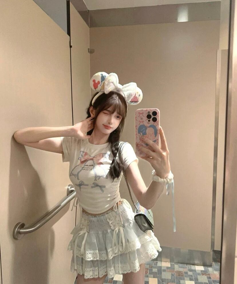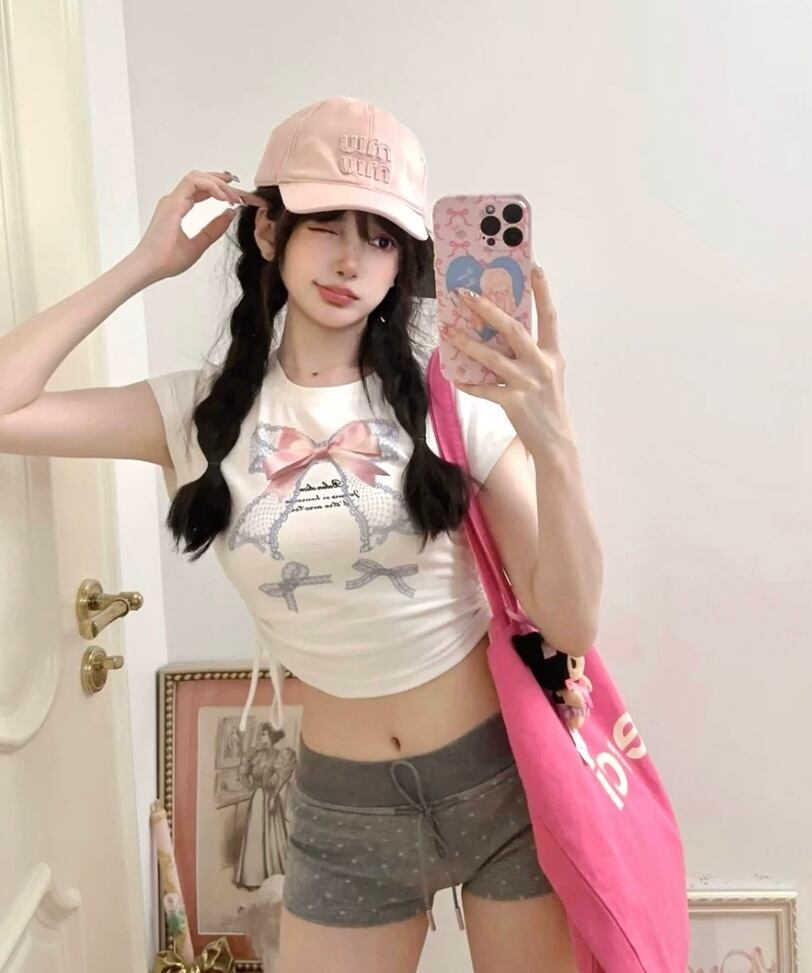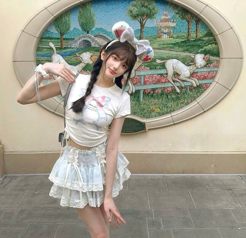 水色 ピンク リボン ブラウス Tシャツ ガーリー 姫 水色