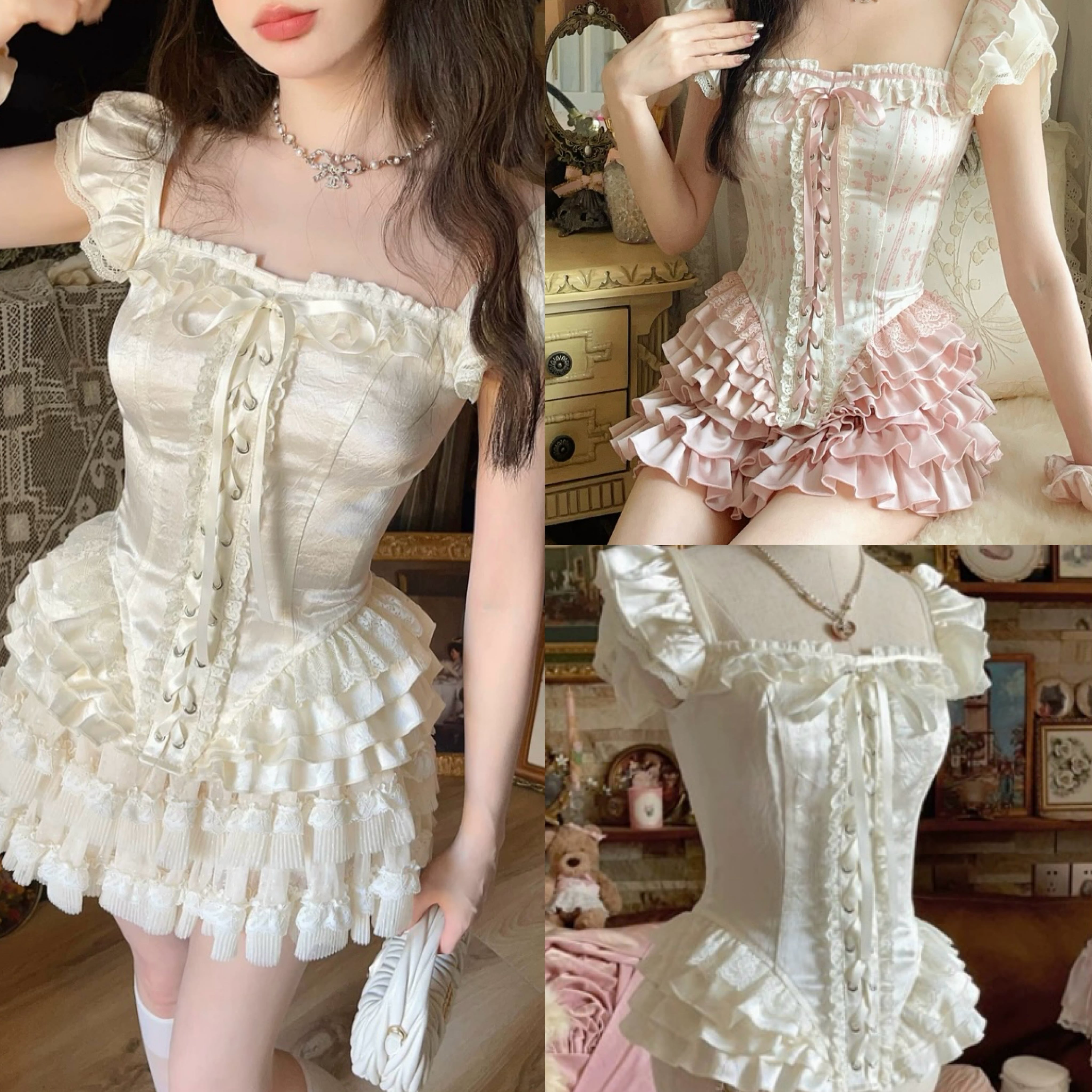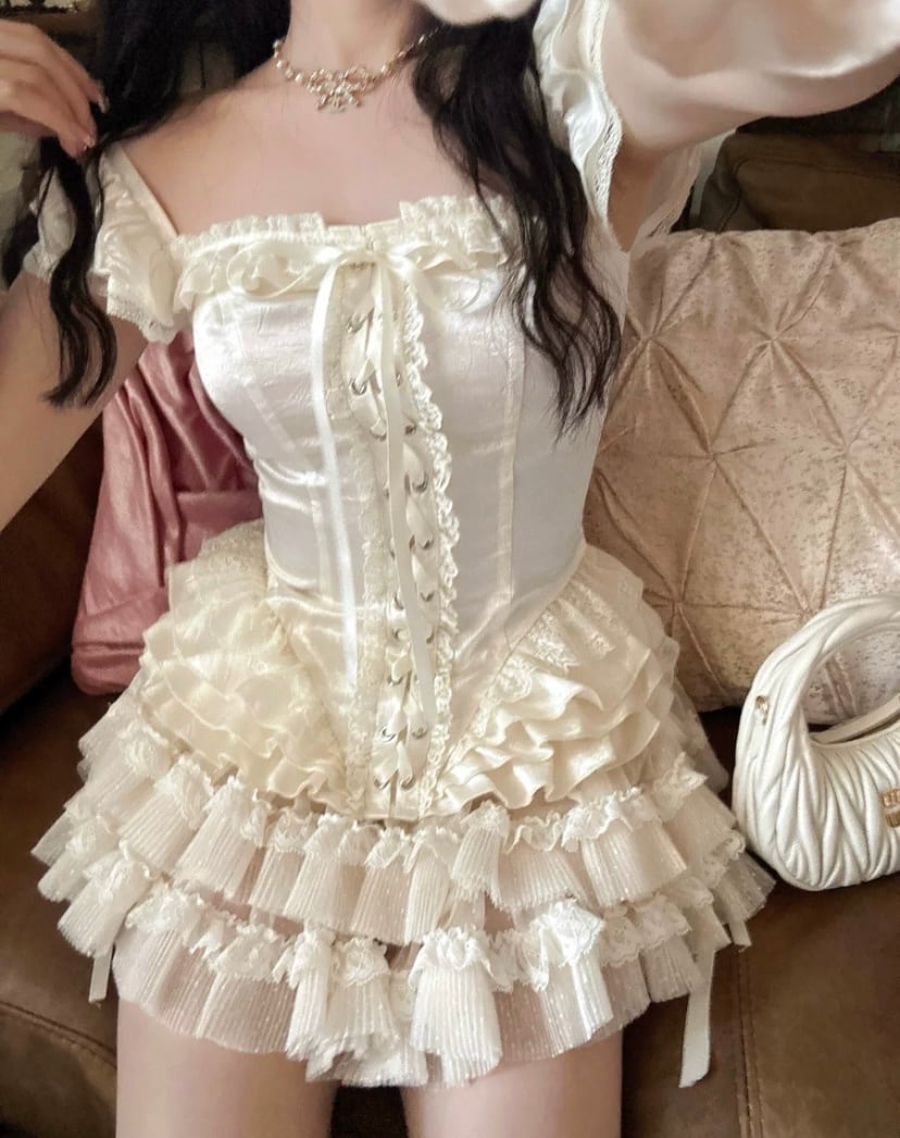 キャミソール コルセット ピンク ロリータ 白 リボン トップス 姫