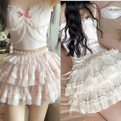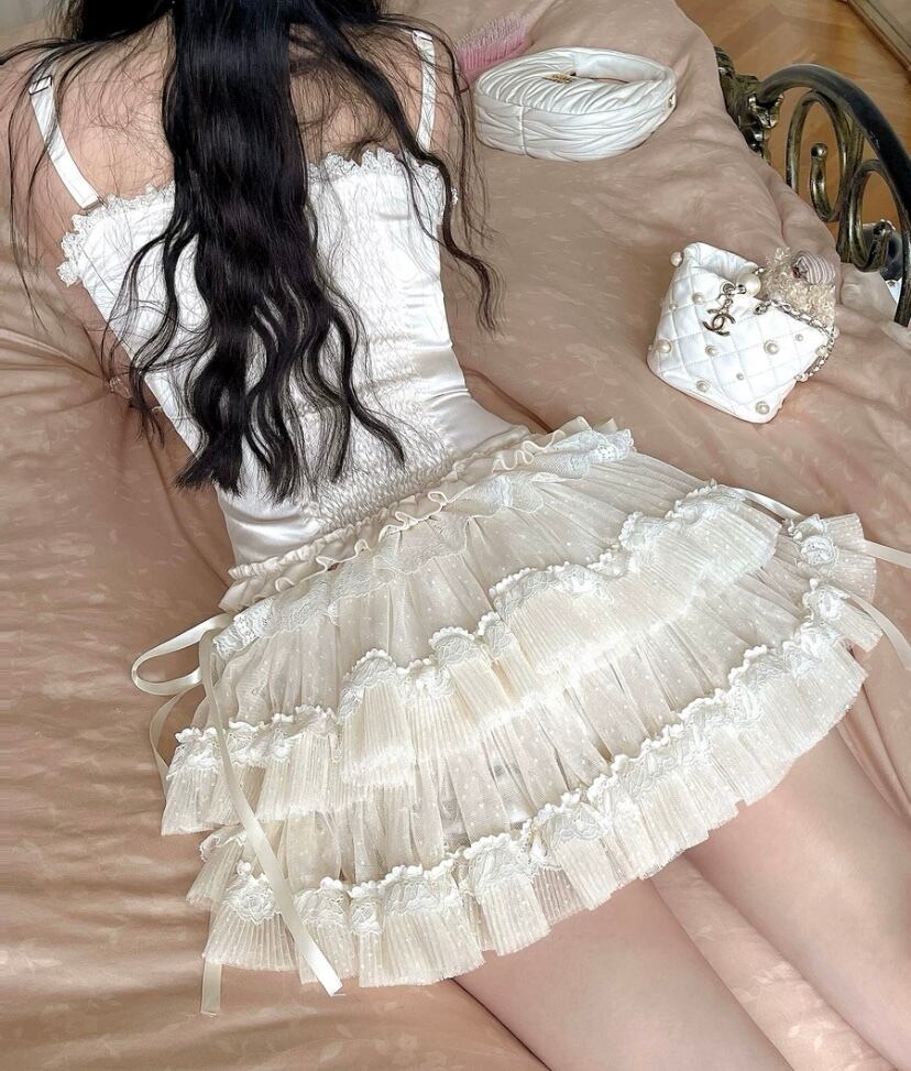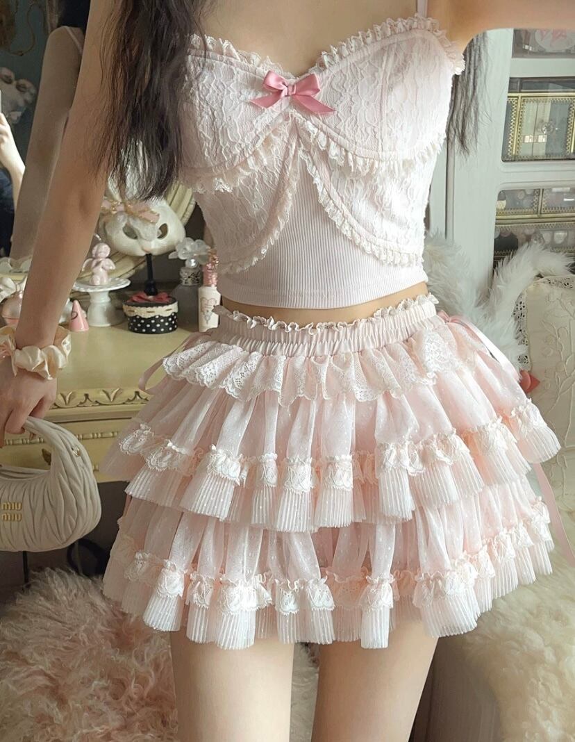 白 ピンク ミニ リボン スカート ガーリー 姫