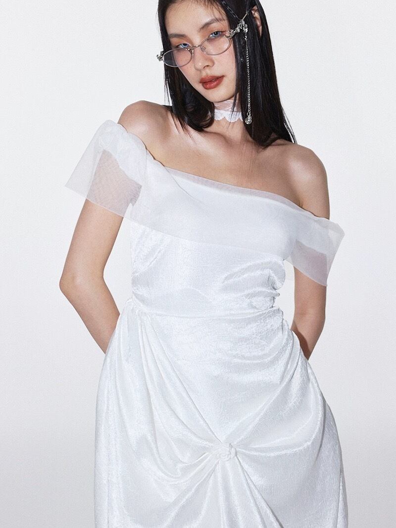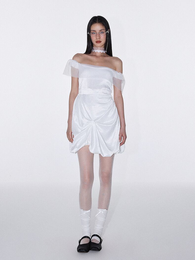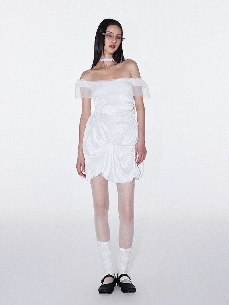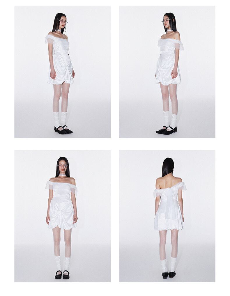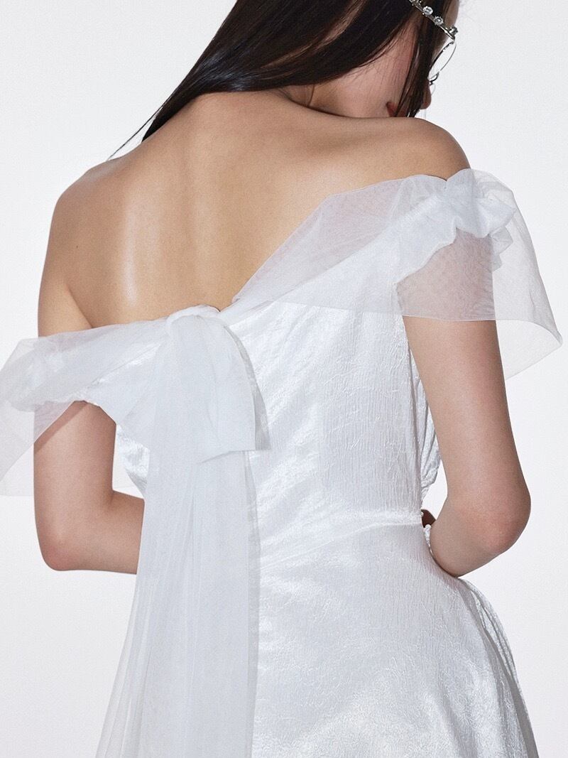 白 ホワイト リボン ワンピース シンプル 爽やか